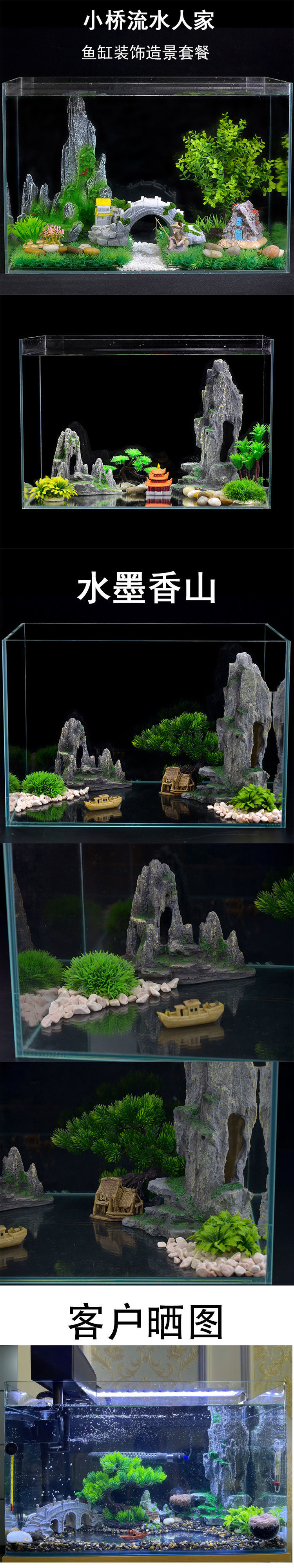 수조 조경 장식, 모조 수생 식물, 가짜 암석 패키지, 수족관 장식품, 데스크탑 금붕어 탱크, 돌, 낚시꾼의 다리, 신규스토어 가기