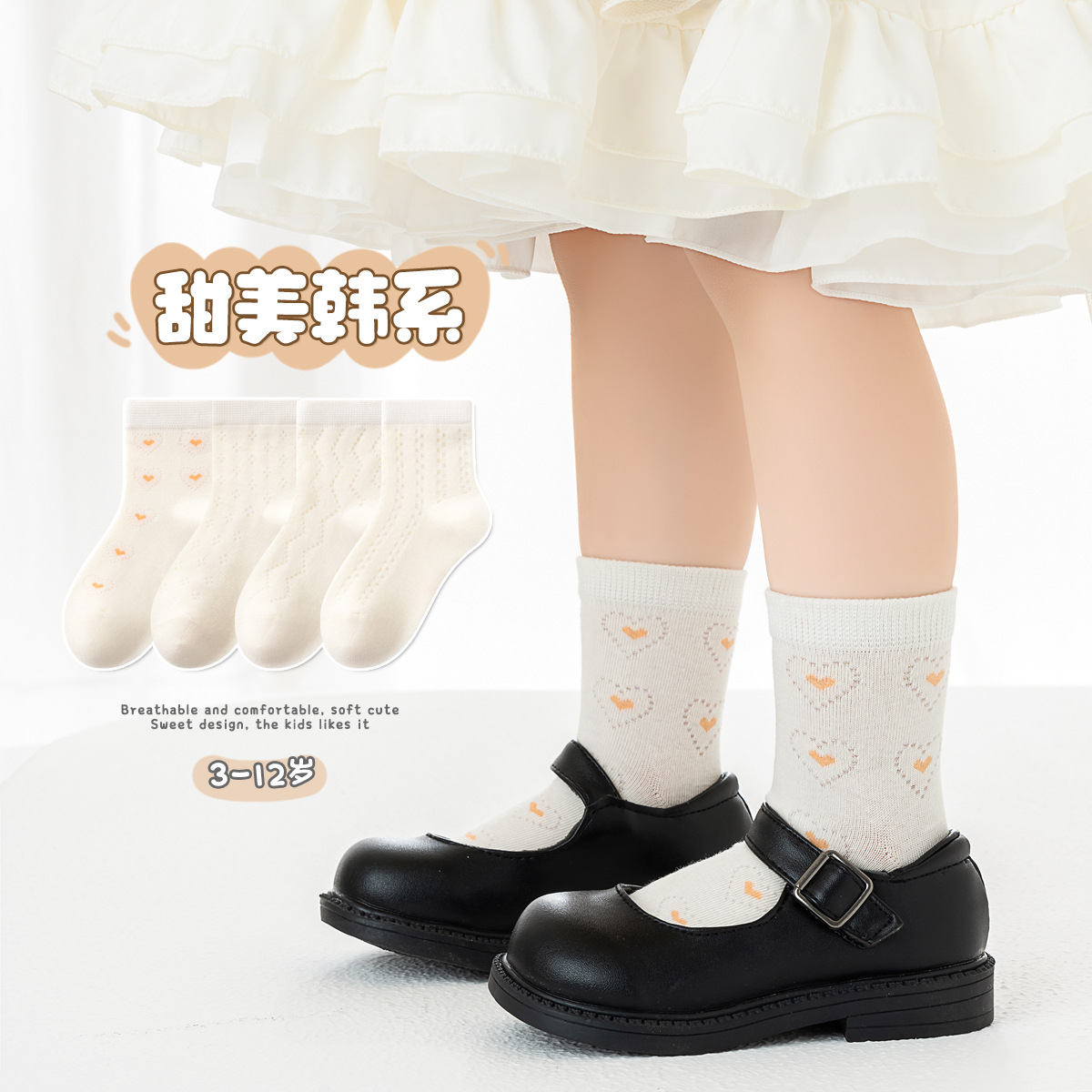 여자 양말 여름 얇은 로리타 뼈없는 공주 레이스 중형 및 대형 어린이 중간 튜브 봄, 가을면 양말 어린이 메쉬
