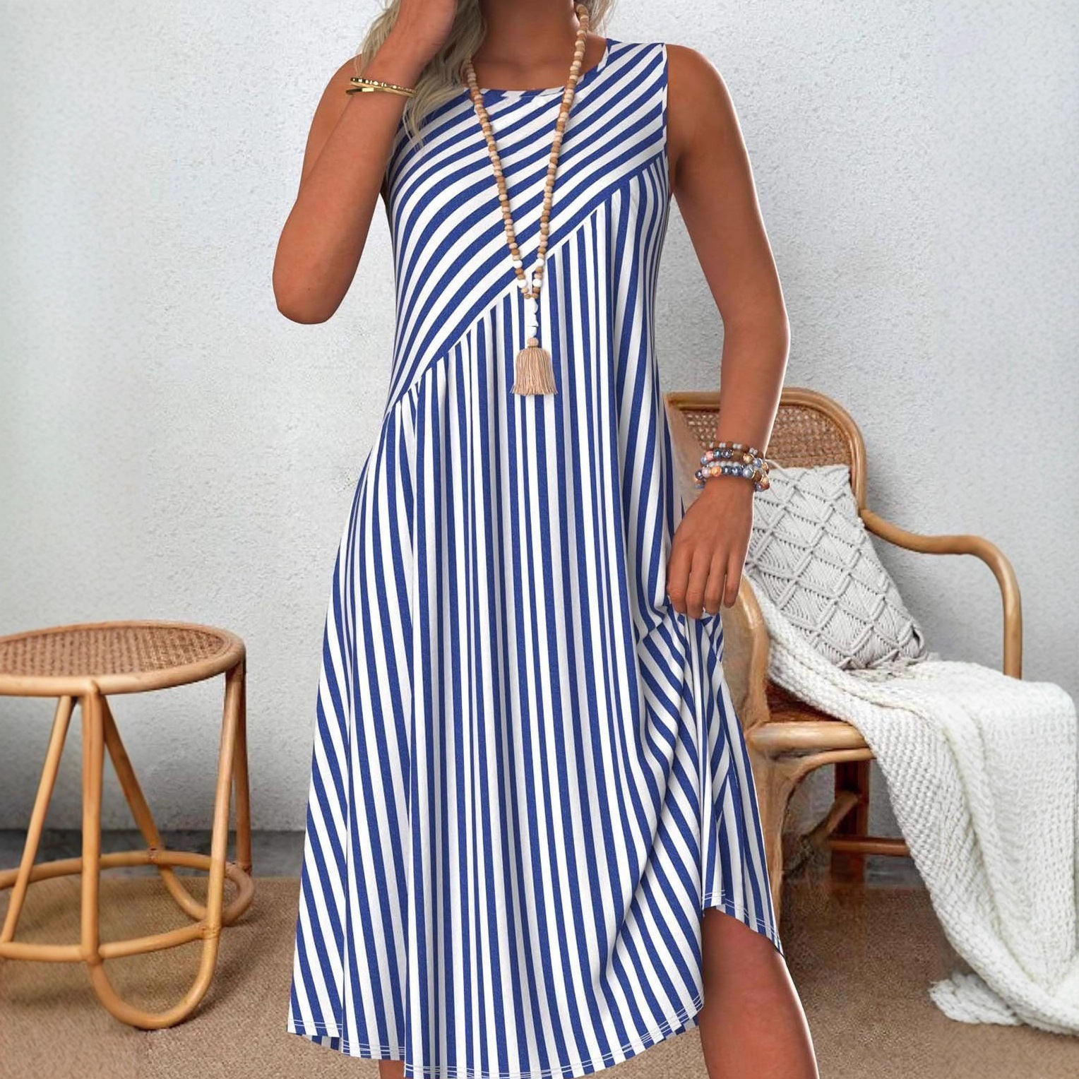 Amazon AliExpress 독립 스테이션 2025 여름 국경 새 줄무늬 레저 원피스 신제품
