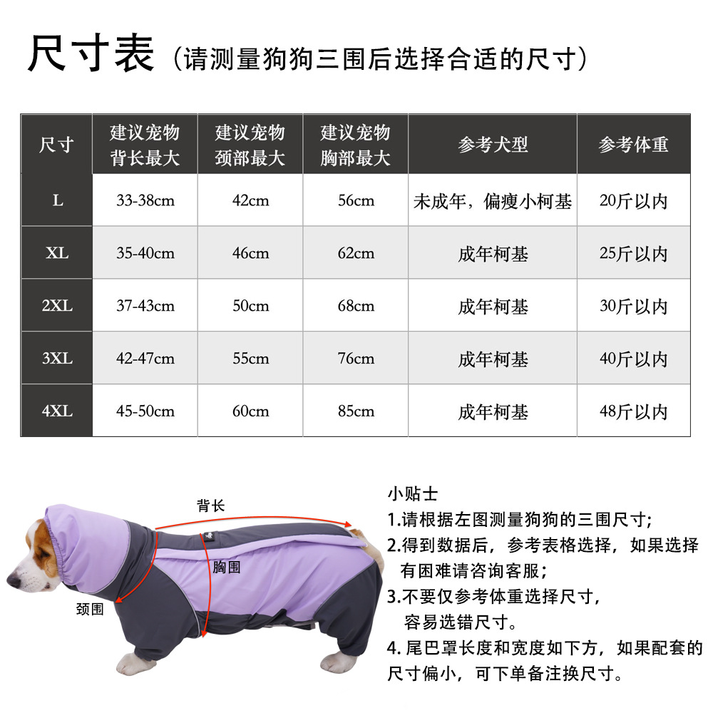 애완 동물 새로운 배꼽 덮인 개 비옷 코기 비옷 네 다리 방수 모든 항목을 포함하는 애완 동물 비옷 중형 개 색상 일치 착용하기 쉬운스토어 가기
