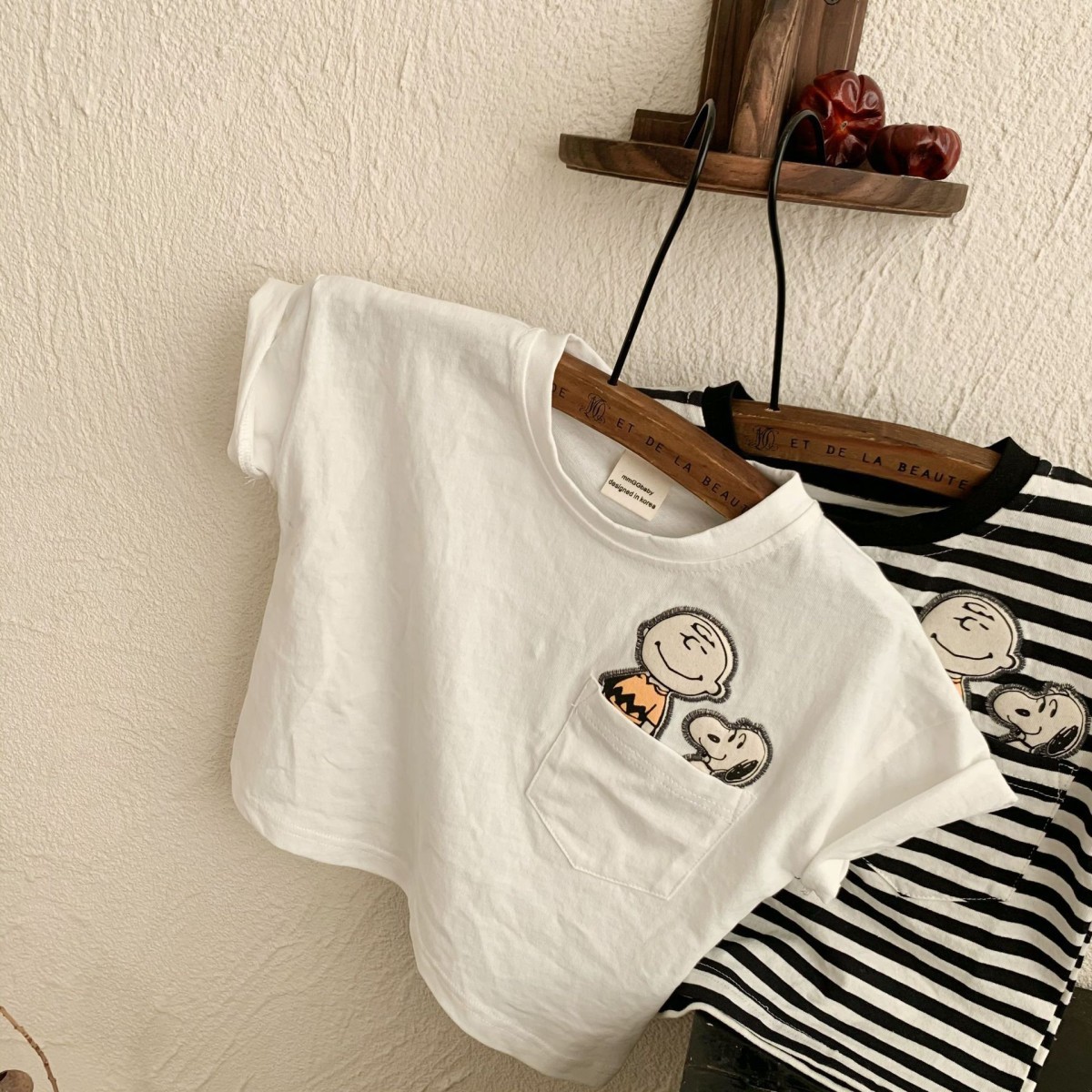 여름 새 면 반팔 어린이 줄무늬 만화 인쇄 중소 소년 소녀 아기 티셔츠 최고 트렌디 T 베이스 셔츠