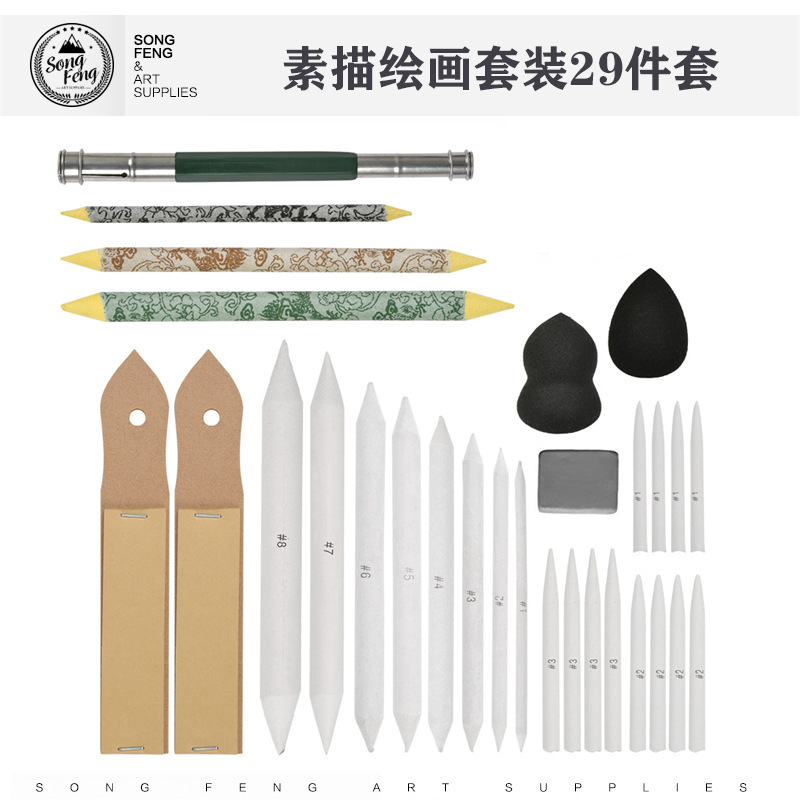 크로스보더 스케치 및 페인팅 29종 세트, 종이 지우개, 스펀지 지우개, 샌드보드, 플라스틱 지우개, 스머지 페인팅 도구