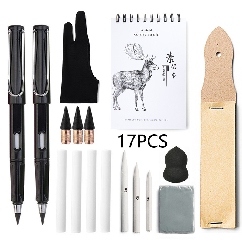 跨境A5素描本绘画工具17件套装永恒铅笔二指手套可塑橡皮砂纸板