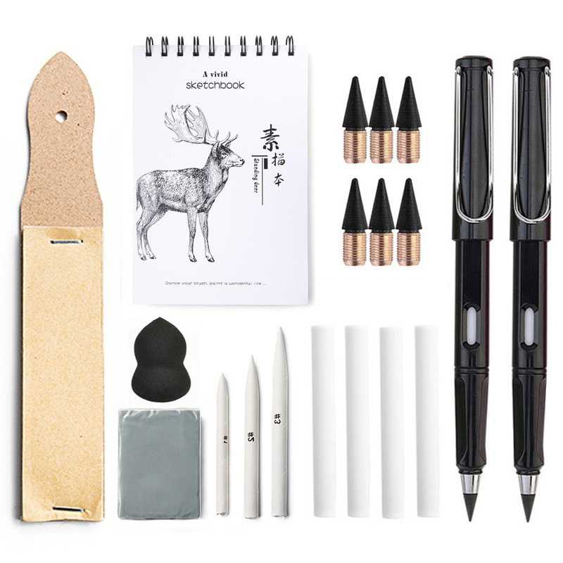 跨境素描绘画工具19件套装 A5绘画本 可塑橡皮砂纸板 永恒笔