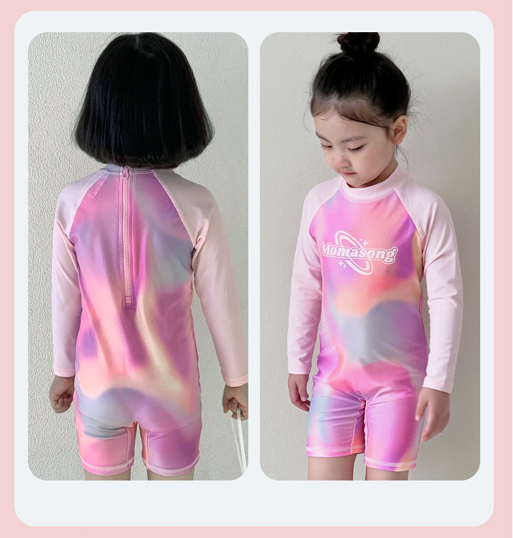 어린이 수영복 새로운 스타일 소녀 긴팔 수영복 소년 원피스 아기 태양 보호 해변 서핑 슈트 아기 수영복