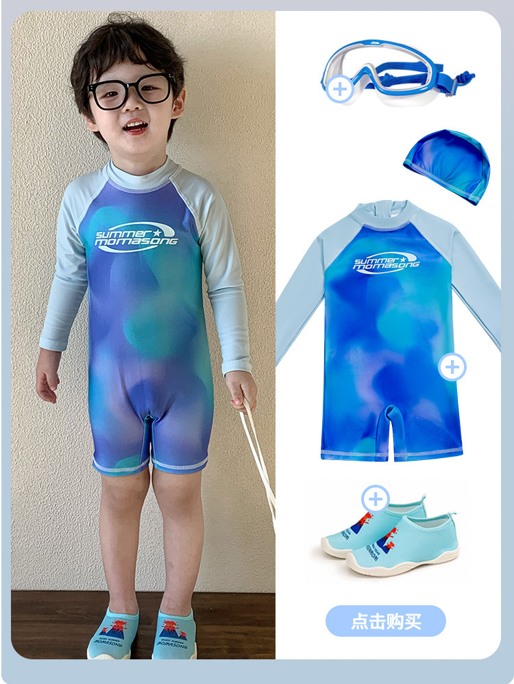 어린이 수영복 새로운 스타일 소녀 긴팔 수영복 소년 원피스 아기 태양 보호 해변 서핑 슈트 아기 수영복스토어 가기