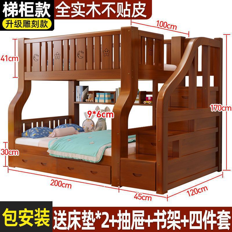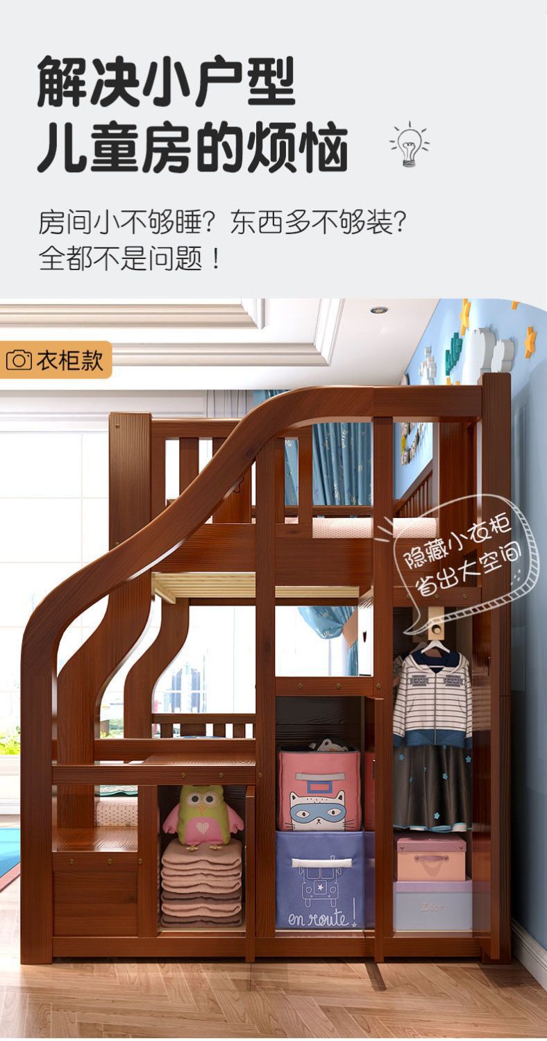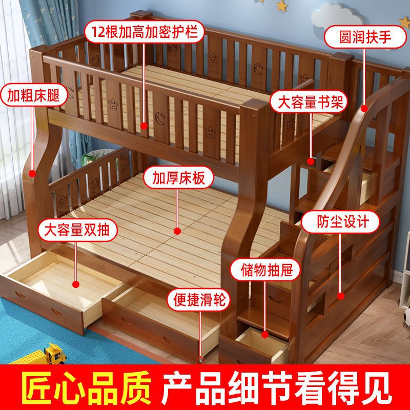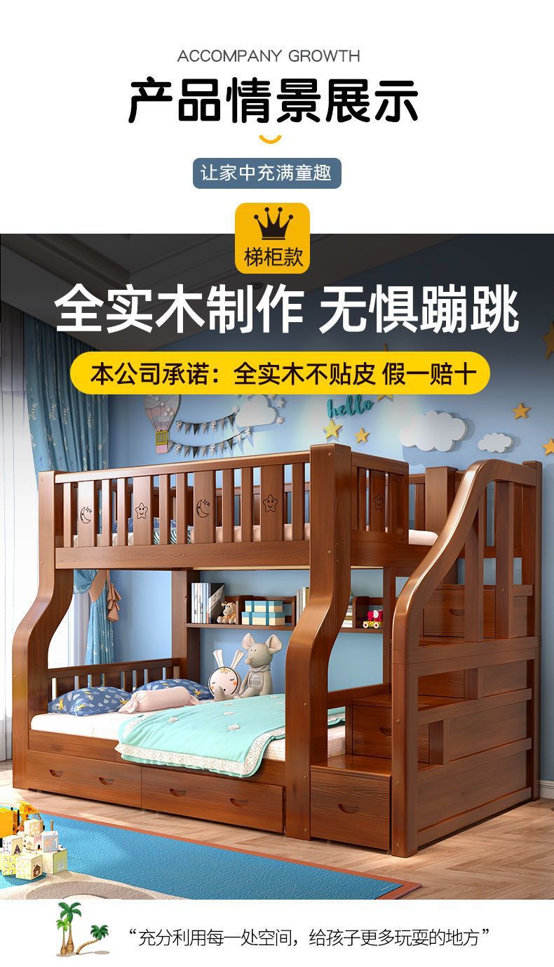 단단한 나무 어머니-아이 침대 더블 레이어 침대 두꺼운 높은 낮은 침대 다기능 가구 성인 어머니-아이 침대 어린이 침대스토어 가기