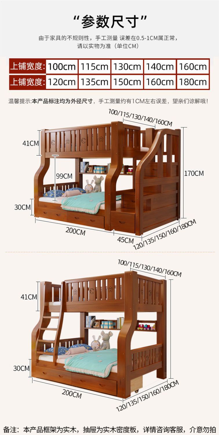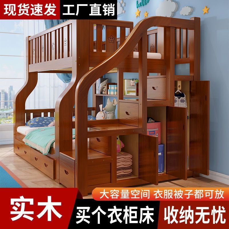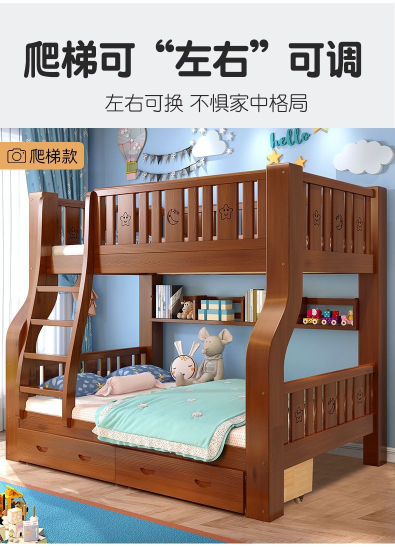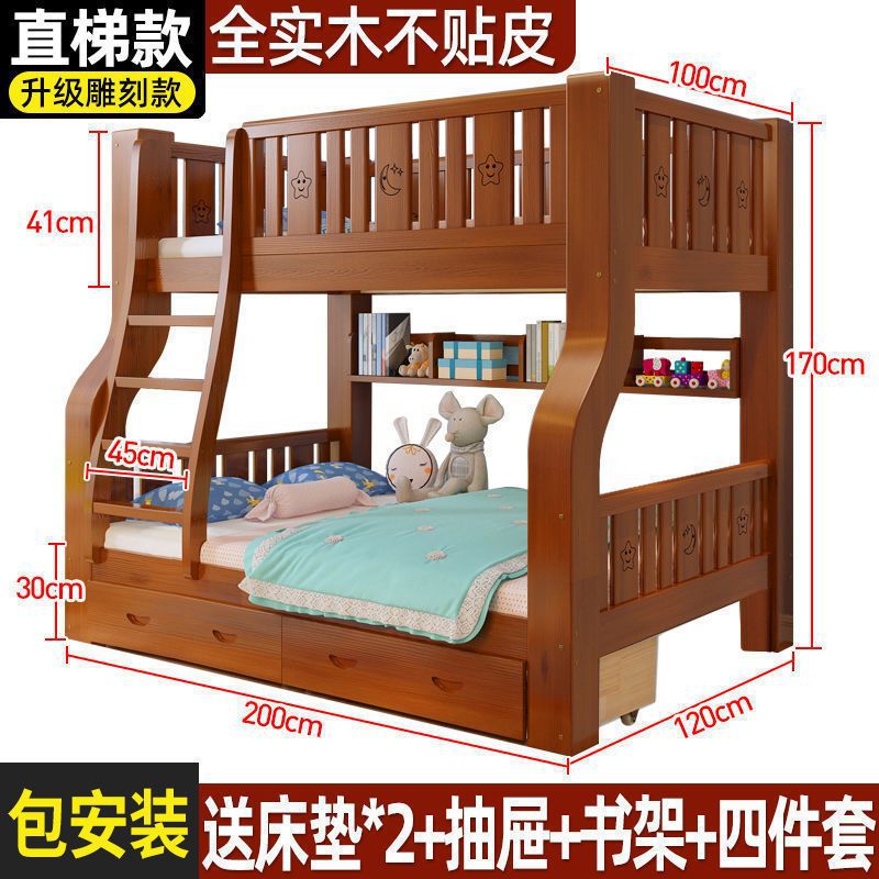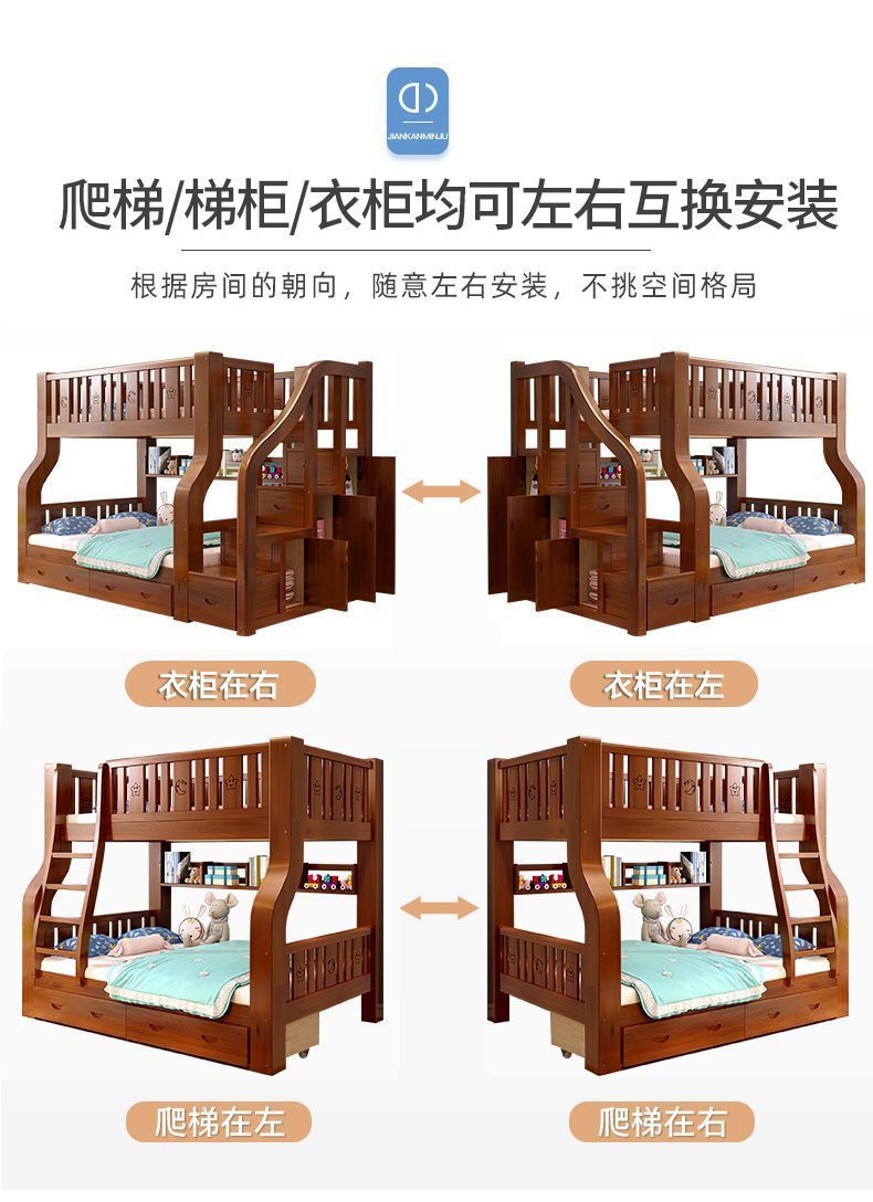 단단한 나무 어머니-아이 침대 더블 레이어 침대 두꺼운 높은 낮은 침대 다기능 가구 성인 어머니-아이 침대 어린이 침대스토어 가기