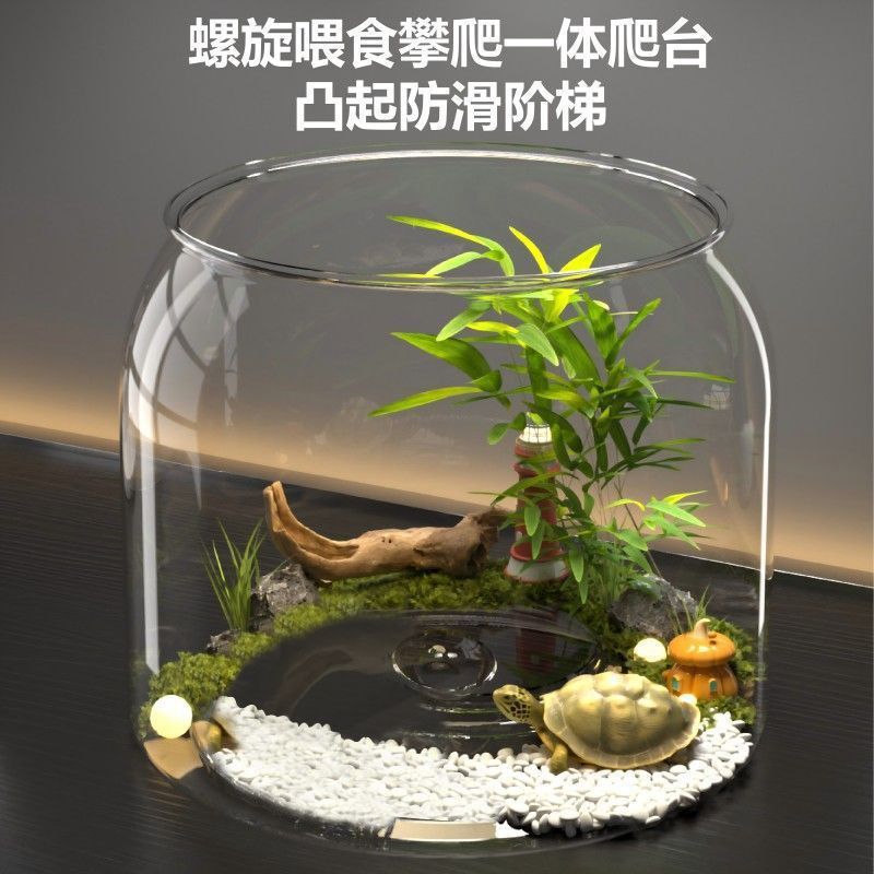 거북이 수유 탱크 가정용 어항 거실 거북이 생태 경관 건조 등반 테이블 탑 거북이 탱크를 키우기위한 작은 특수 상자스토어 가기