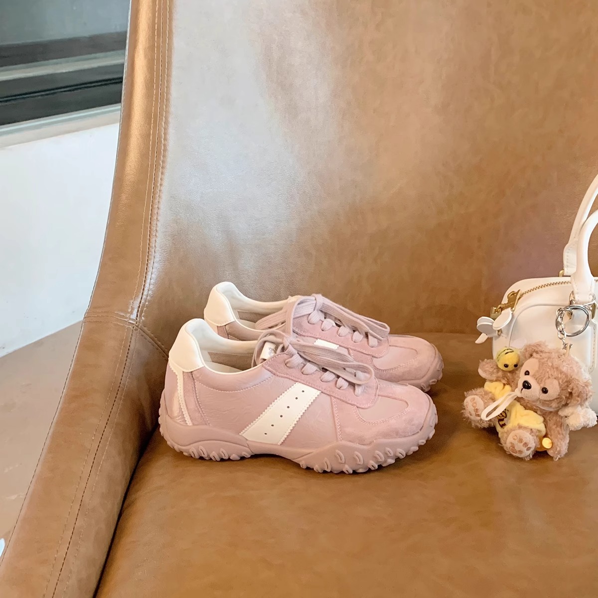 포도의 소 가죽 버전 높이 7cm ~ 캐주얼 운동화 여성 보이지 않는 다리 스티칭 둥근 머리 레이스 업 독일 훈련 신발스토어 가기