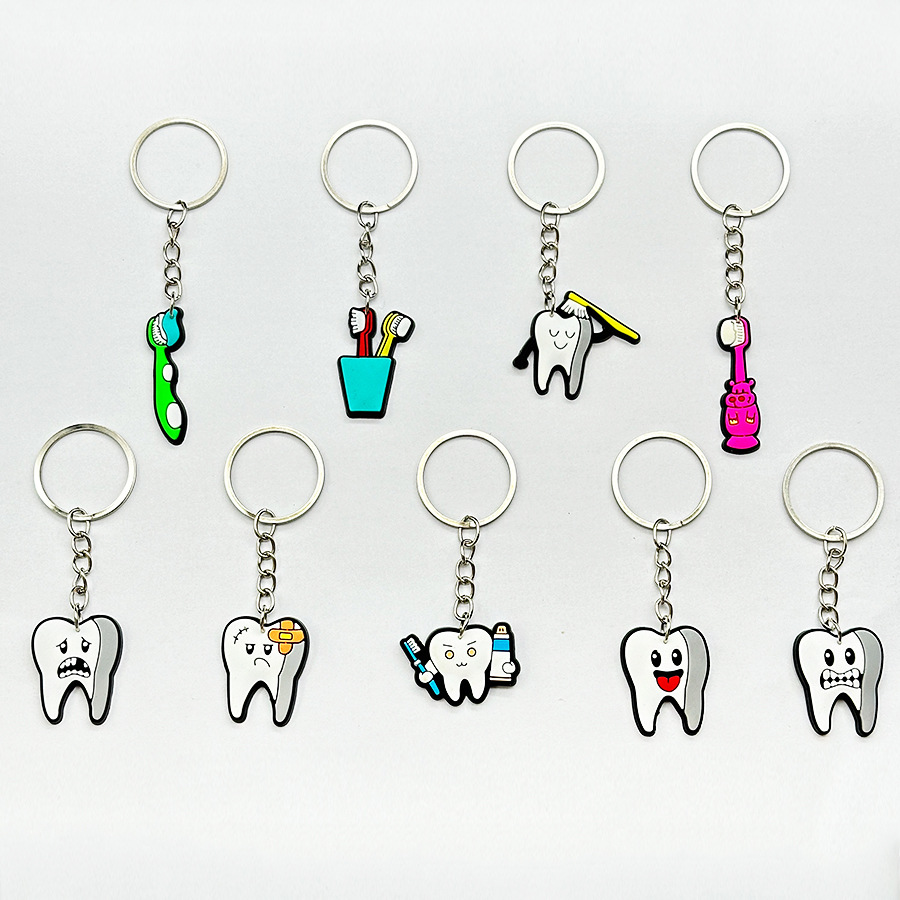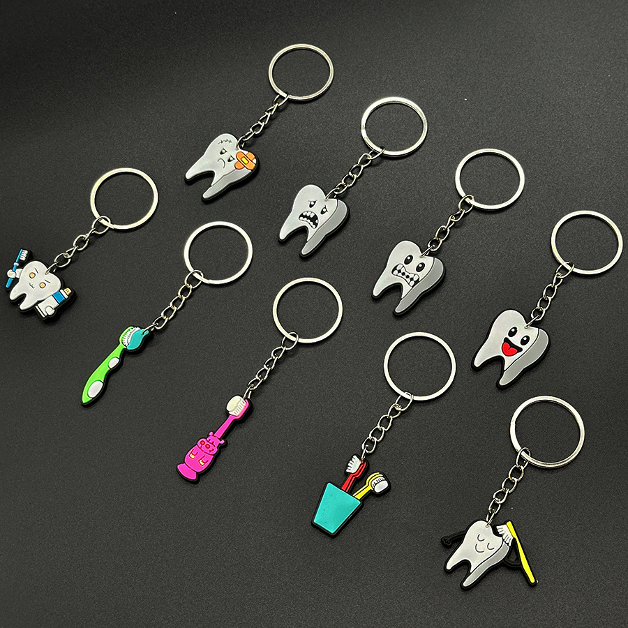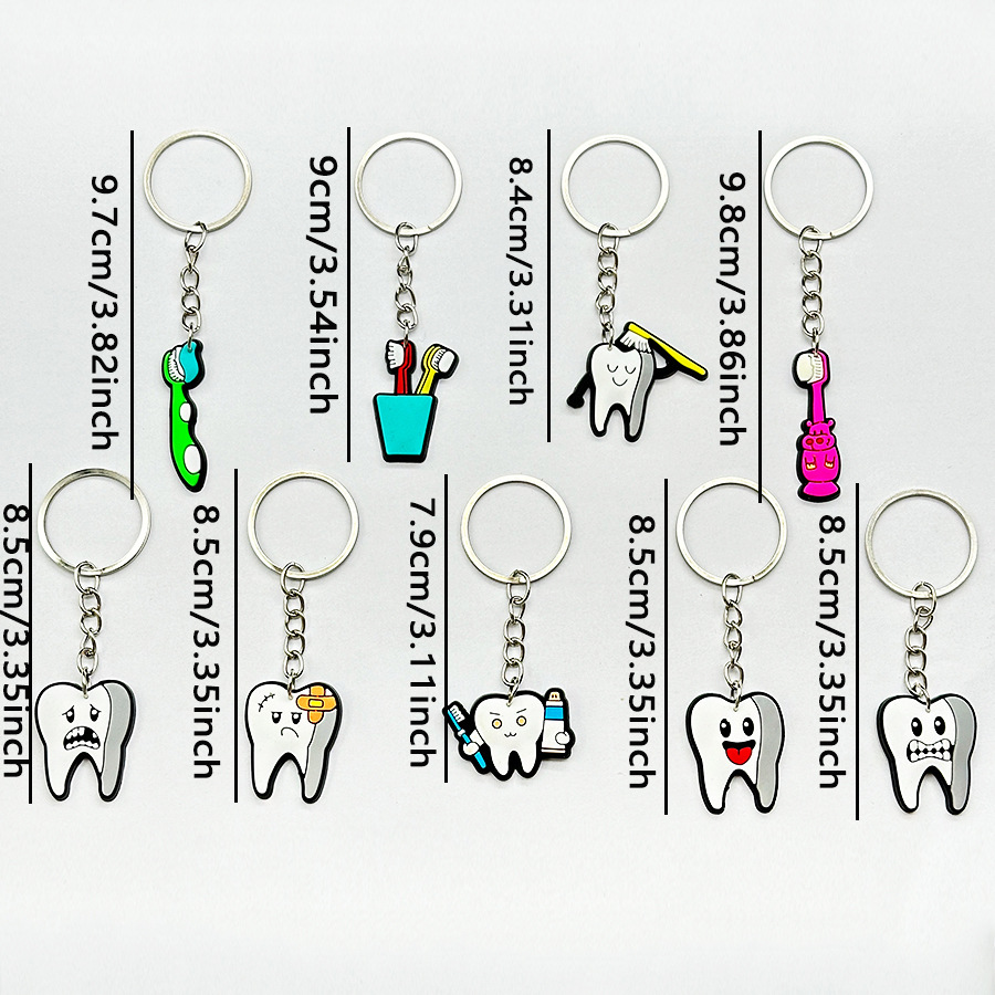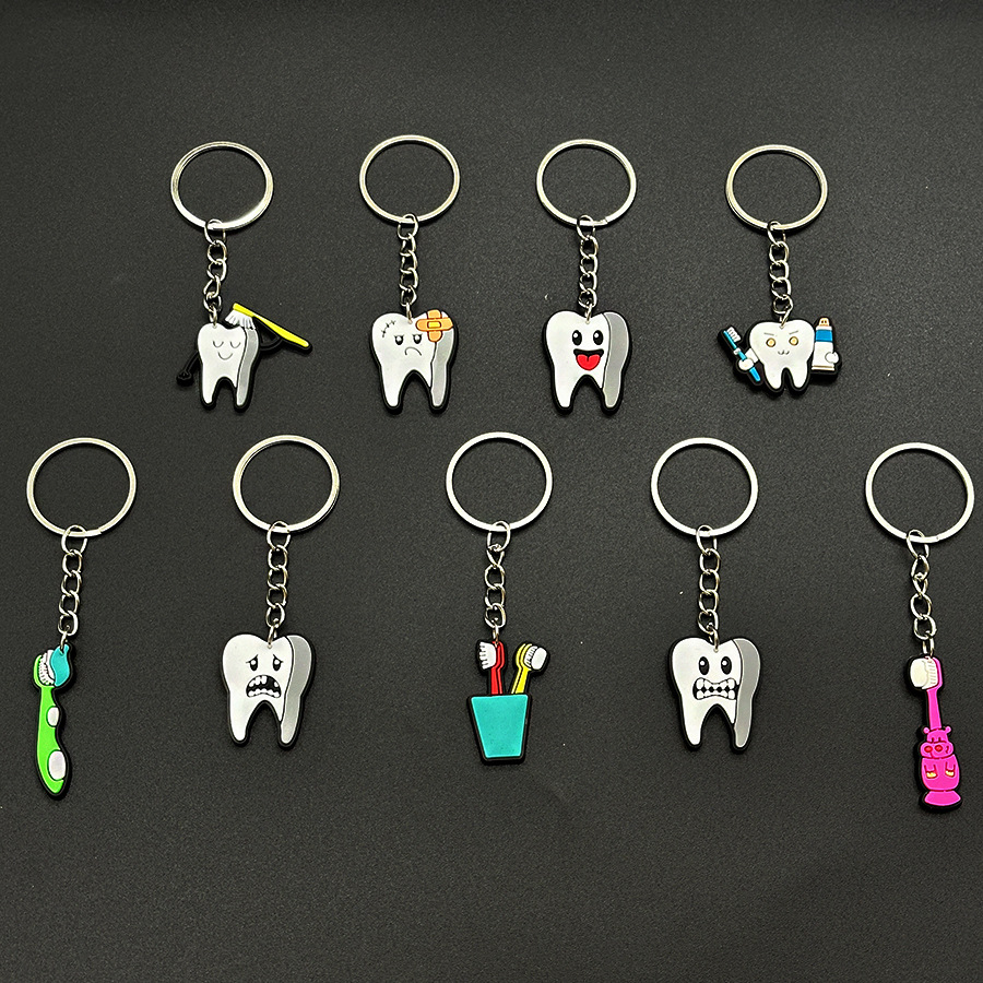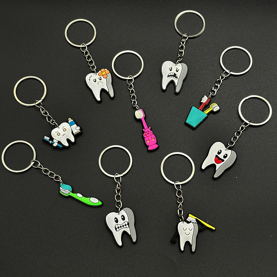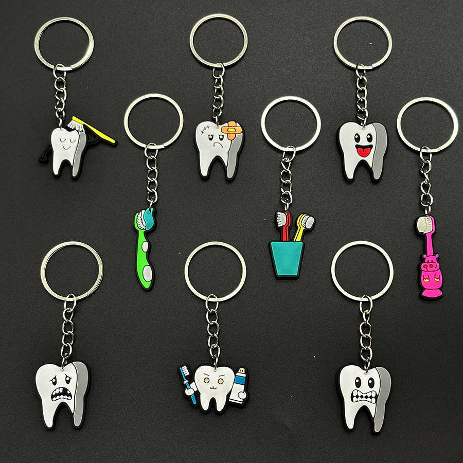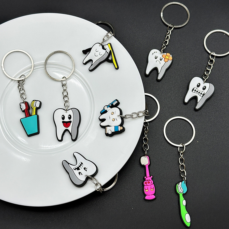 치과 시리즈 만화 치아 장식 PVC 부드러운 고무 키 체인 펜던트 패션 가방 펜던트 시뮬레이션 크리 에이 티브 선물스토어 가기