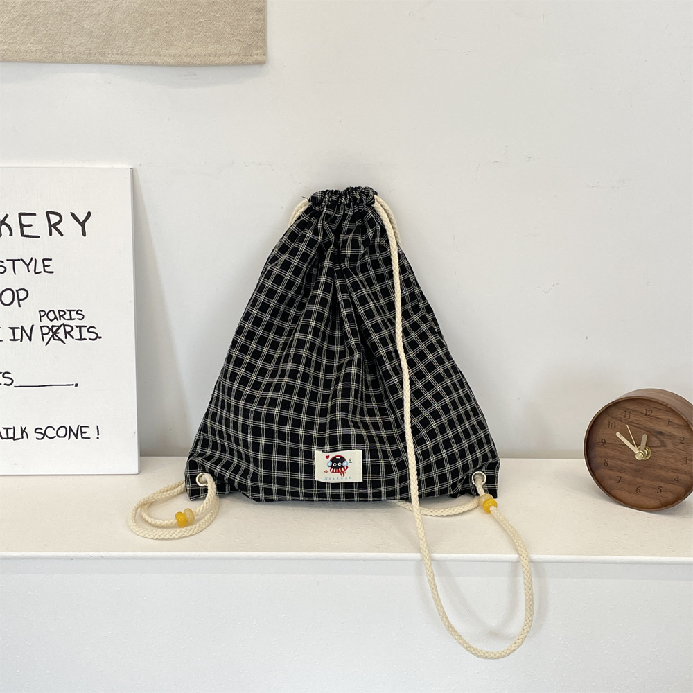 53232 새로운 패션 드로우 스트링 백팩 구슬 여름 체크 캔버스 배낭 간단한 통근