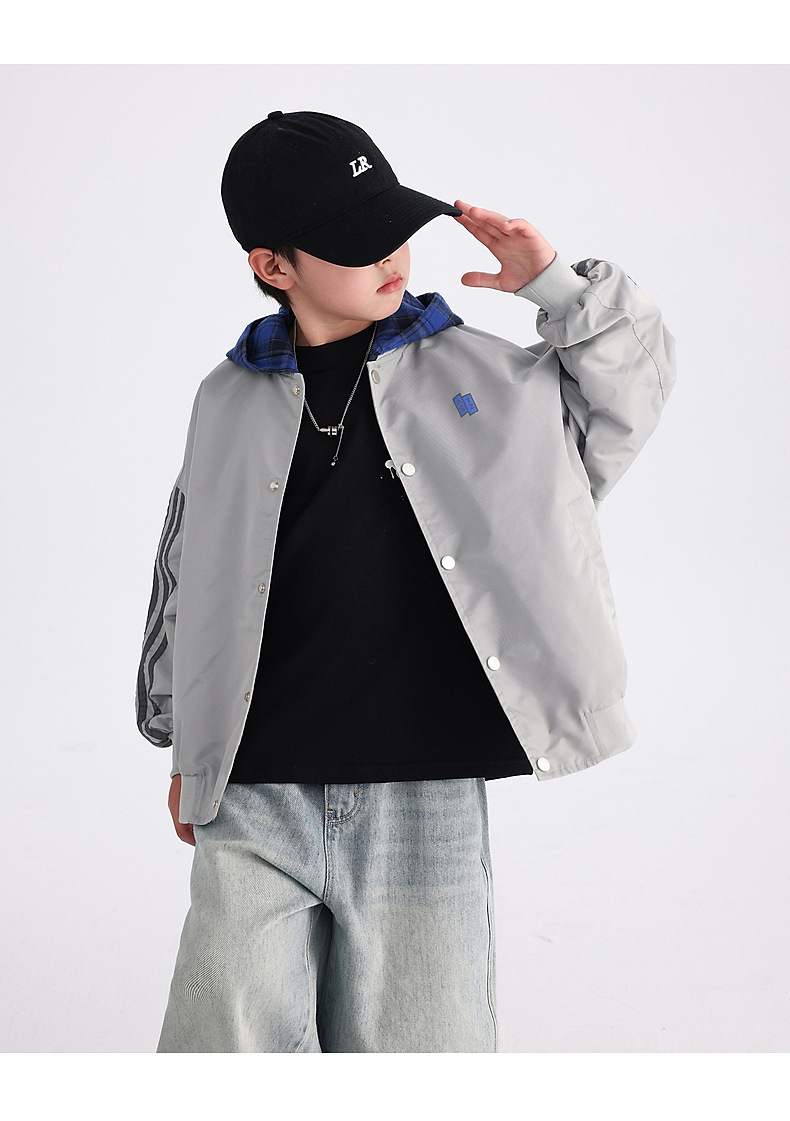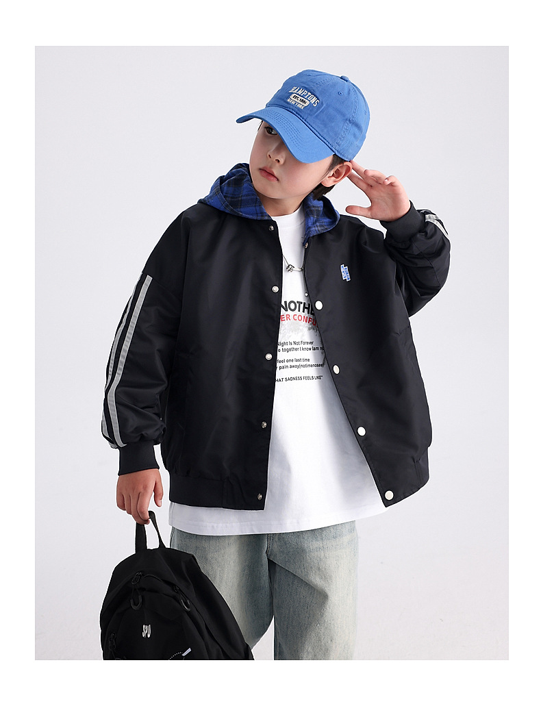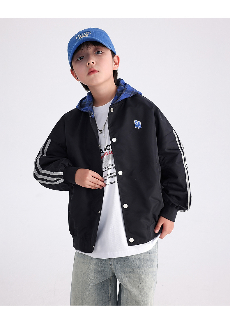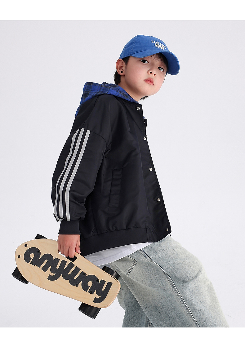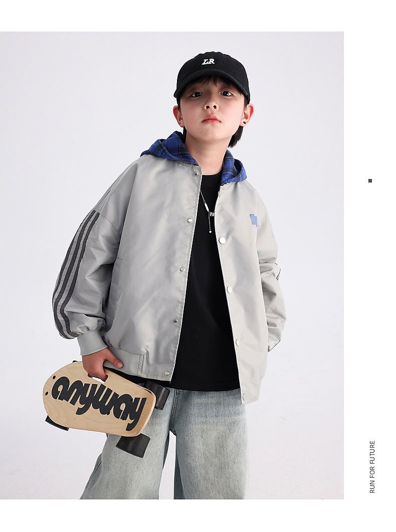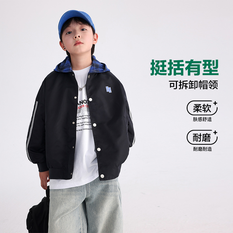 남아용 가을 배색 후드 야구 점퍼 2025 신상 아동 남아 가을 멋진 스포츠 재킷스토어 가기