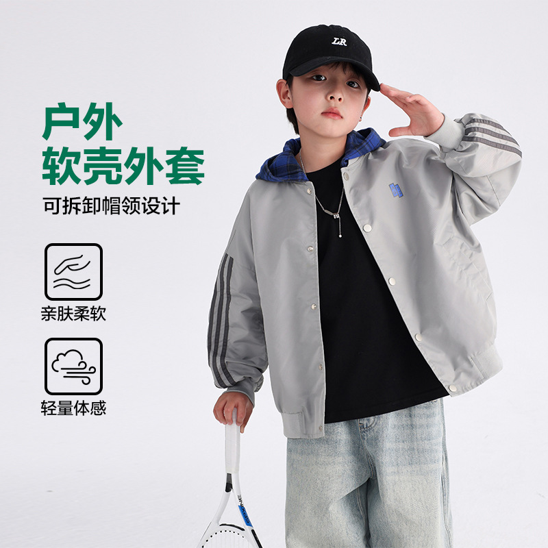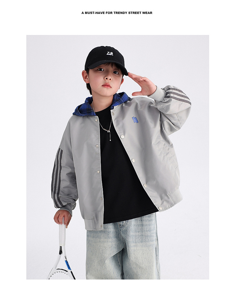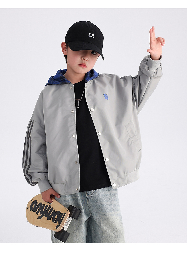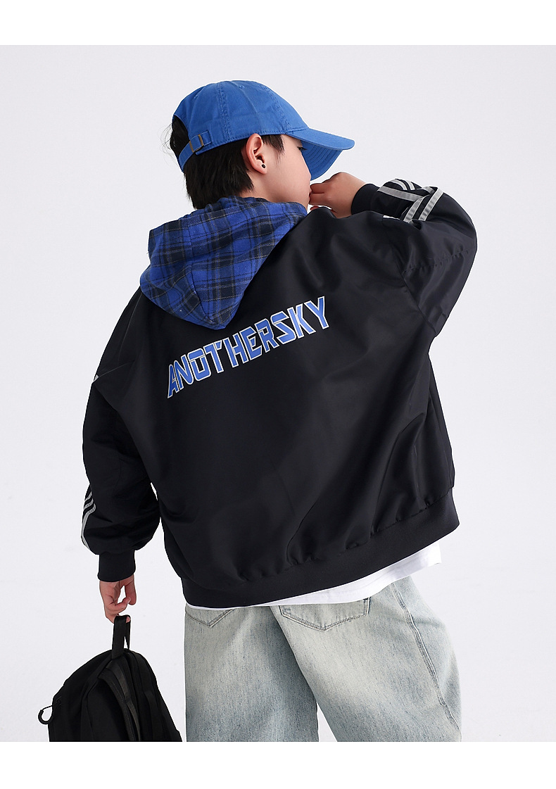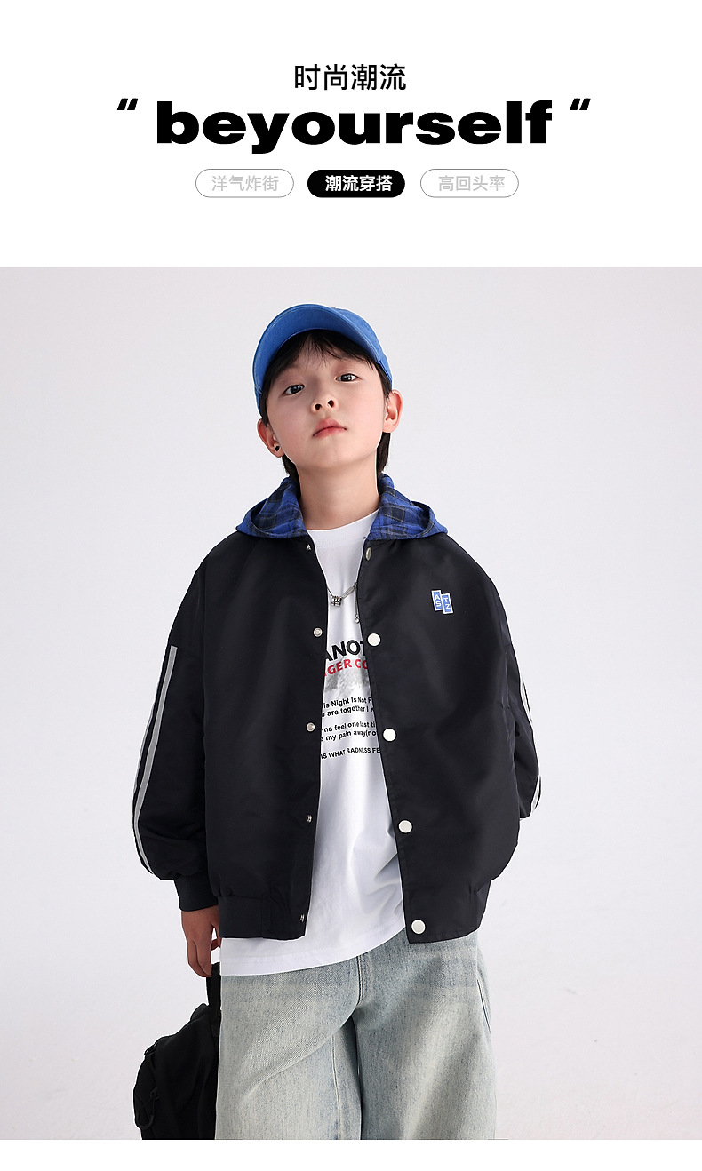 남아용 가을 배색 후드 야구 점퍼 2025 신상 아동 남아 가을 멋진 스포츠 재킷스토어 가기