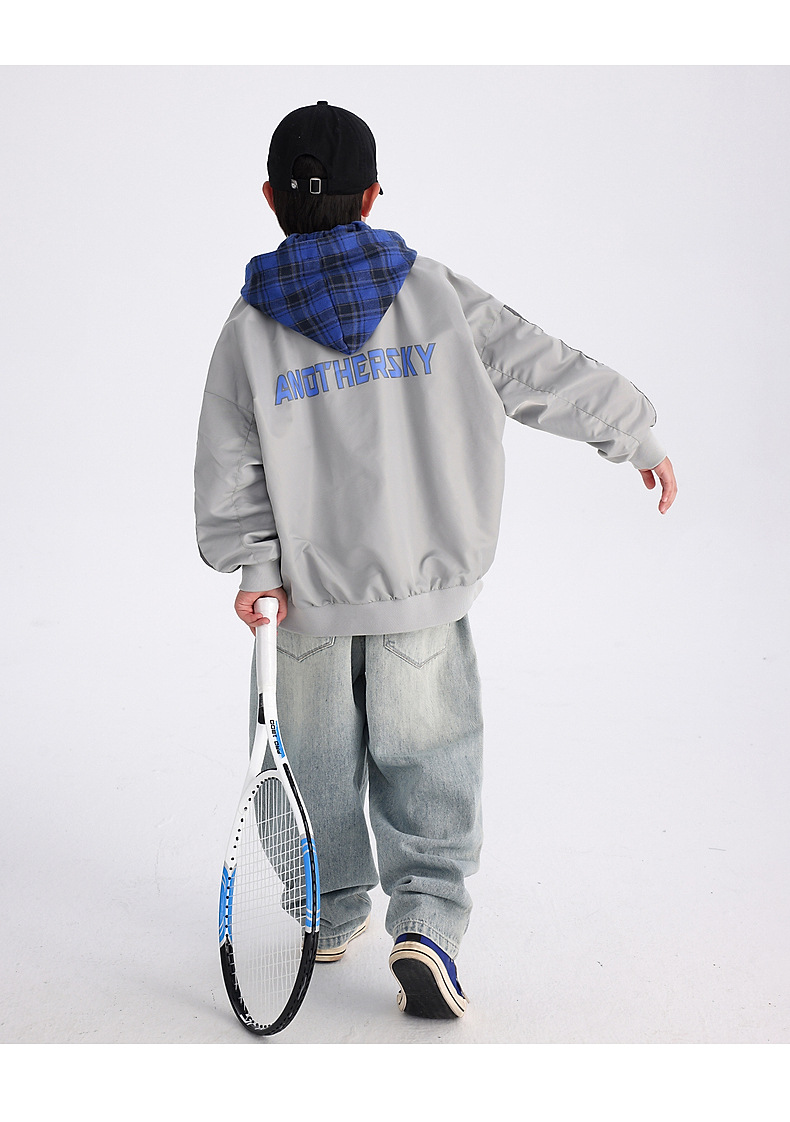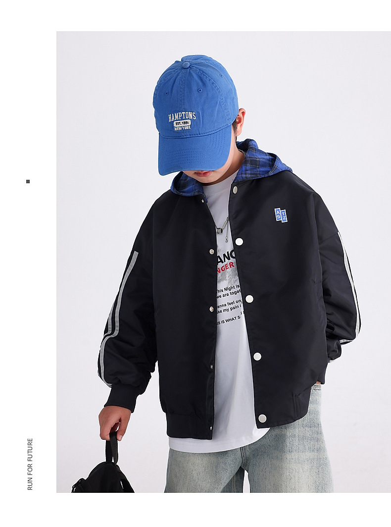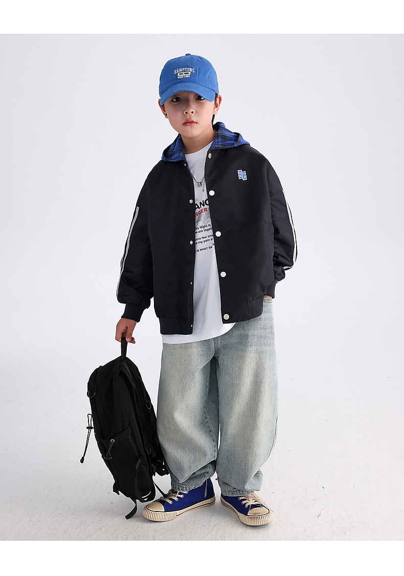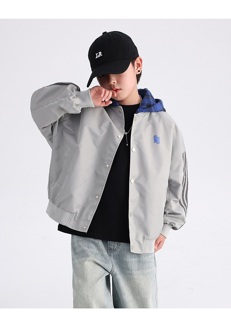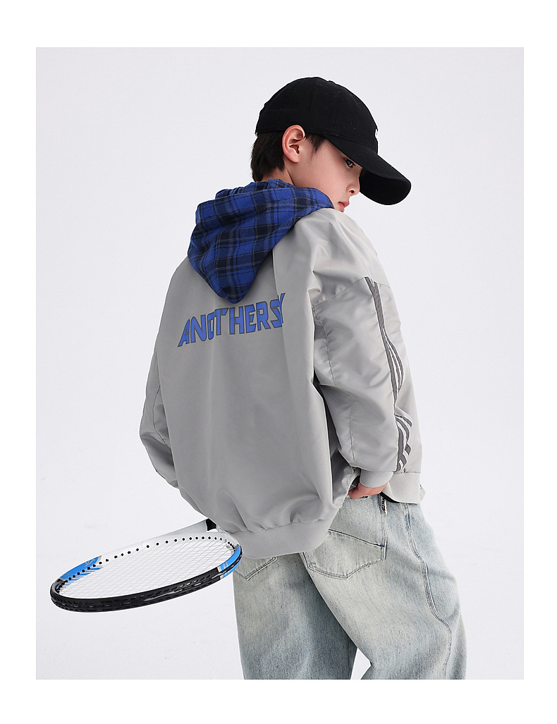 남아용 가을 배색 후드 야구 점퍼 2025 신상 아동 남아 가을 멋진 스포츠 재킷스토어 가기