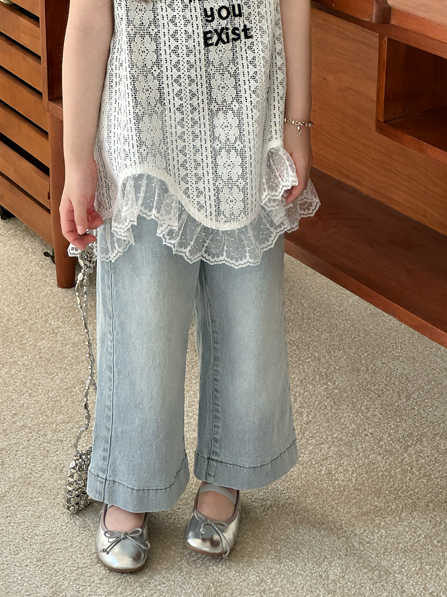유유 공주 소녀 여름 한국 스타일 단색 청바지 어린이 넓은 다리 바지 캐주얼 스트레이트 바지 발목 길이 바지