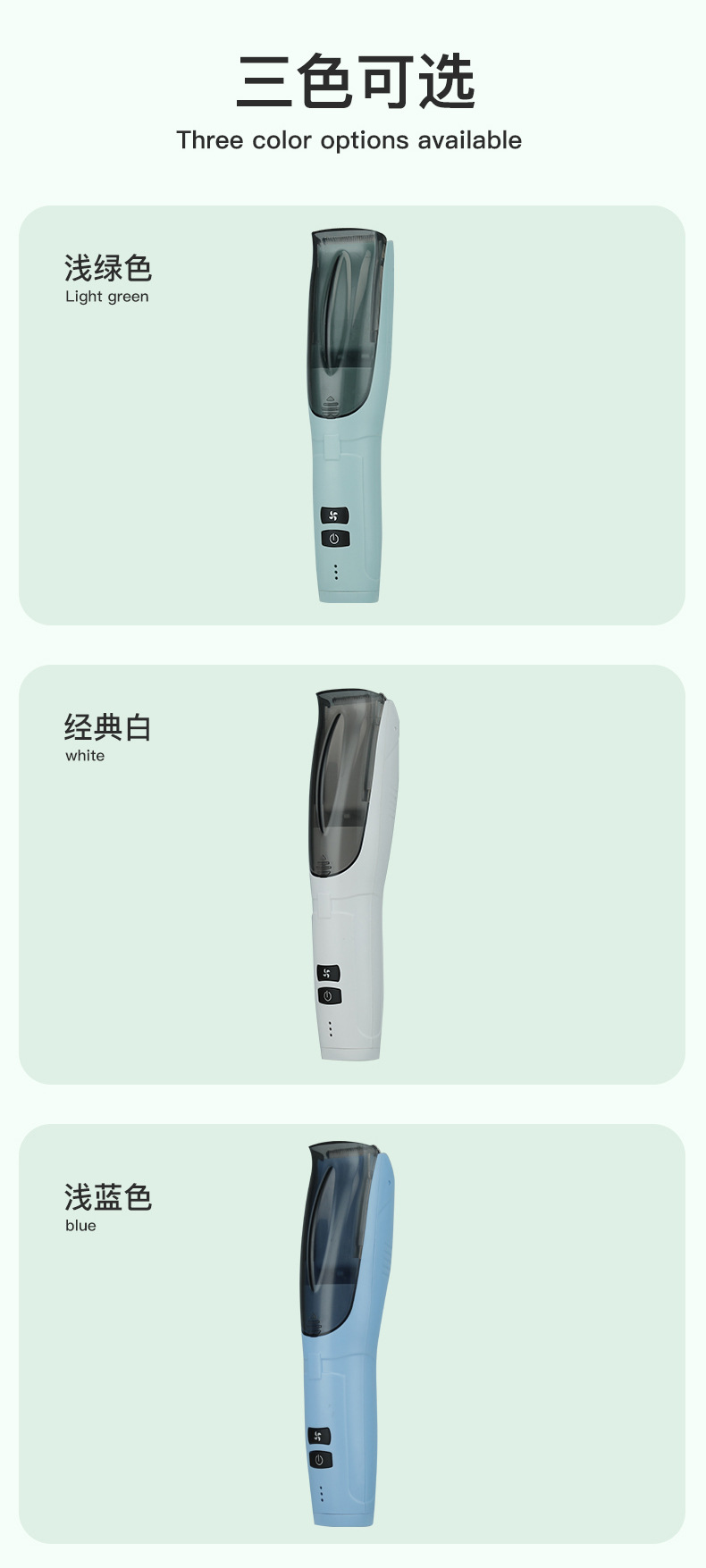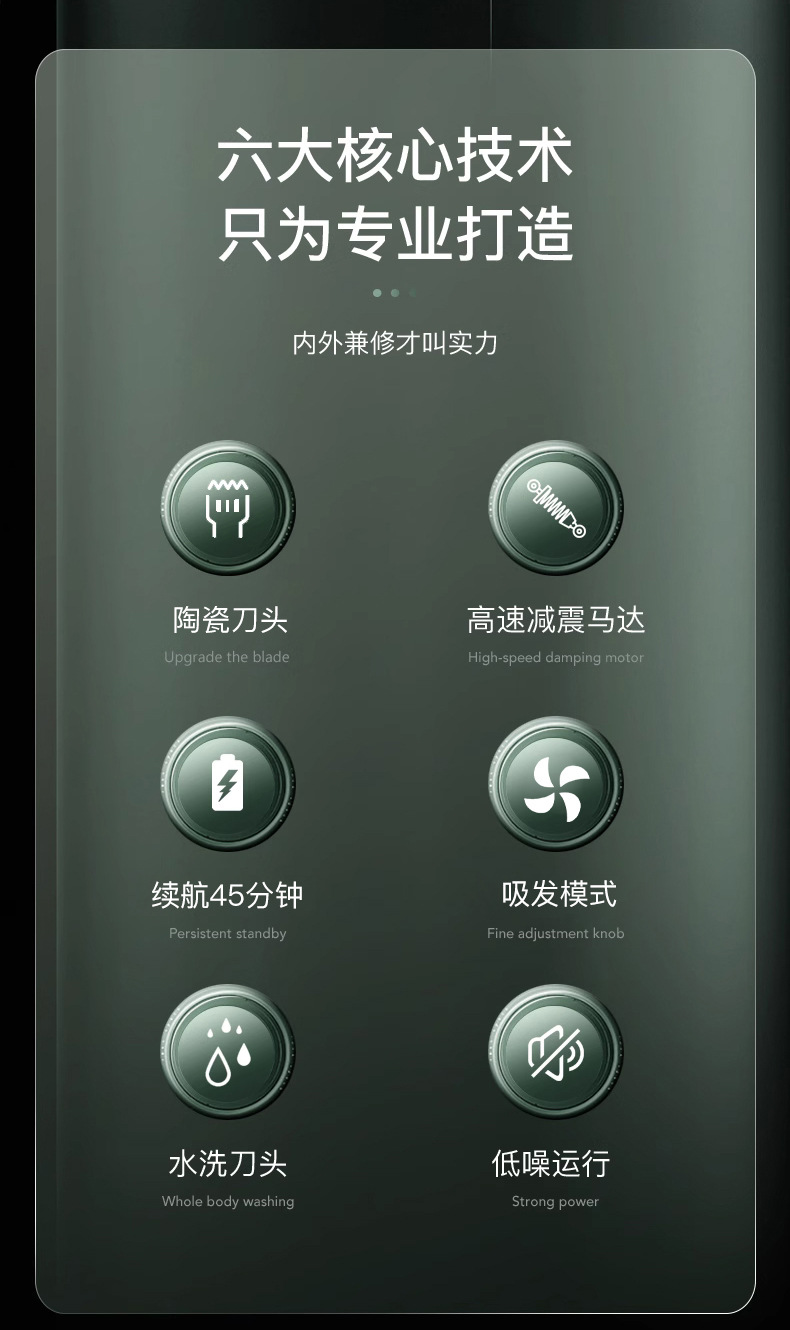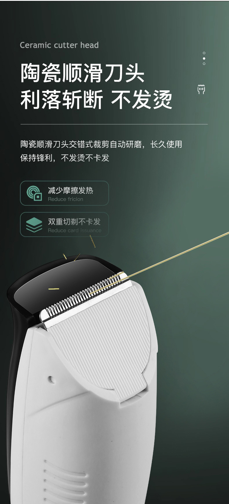 产品信息 吸剃一体:1.聚合物电池 2.吸力2档。3.配三种不同模型齿头。 4.附件说明书、USB充电线、清洁刷、润滑油、围布、清洁海绵 5.陶瓷刀头