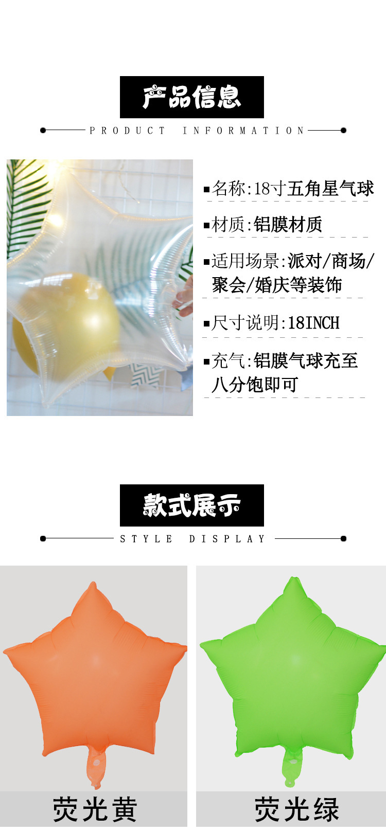18 인치 라이트 버전 5 점 별 알루미늄 필름 풍선 단색 스타 풍선 알루미늄 호일 생일 파티 장식 도매