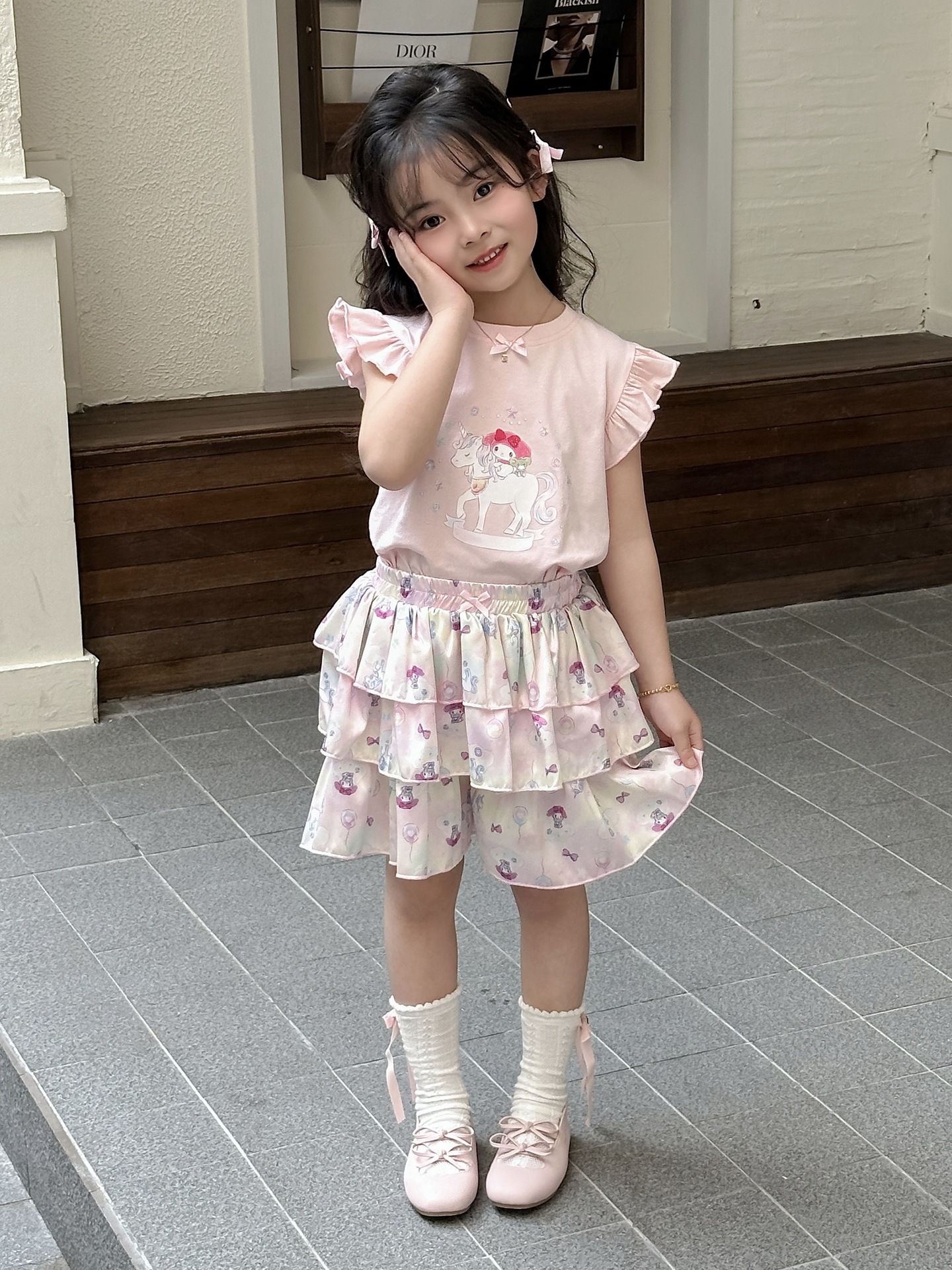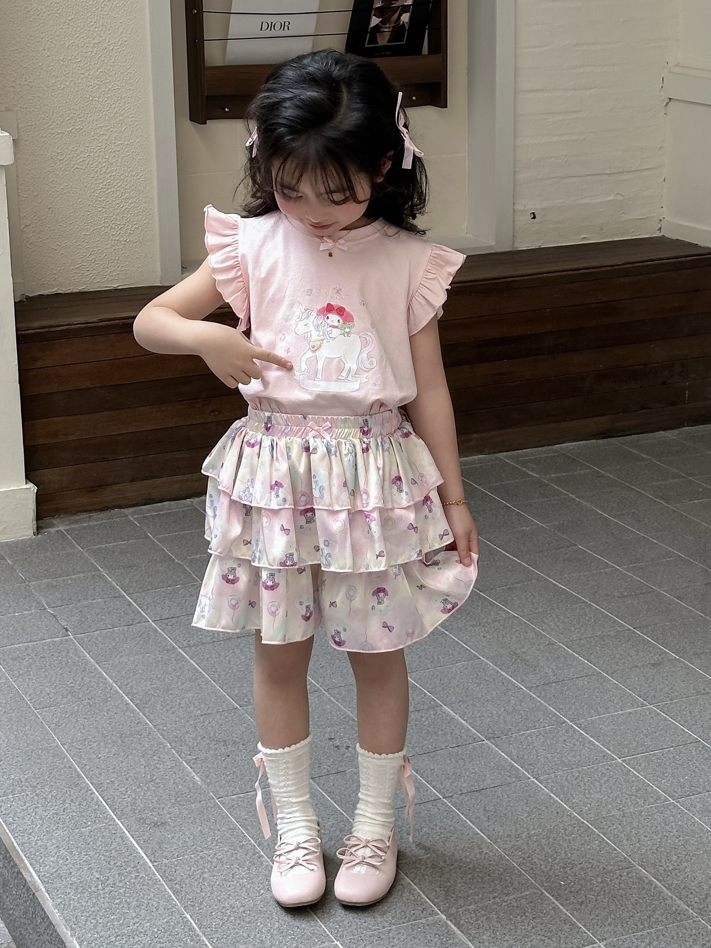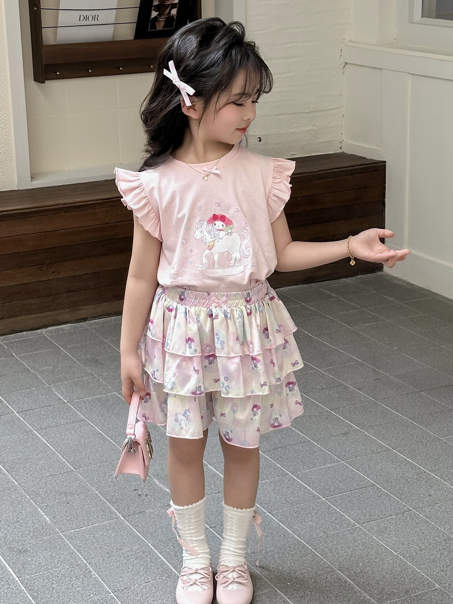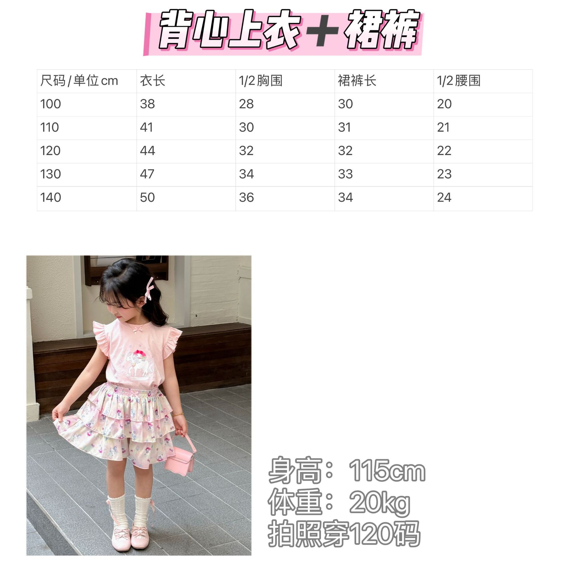 [드림유니콘] 25 개 신형 도착 컬로트 케이크 스커트 귀여운 코튼 라이크라 티셔츠 걸스 세트스토어 가기