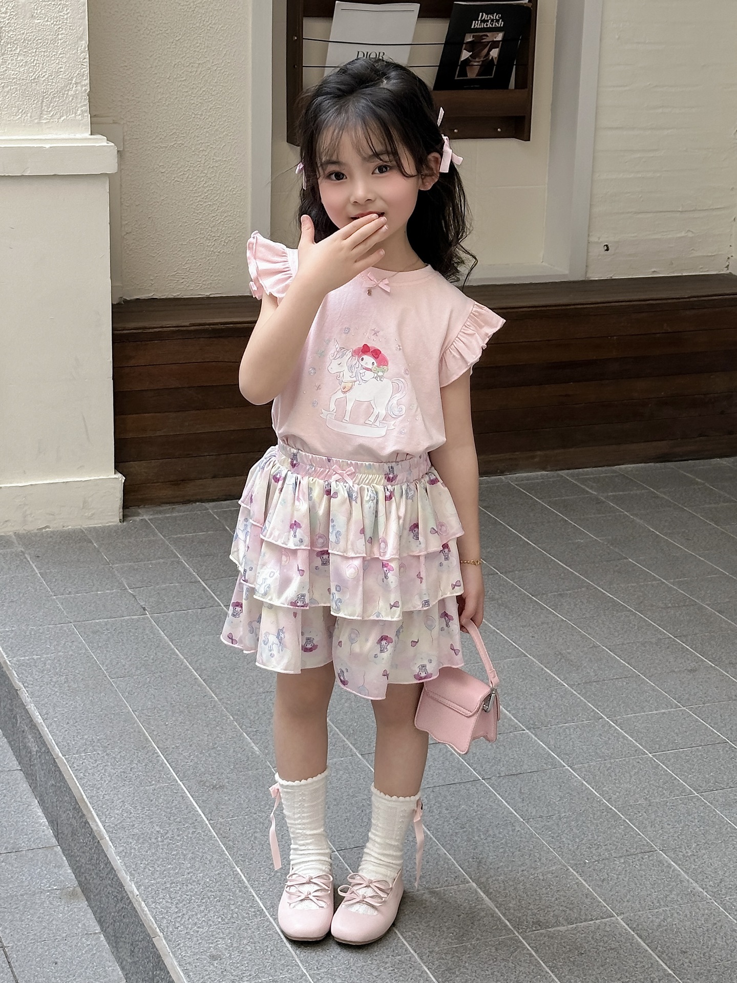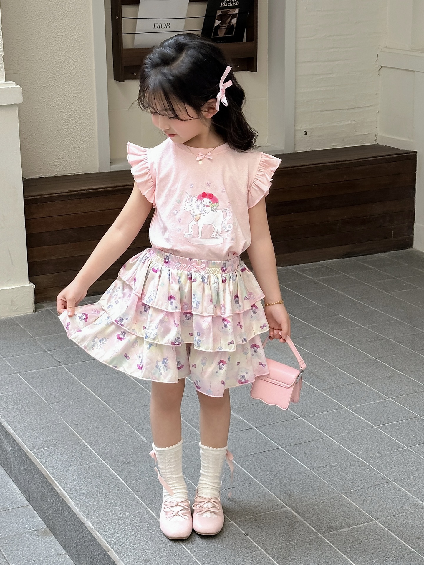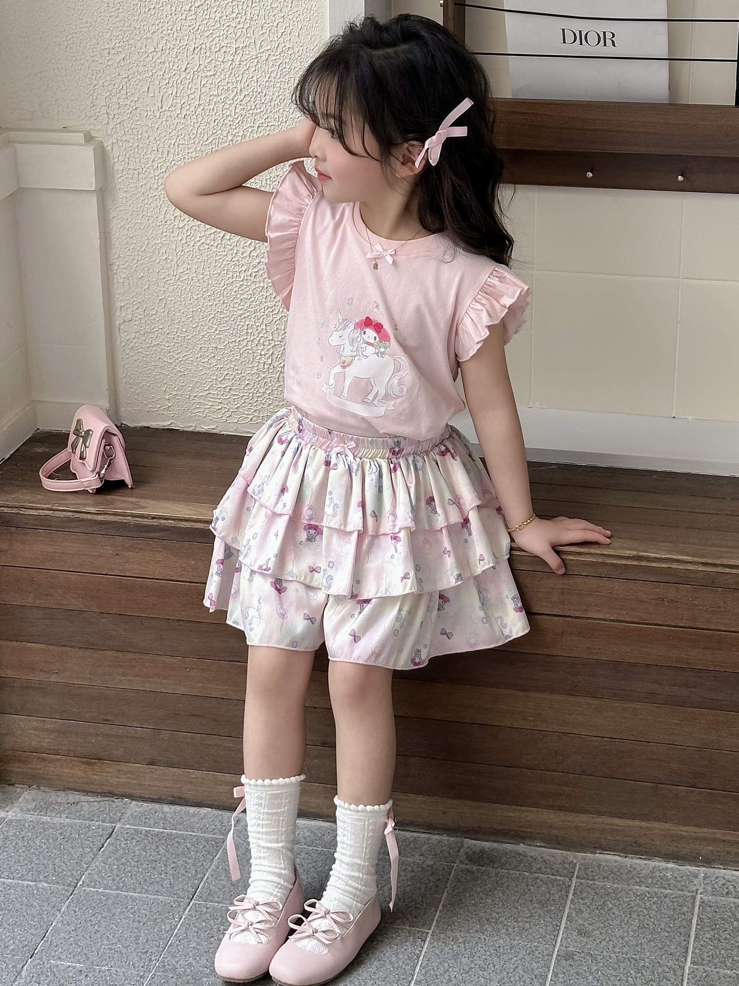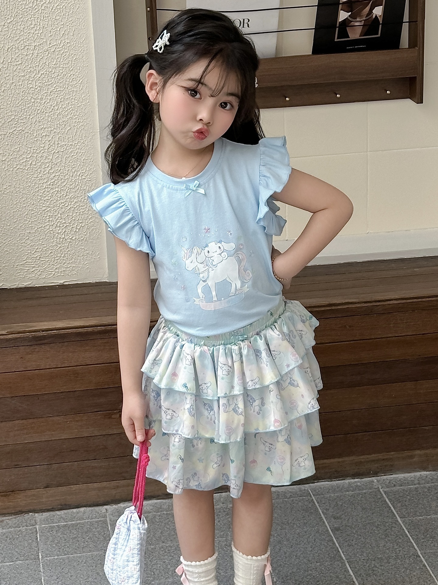 [드림유니콘] 25 개 신형 도착 컬로트 케이크 스커트 귀여운 코튼 라이크라 티셔츠 걸스 세트스토어 가기