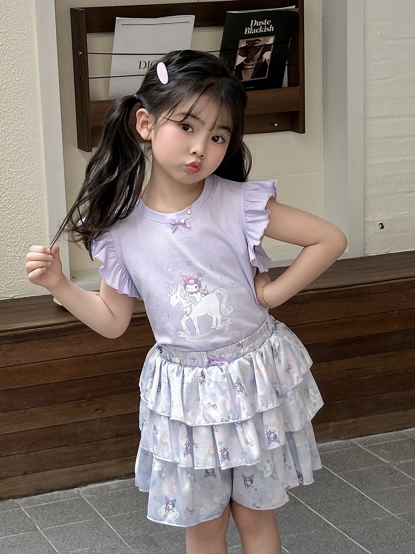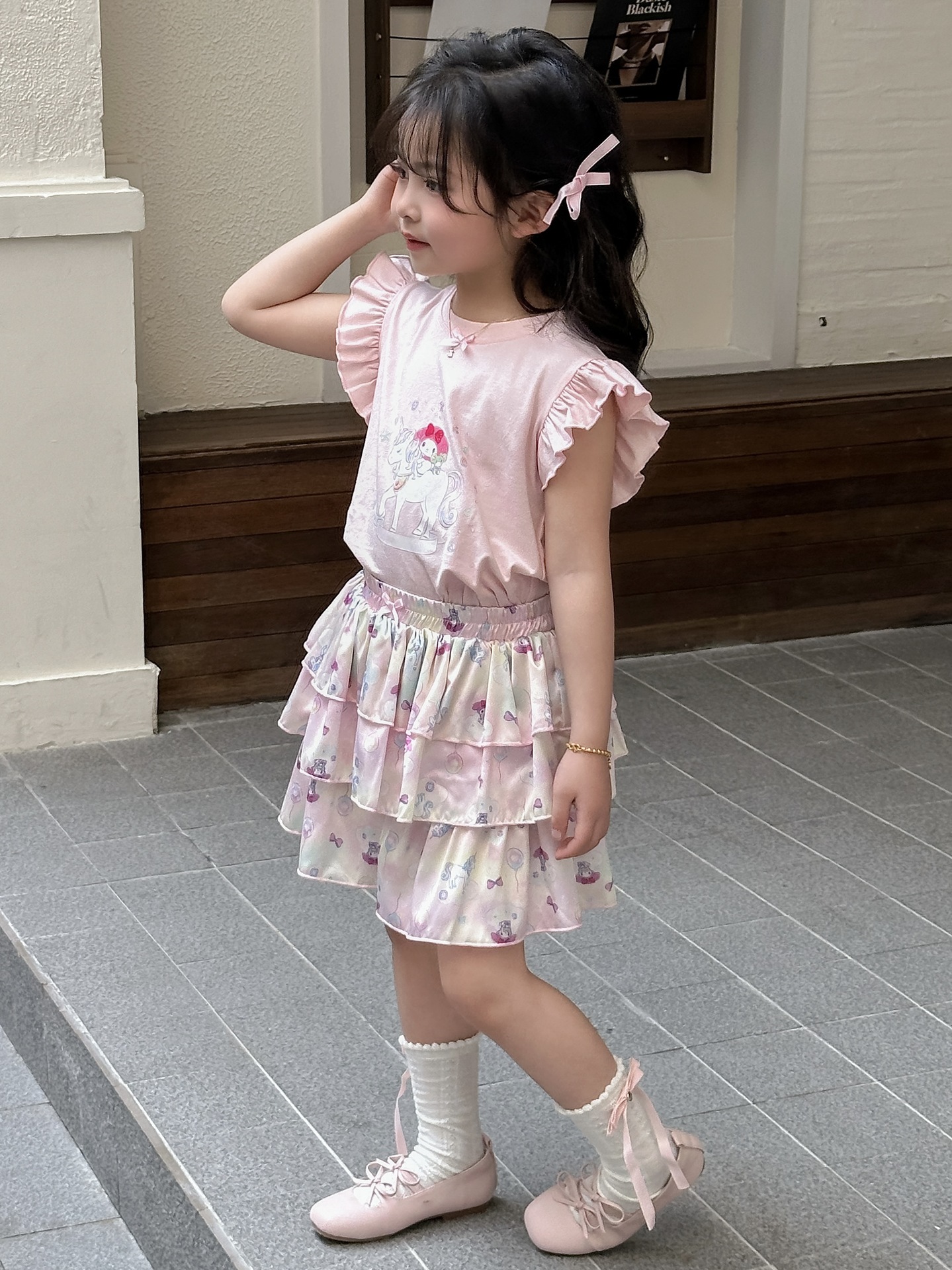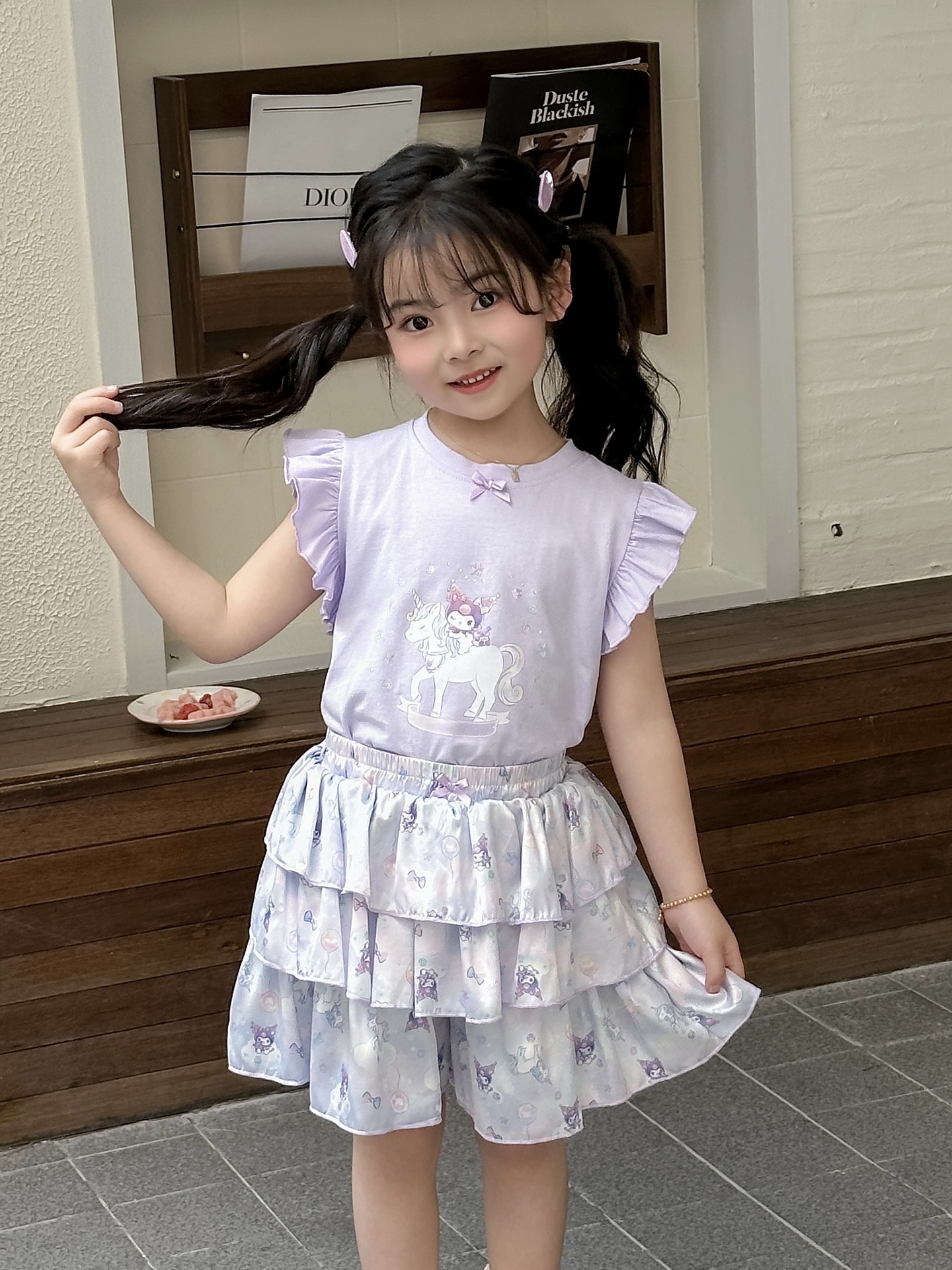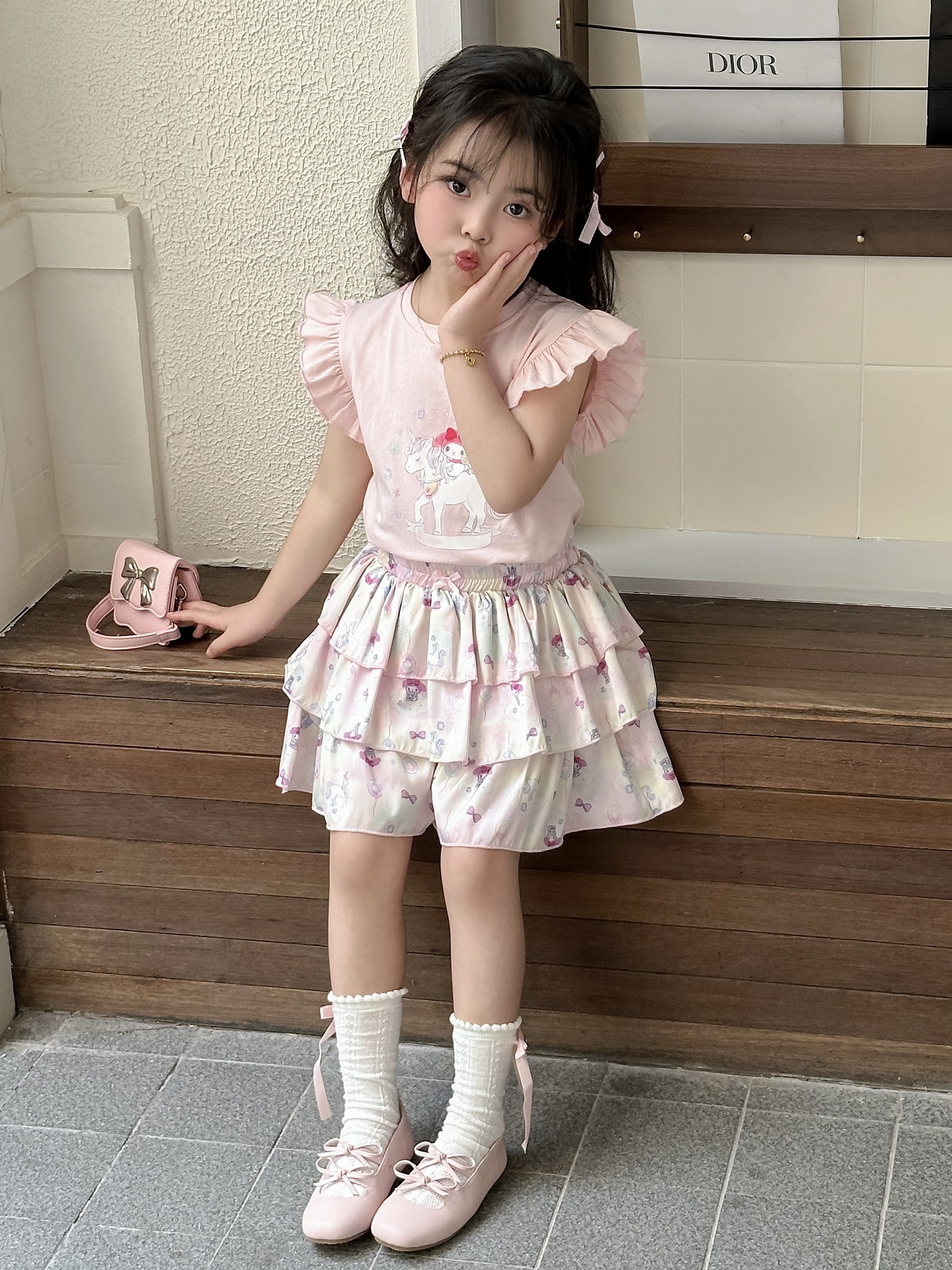 [드림유니콘] 25 개 신형 도착 컬로트 케이크 스커트 귀여운 코튼 라이크라 티셔츠 걸스 세트스토어 가기