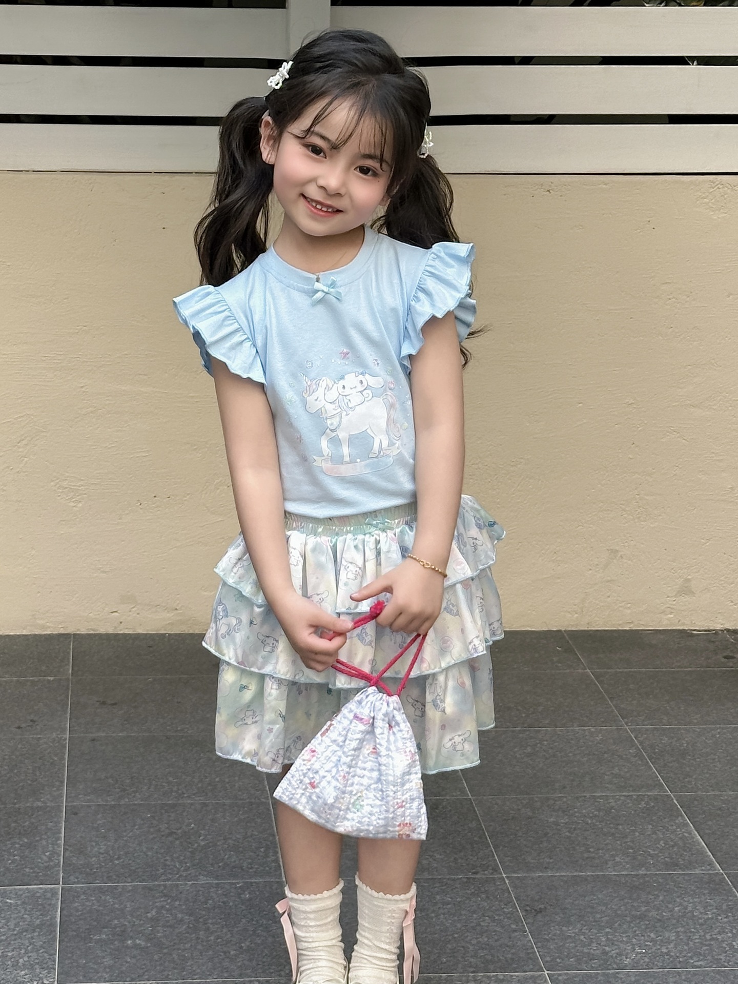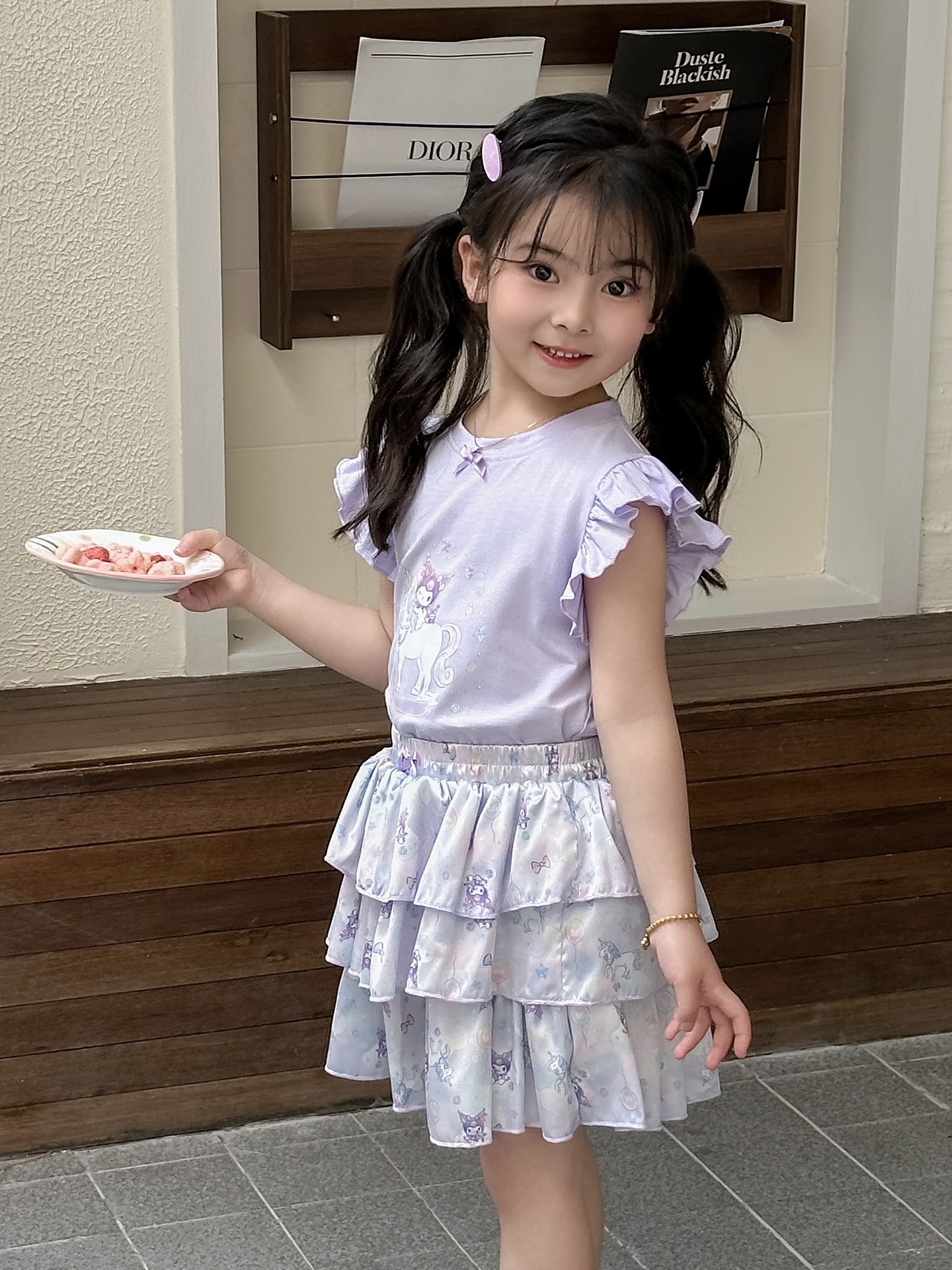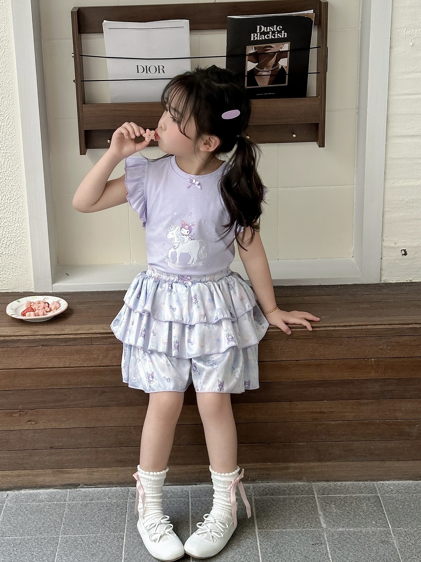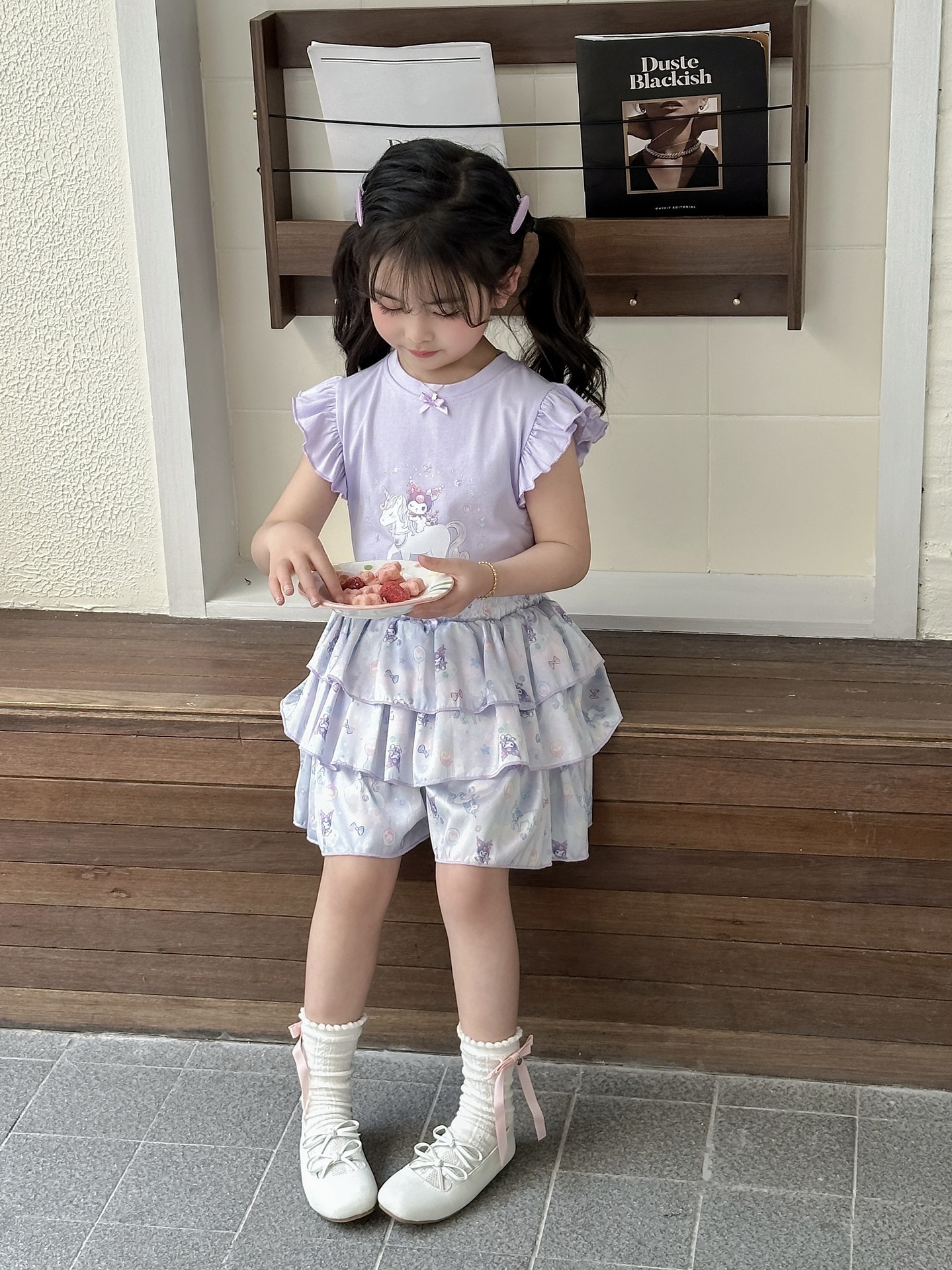 [드림유니콘] 25 개 신형 도착 컬로트 케이크 스커트 귀여운 코튼 라이크라 티셔츠 걸스 세트스토어 가기