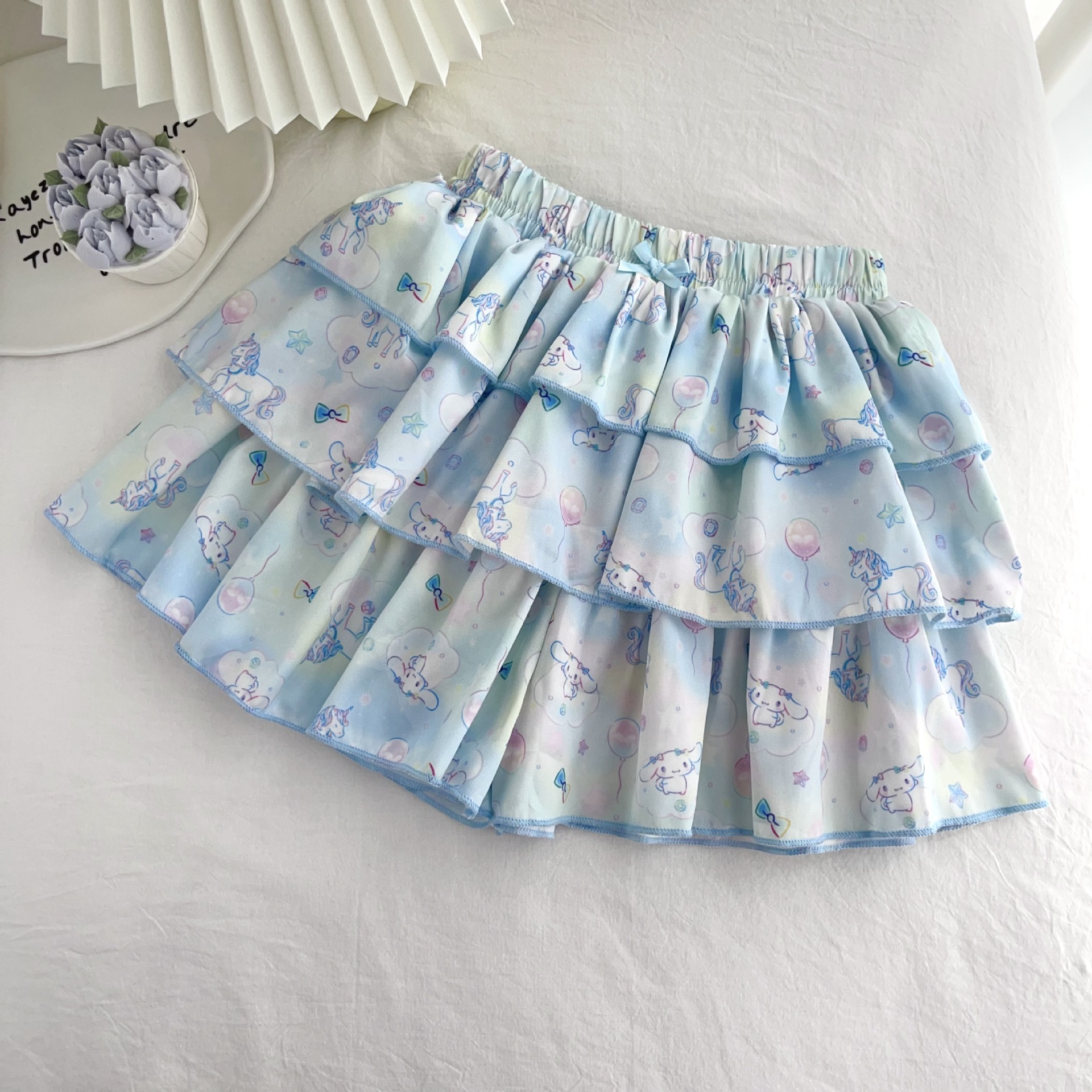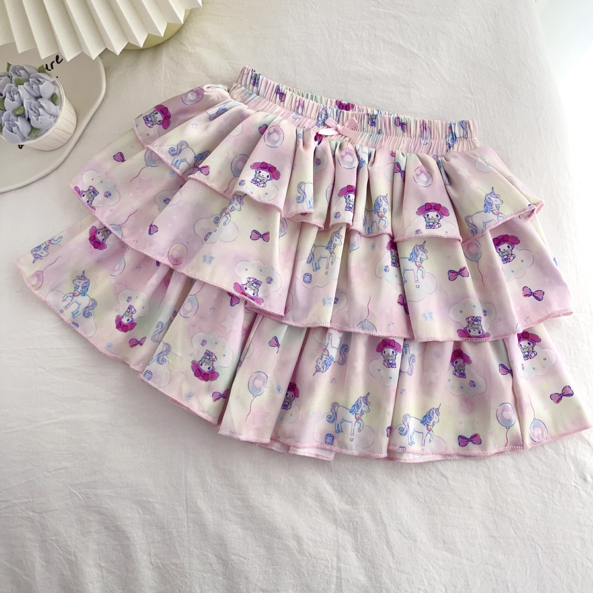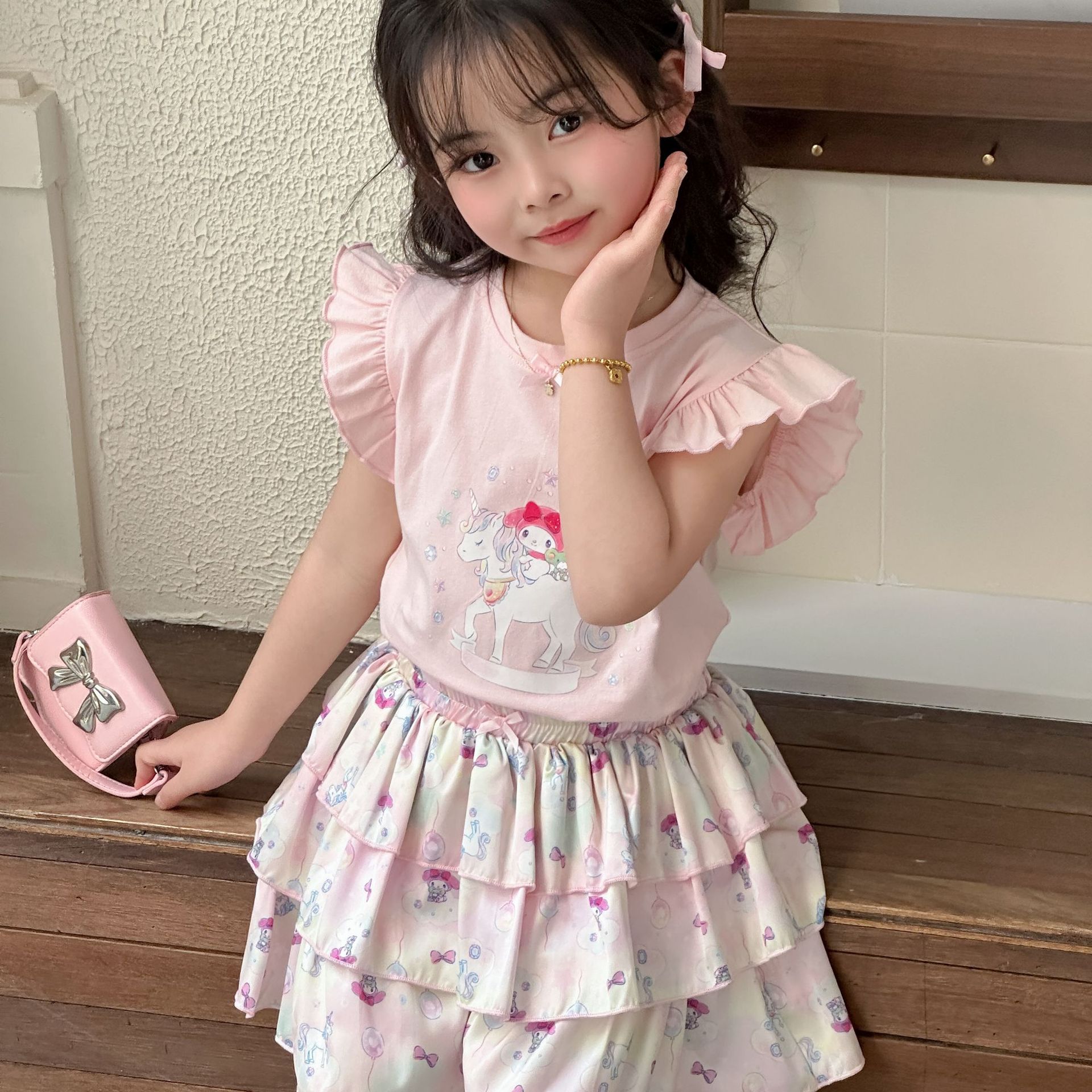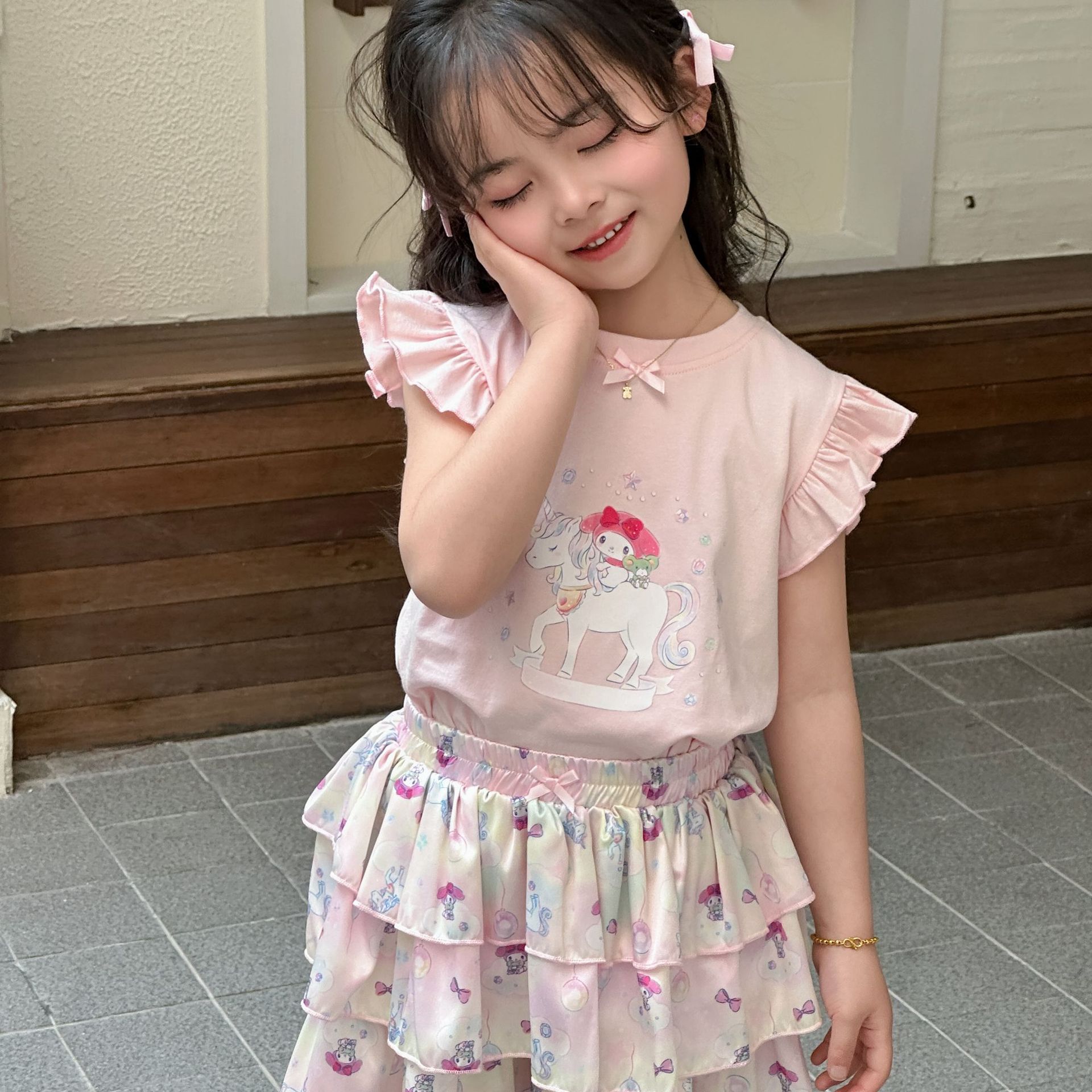 [드림유니콘] 25 개 신형 도착 컬로트 케이크 스커트 귀여운 코튼 라이크라 티셔츠 걸스 세트