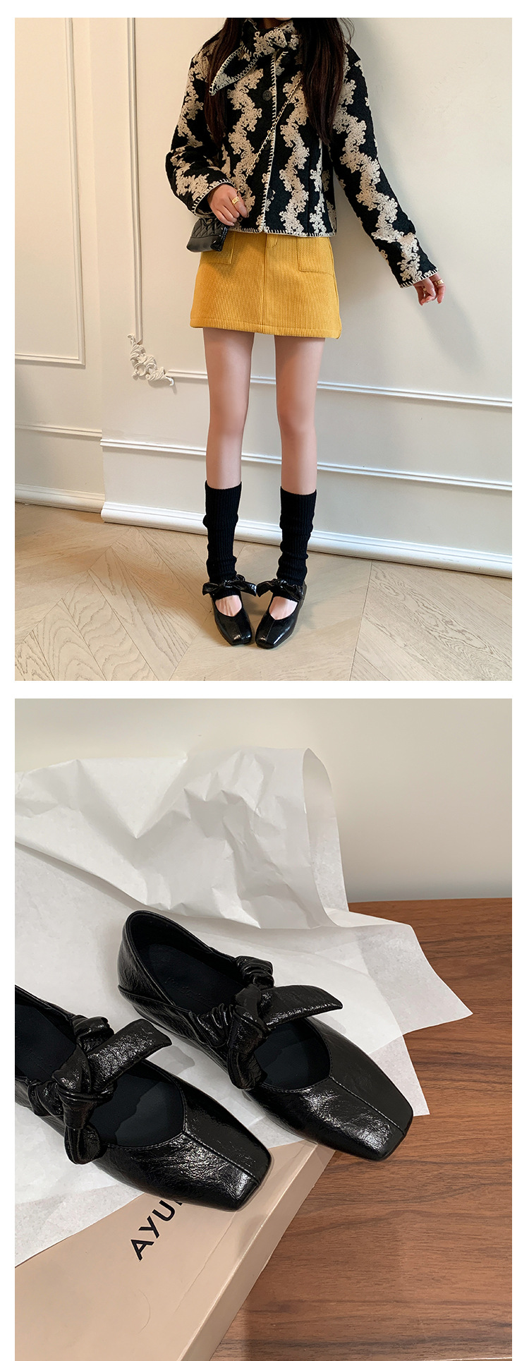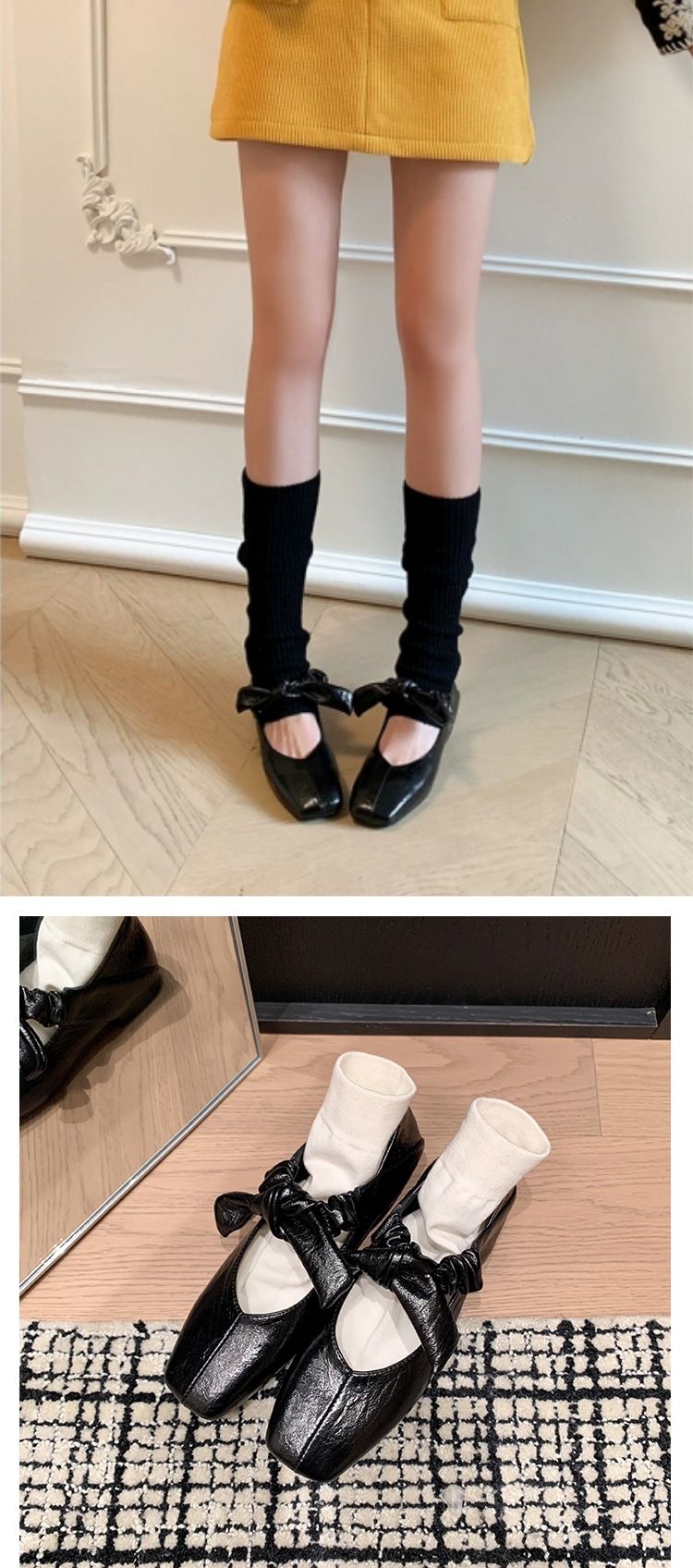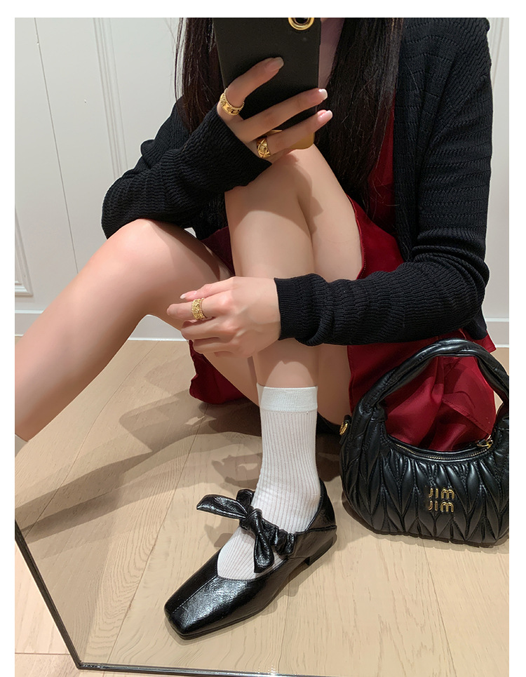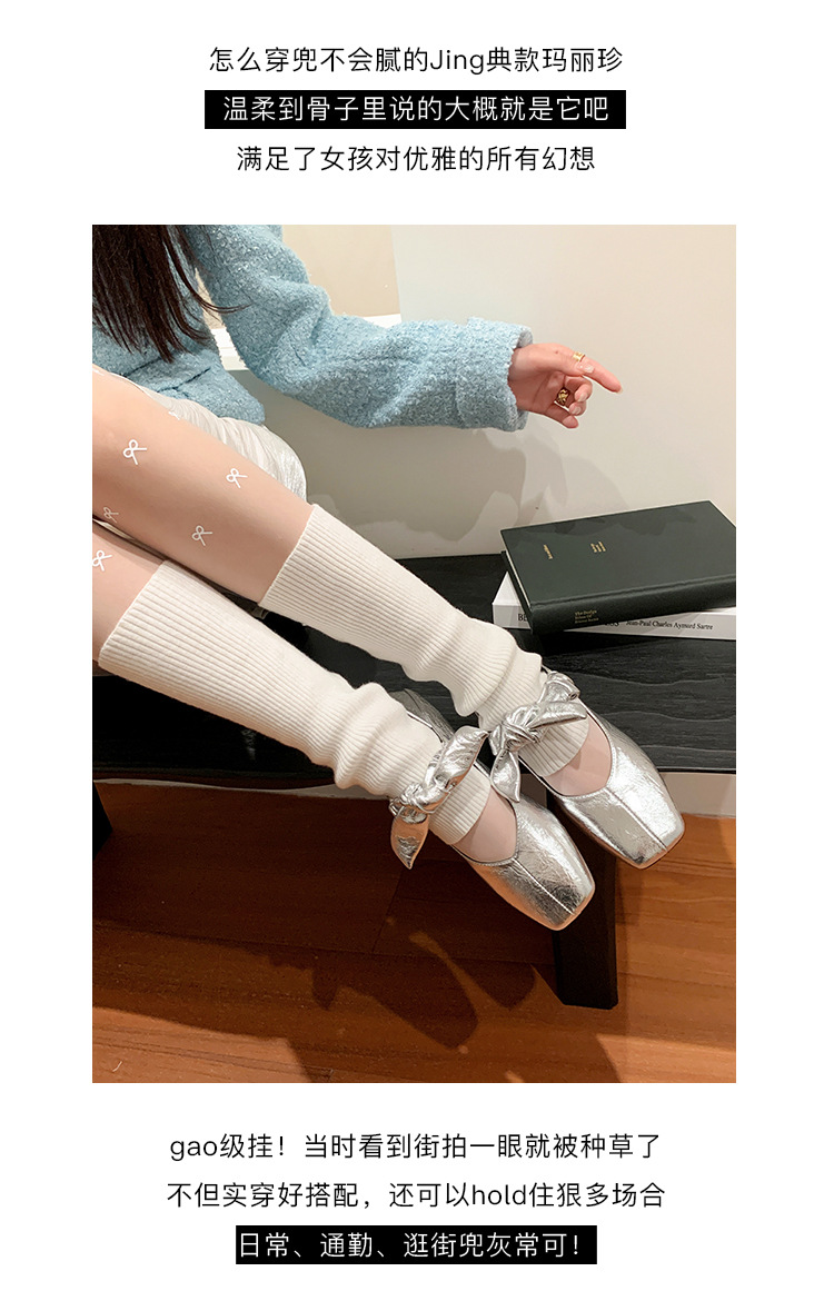 평평한 신발 얕은 입 작은 광장 머리 메리 제인 여성 신발 봄과 여름 달콤한 쿨 스타일 발레 신발스토어 가기