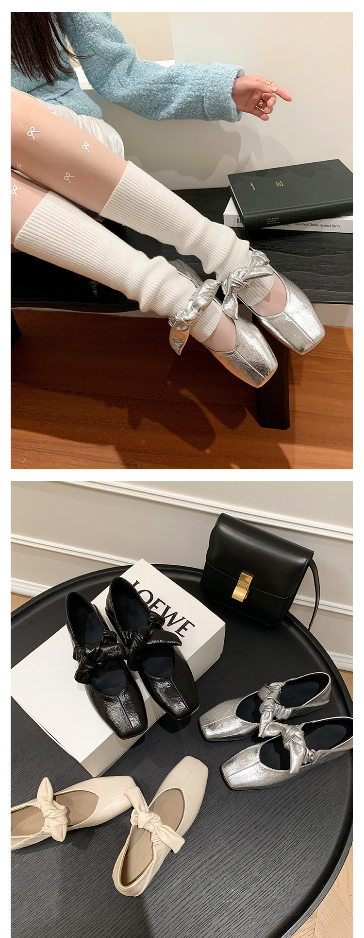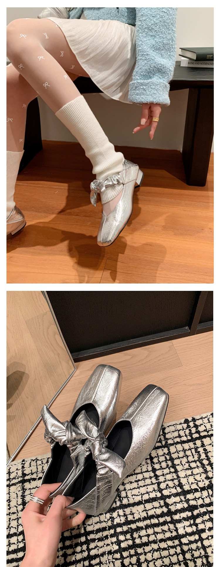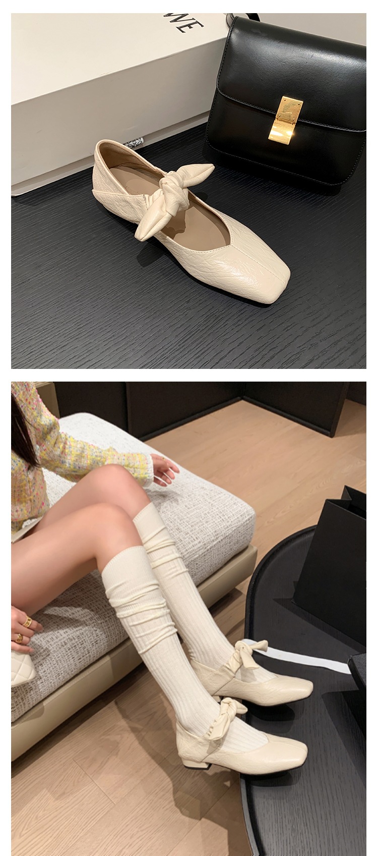평평한 신발 얕은 입 작은 광장 머리 메리 제인 여성 신발 봄과 여름 달콤한 쿨 스타일 발레 신발스토어 가기