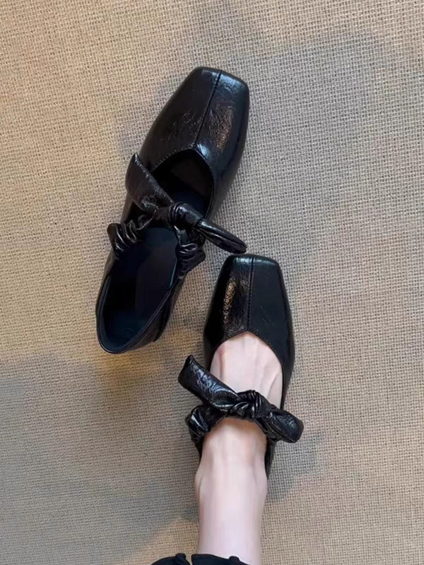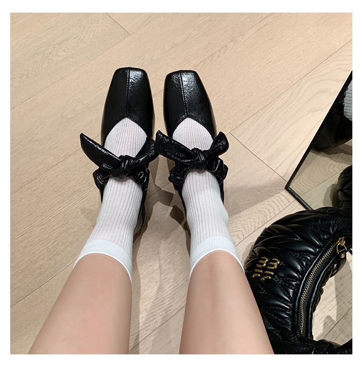 평평한 신발 얕은 입 작은 광장 머리 메리 제인 여성 신발 봄과 여름 달콤한 쿨 스타일 발레 신발