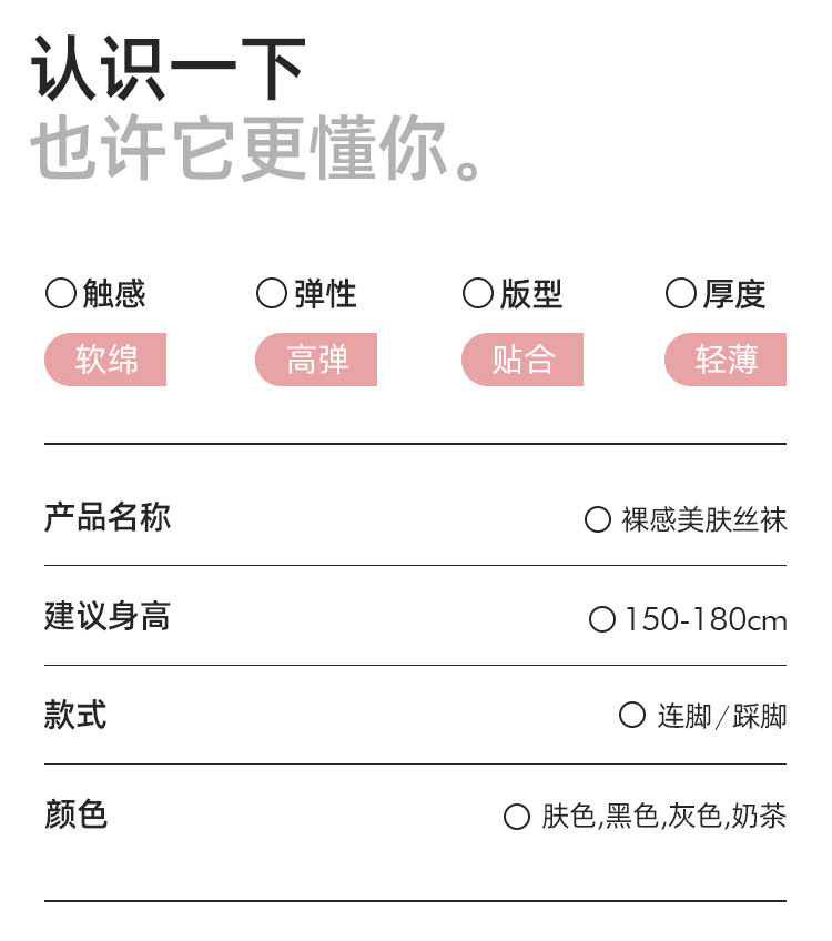 本产品非医疗压力袜/瘦腿袜,不具备医疗效果请勿替代医疗用途。显瘦、瘦腿等属于非医疗性宣传,属穿着后视觉效果。