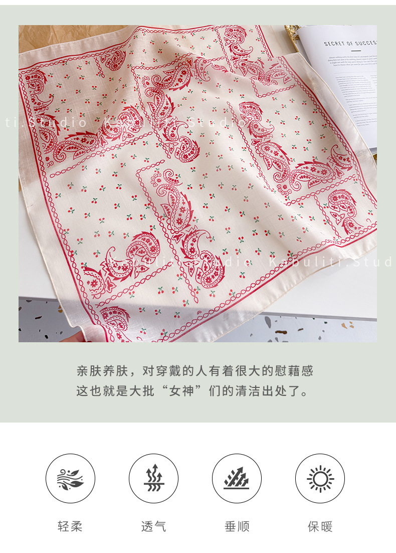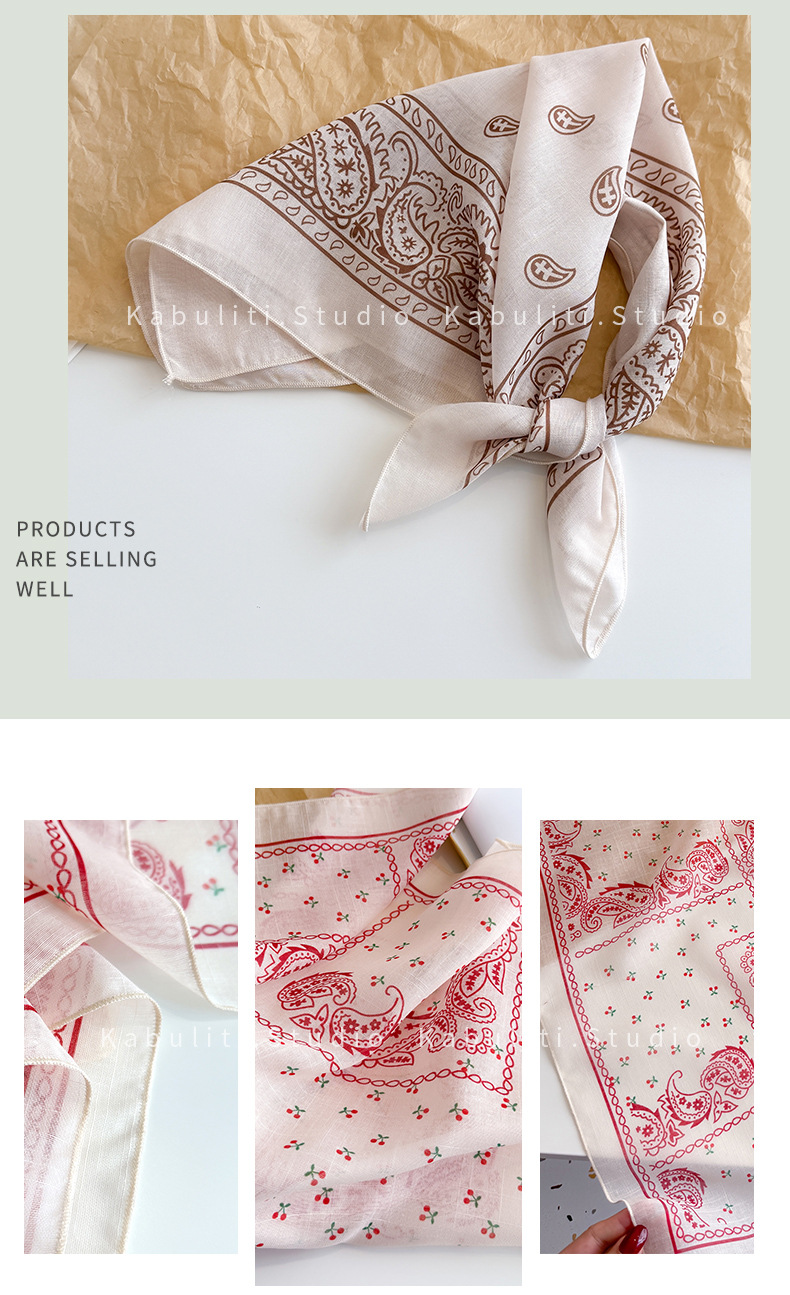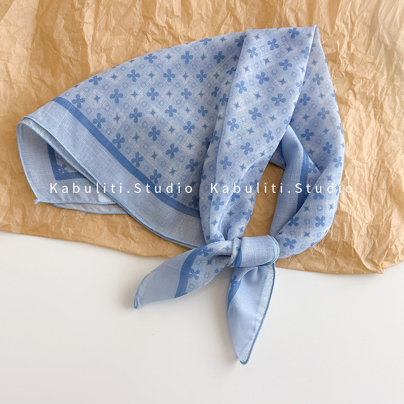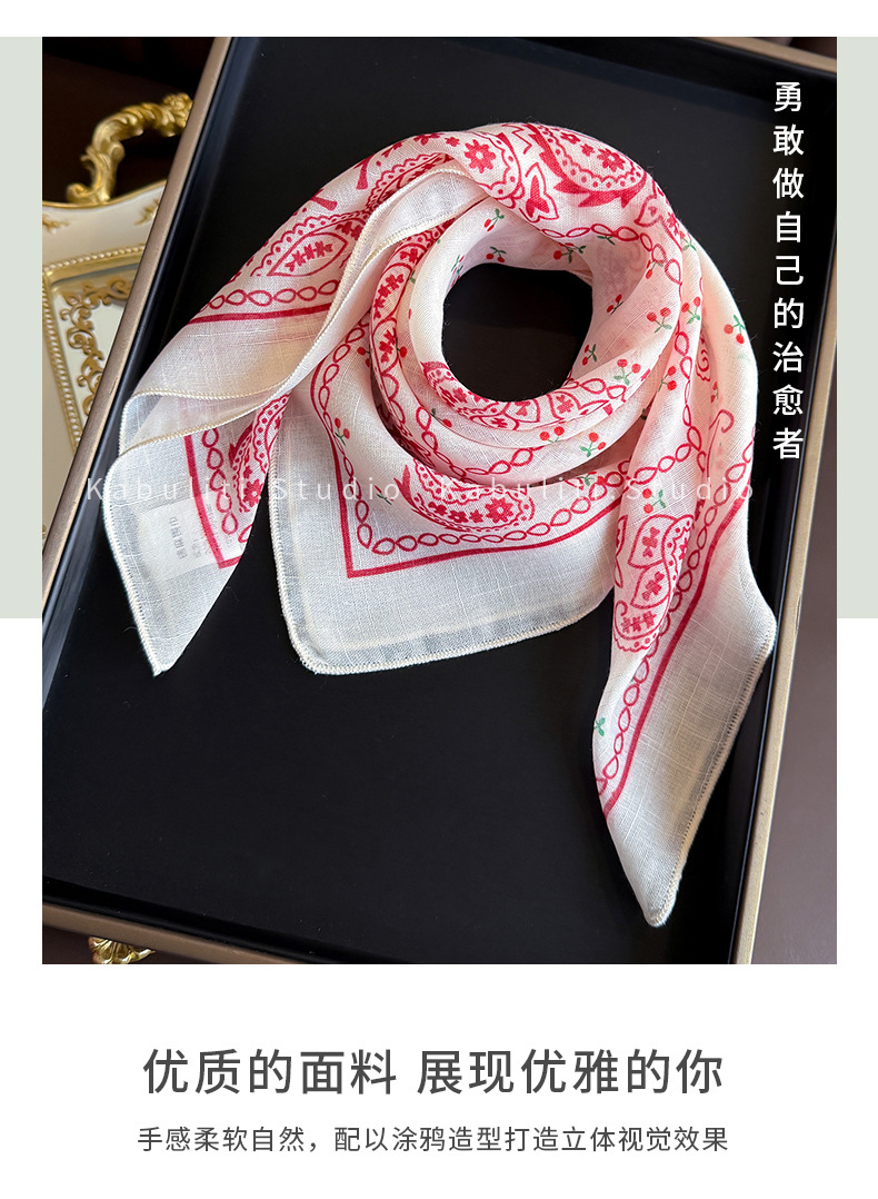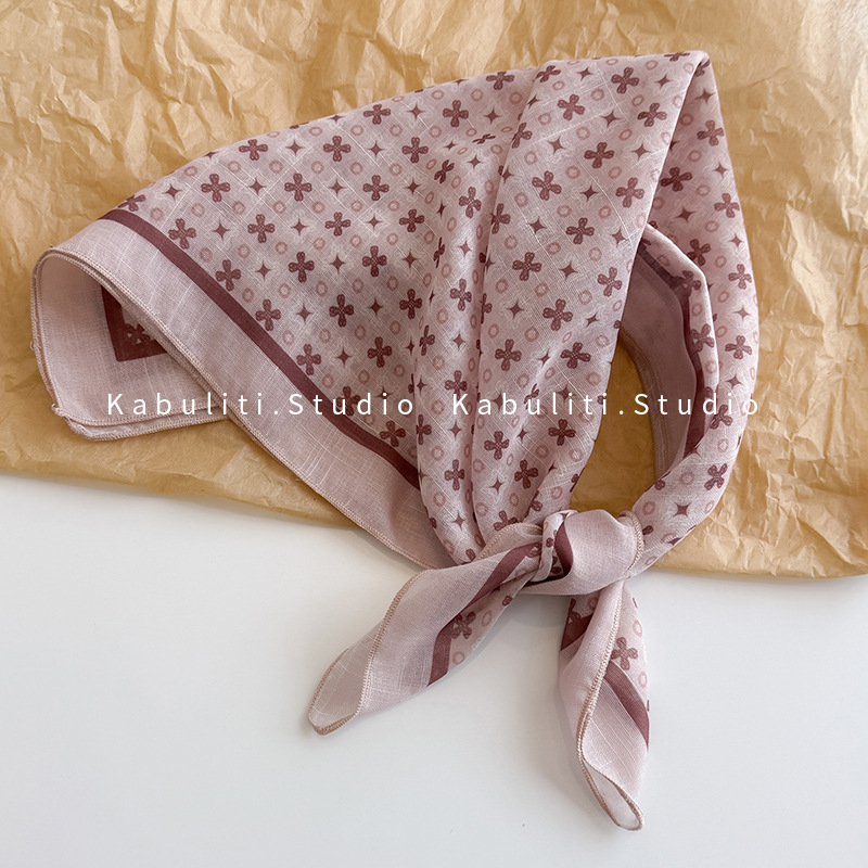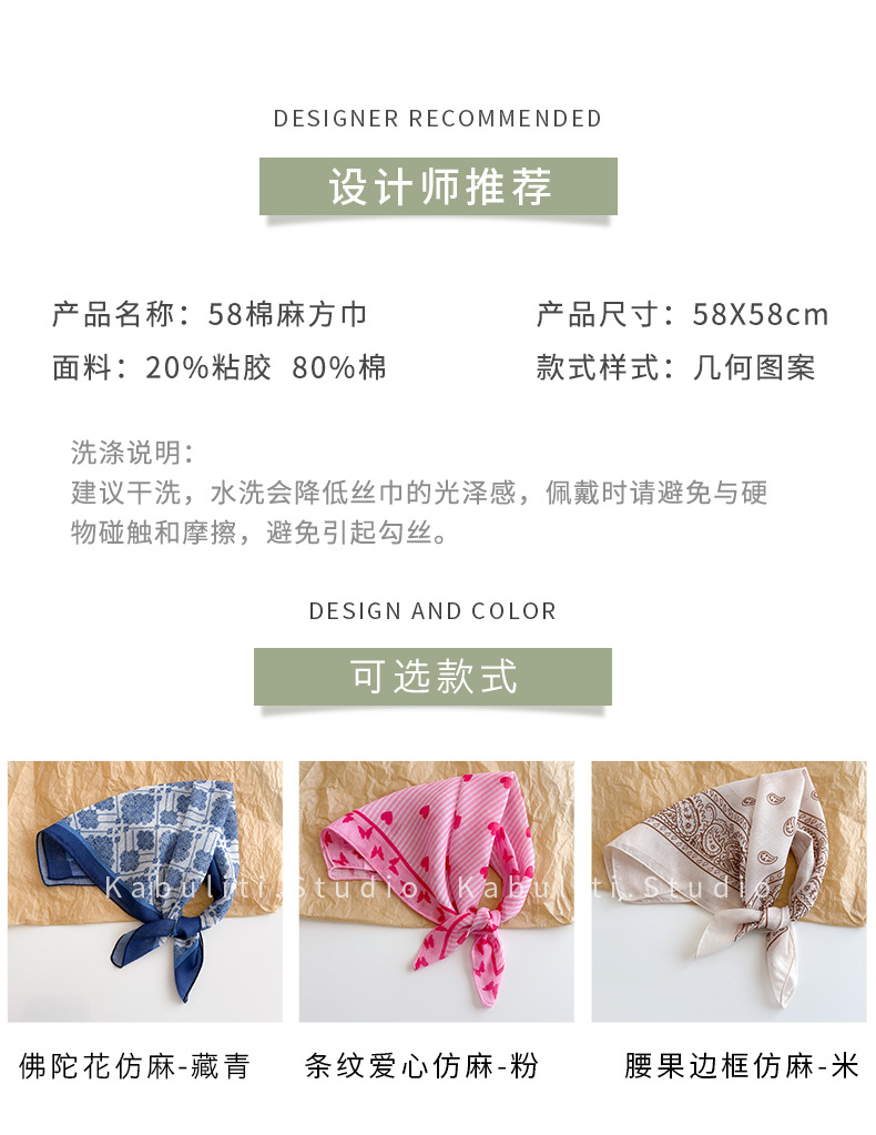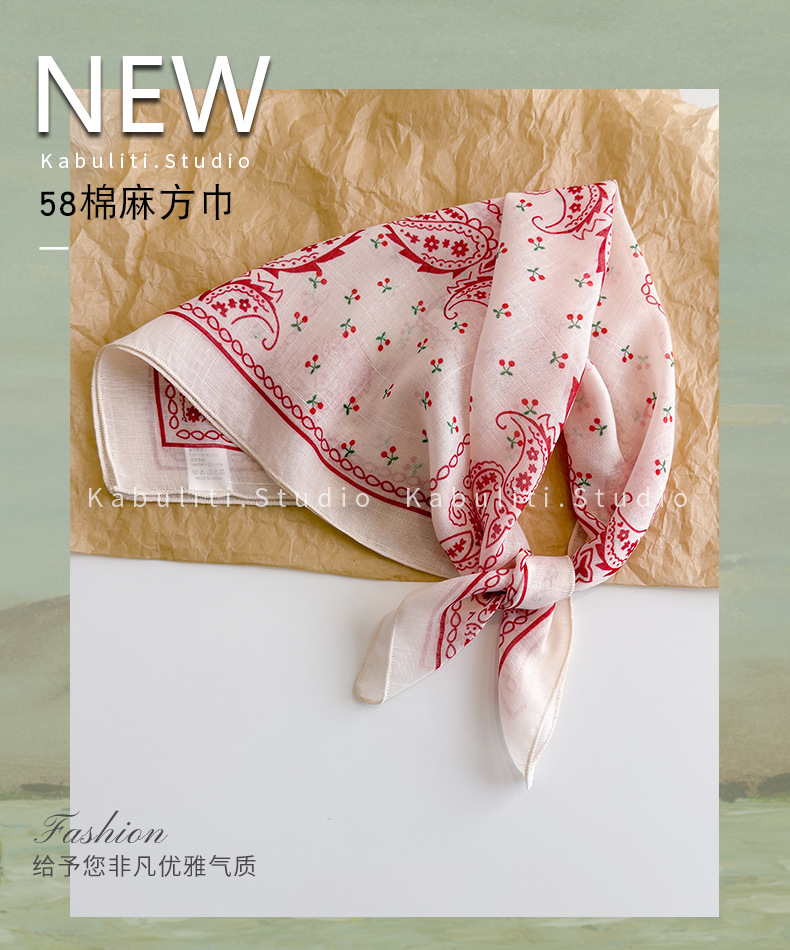 58면과 린넨 작은 사각형 스카프 여성 봄, 가을 한국 문학 다목적 패션 기질 스카프 머리띠 장식 스카프스토어 가기