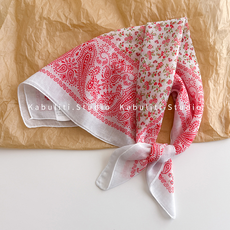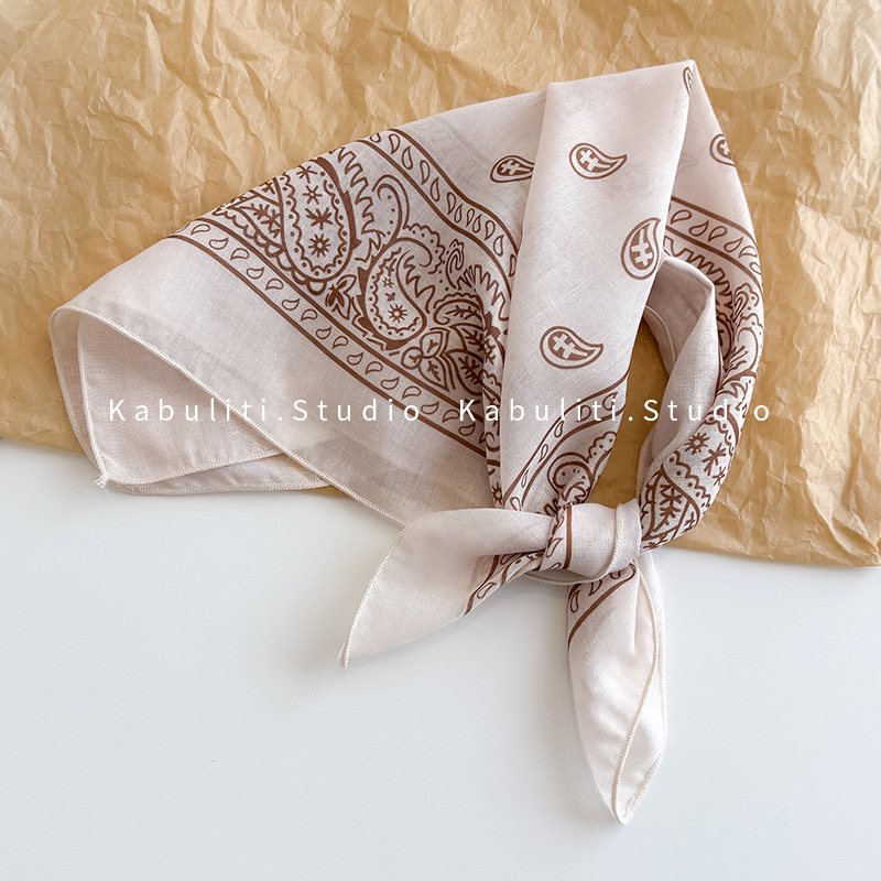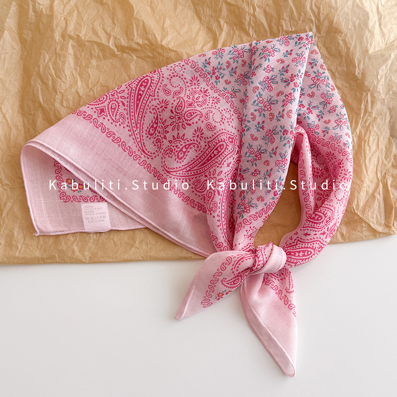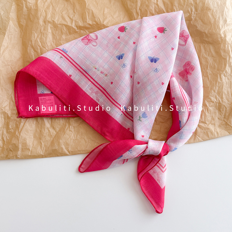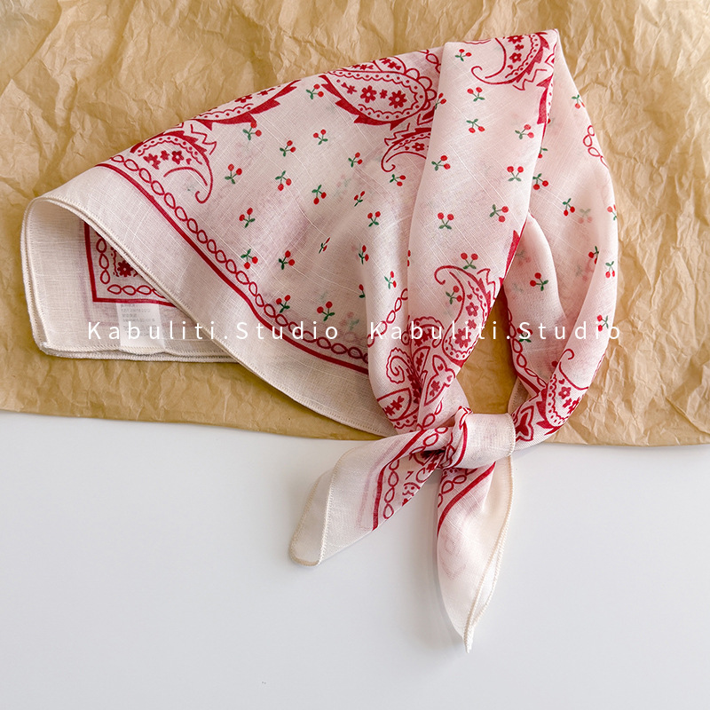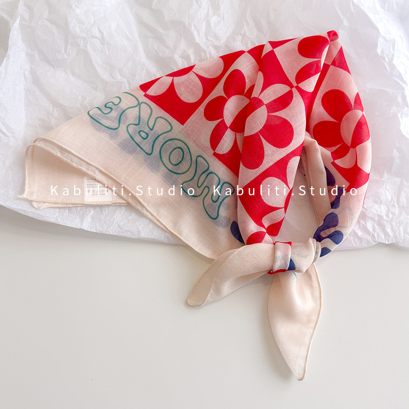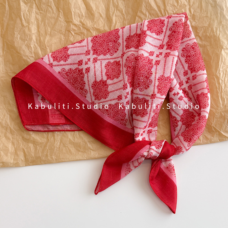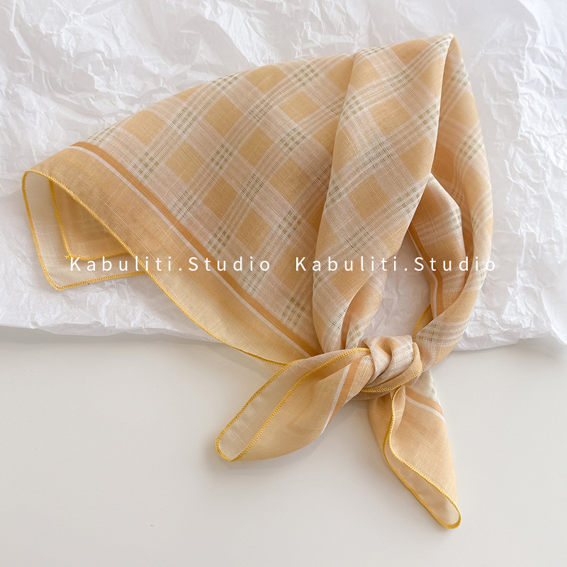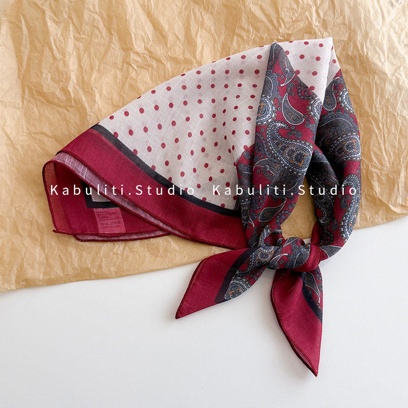 58면과 린넨 작은 사각형 스카프 여성 봄, 가을 한국 문학 다목적 패션 기질 스카프 머리띠 장식 스카프스토어 가기