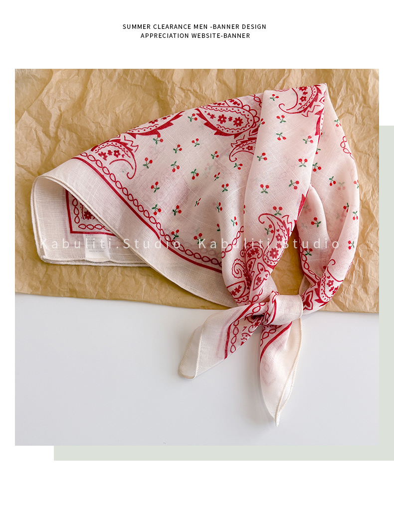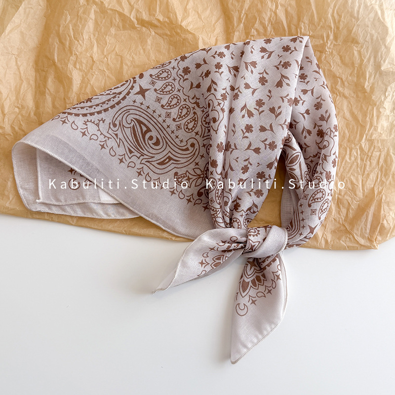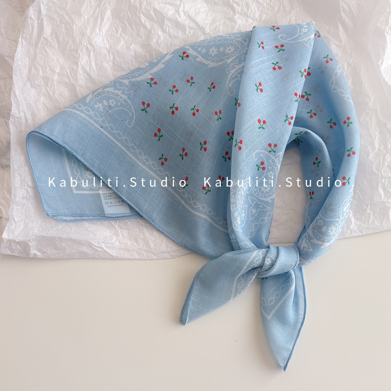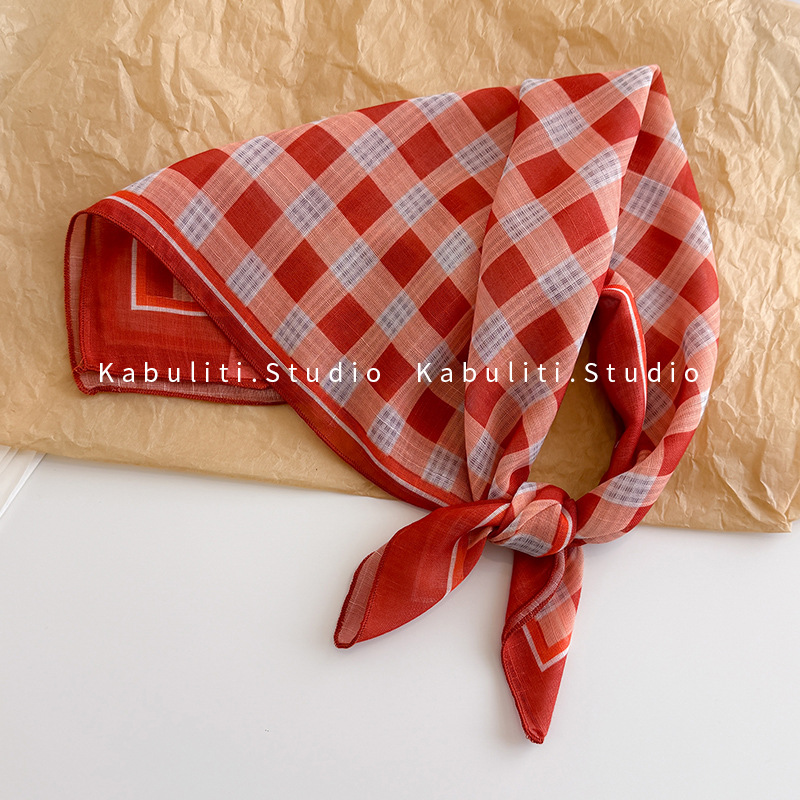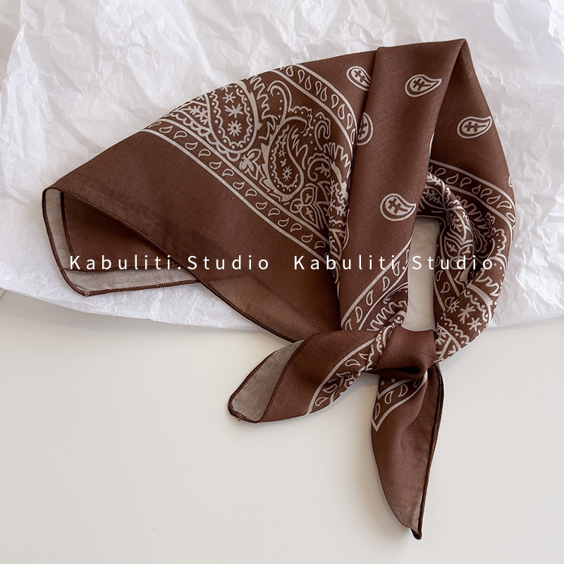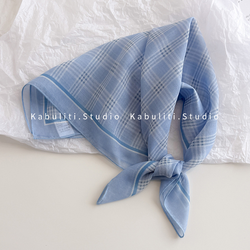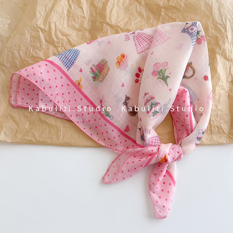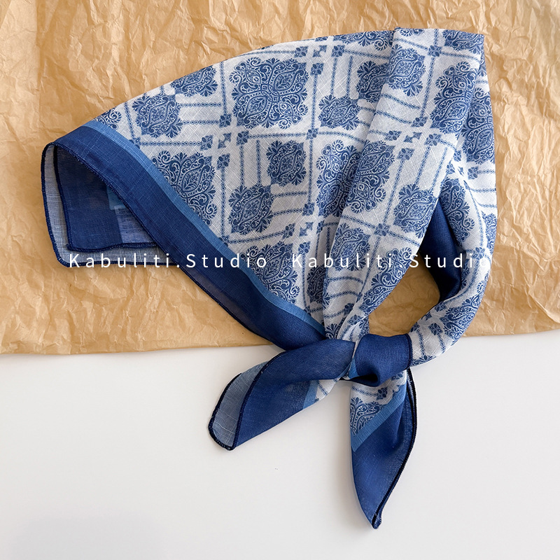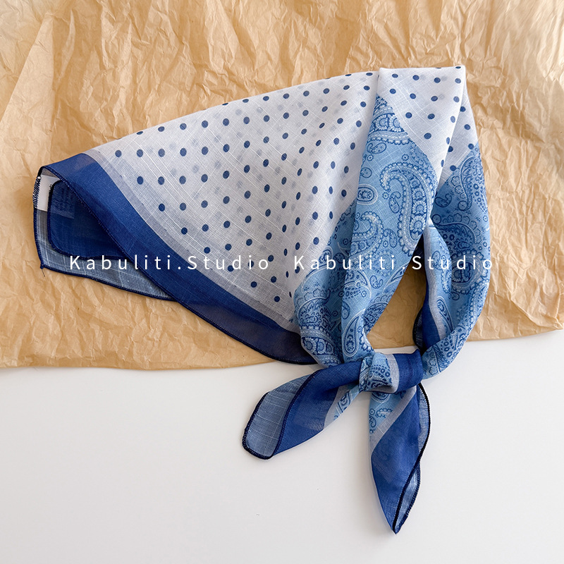 58면과 린넨 작은 사각형 스카프 여성 봄, 가을 한국 문학 다목적 패션 기질 스카프 머리띠 장식 스카프스토어 가기