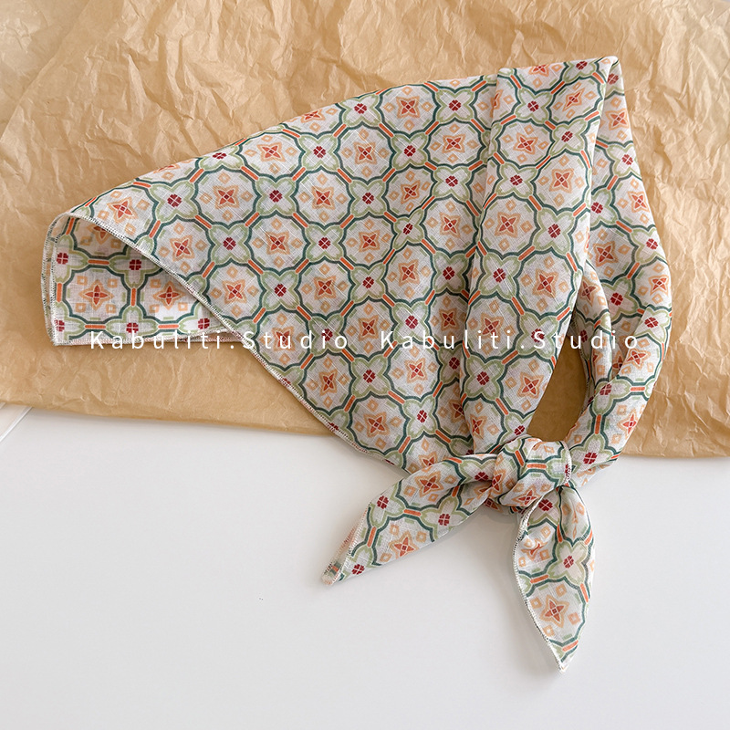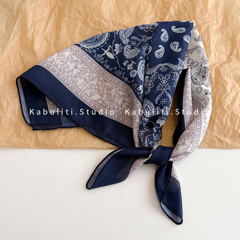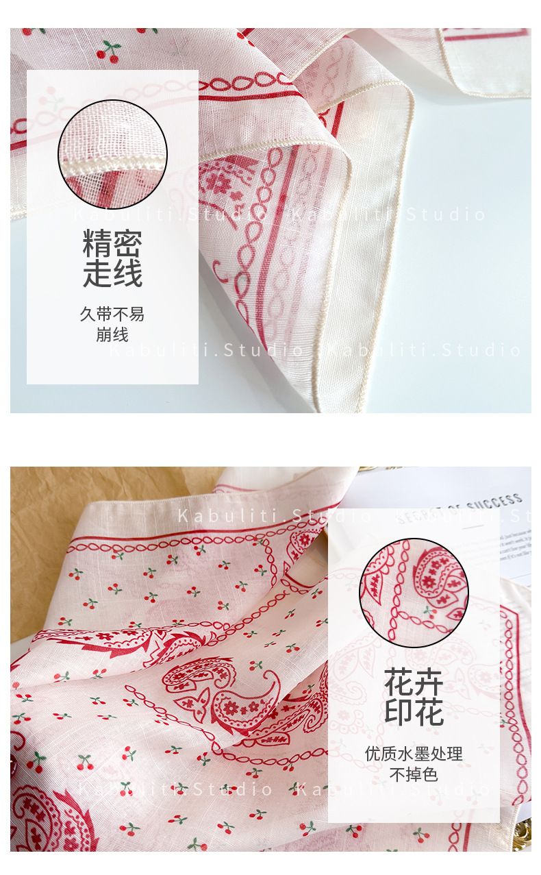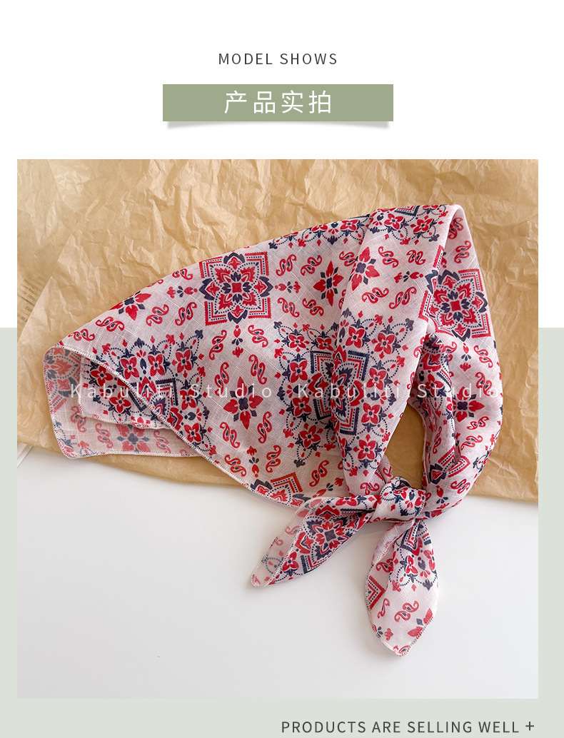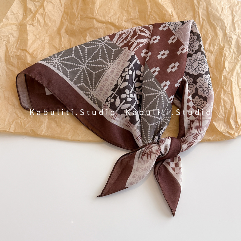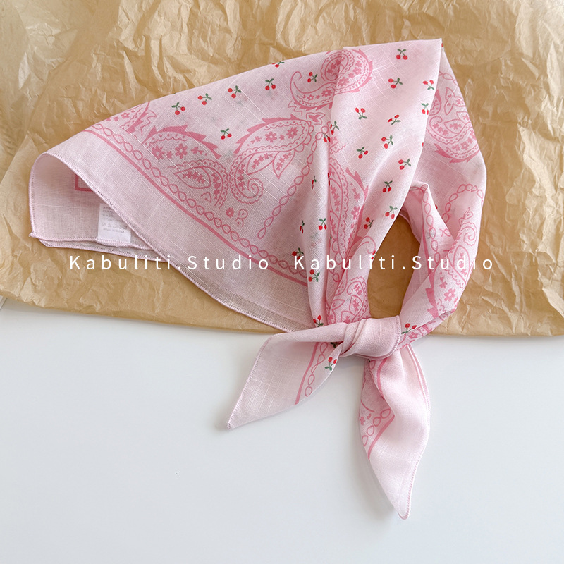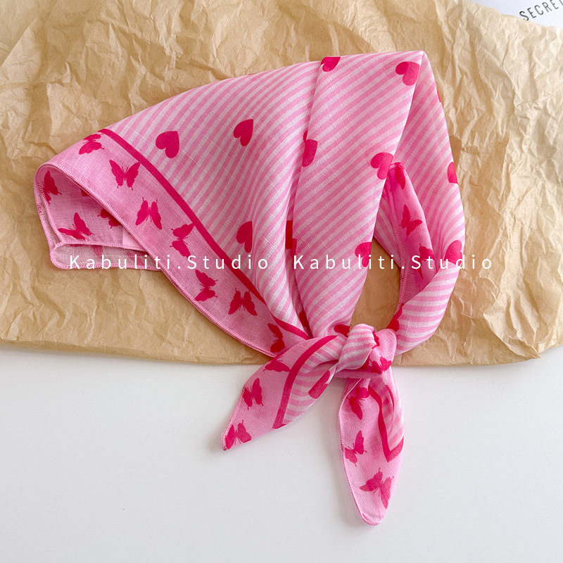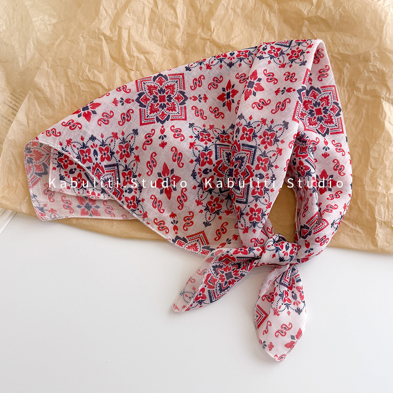 58면과 린넨 작은 사각형 스카프 여성 봄, 가을 한국 문학 다목적 패션 기질 스카프 머리띠 장식 스카프스토어 가기