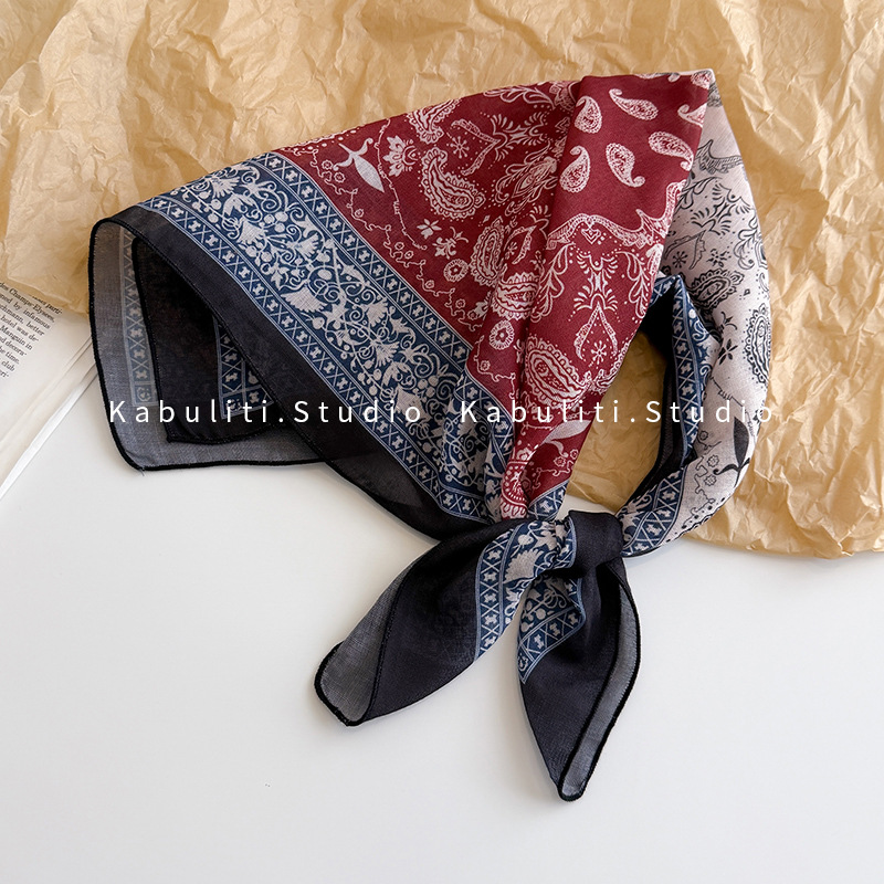 58면과 린넨 작은 사각형 스카프 여성 봄, 가을 한국 문학 다목적 패션 기질 스카프 머리띠 장식 스카프