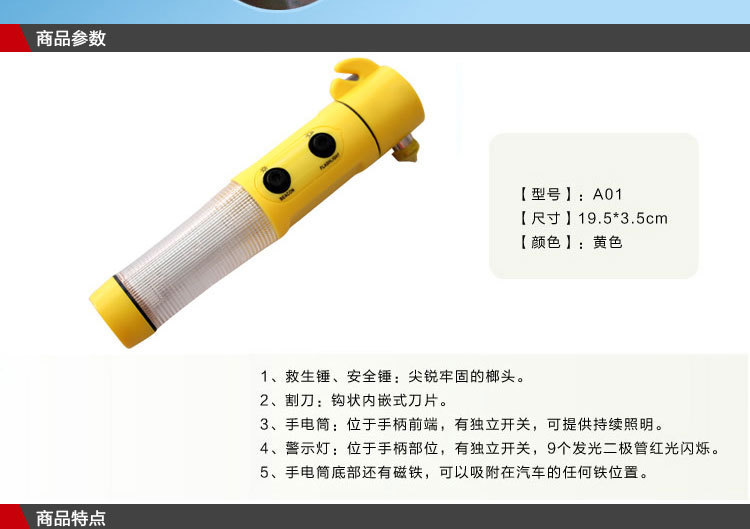 다기능 자동차 특수 안전 망치, 자동차 탈출 창 유리 안전 망치, 소방 손전등 4-in-1스토어 가기