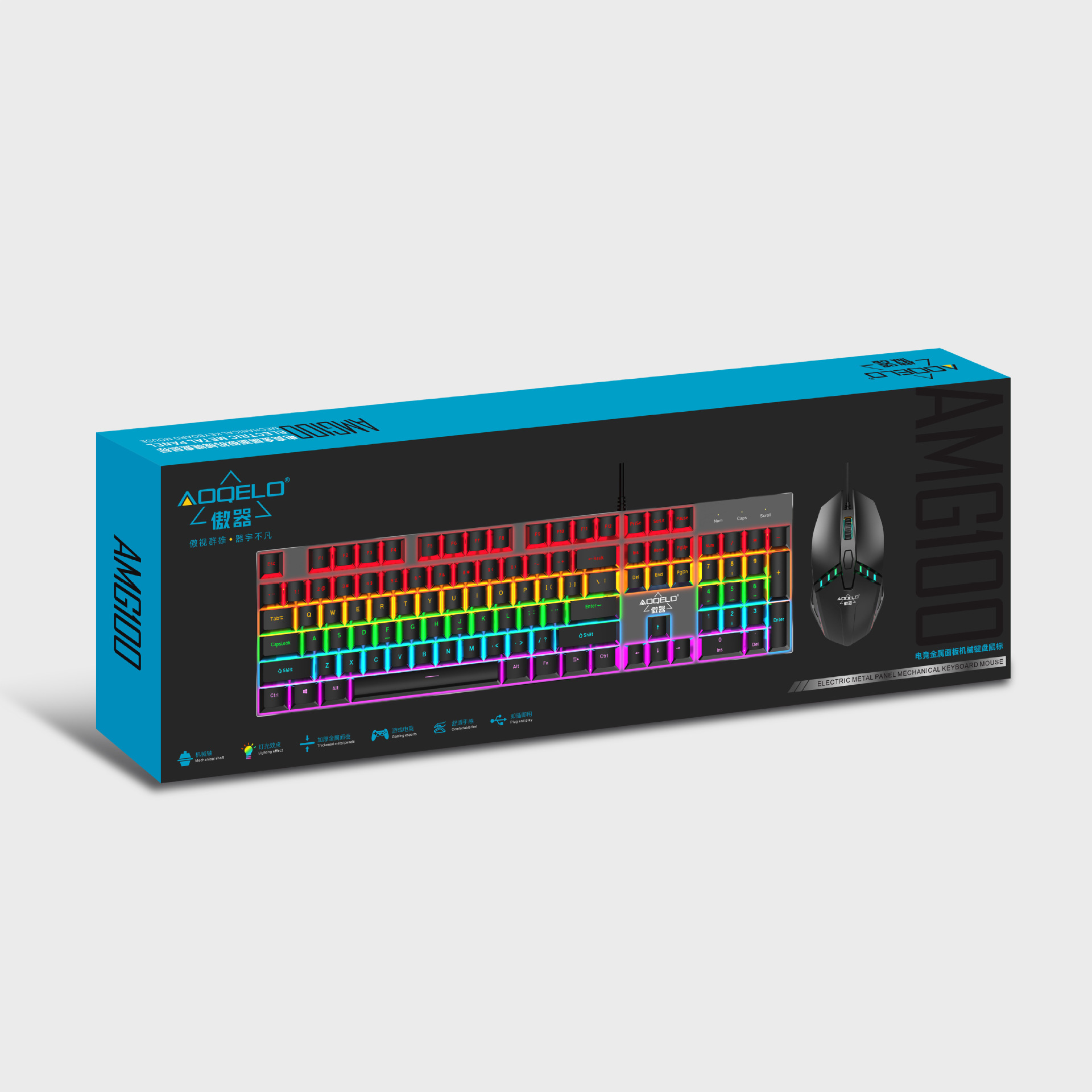 Aoji AMG100 기계식 유선 키보드 및 마우스 세트 e-스포츠 게임용 금속 패널 컴퓨터 키보드 및 마우스스토어 가기
