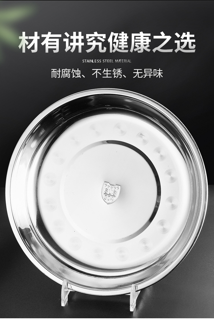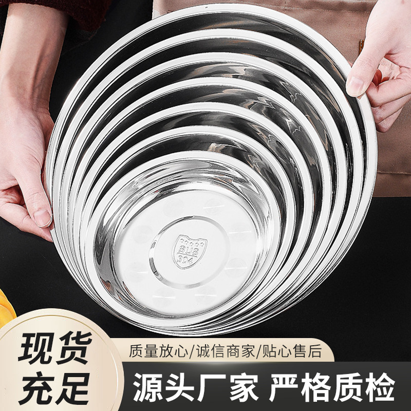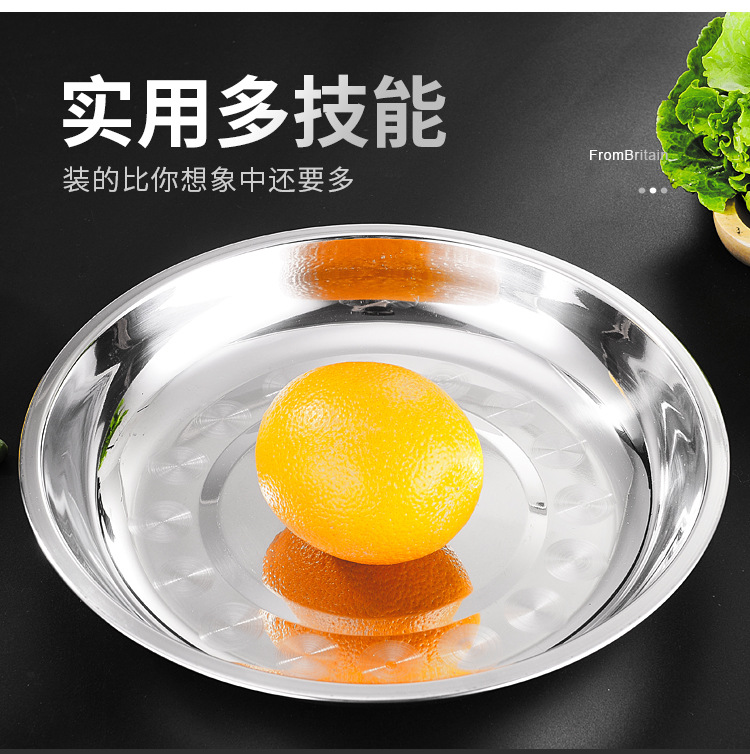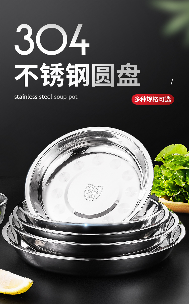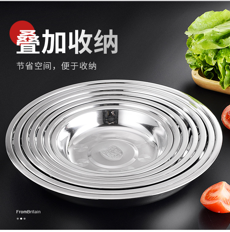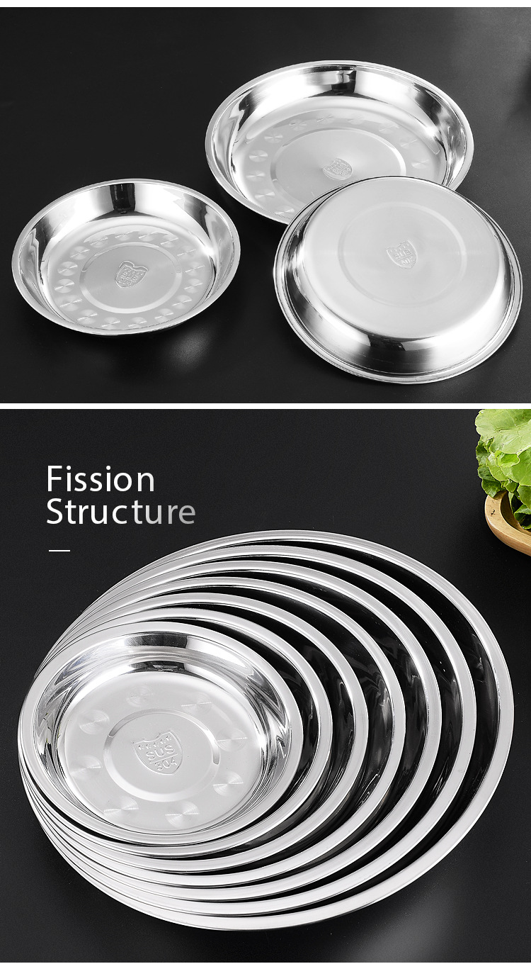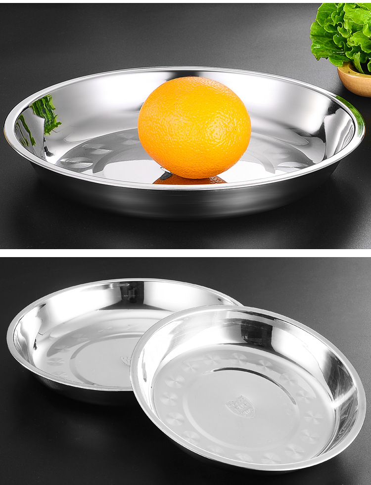 맞춤형 304 스테인레스 스틸 원형 과일 접시, 깊은 평면 접시, 바베큐 접시, 학생 저녁 식사 접시, 가정용 상업용 접시스토어 가기