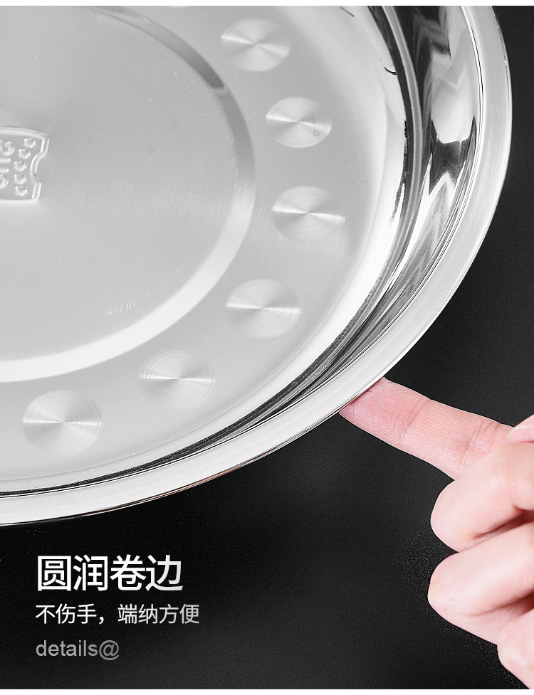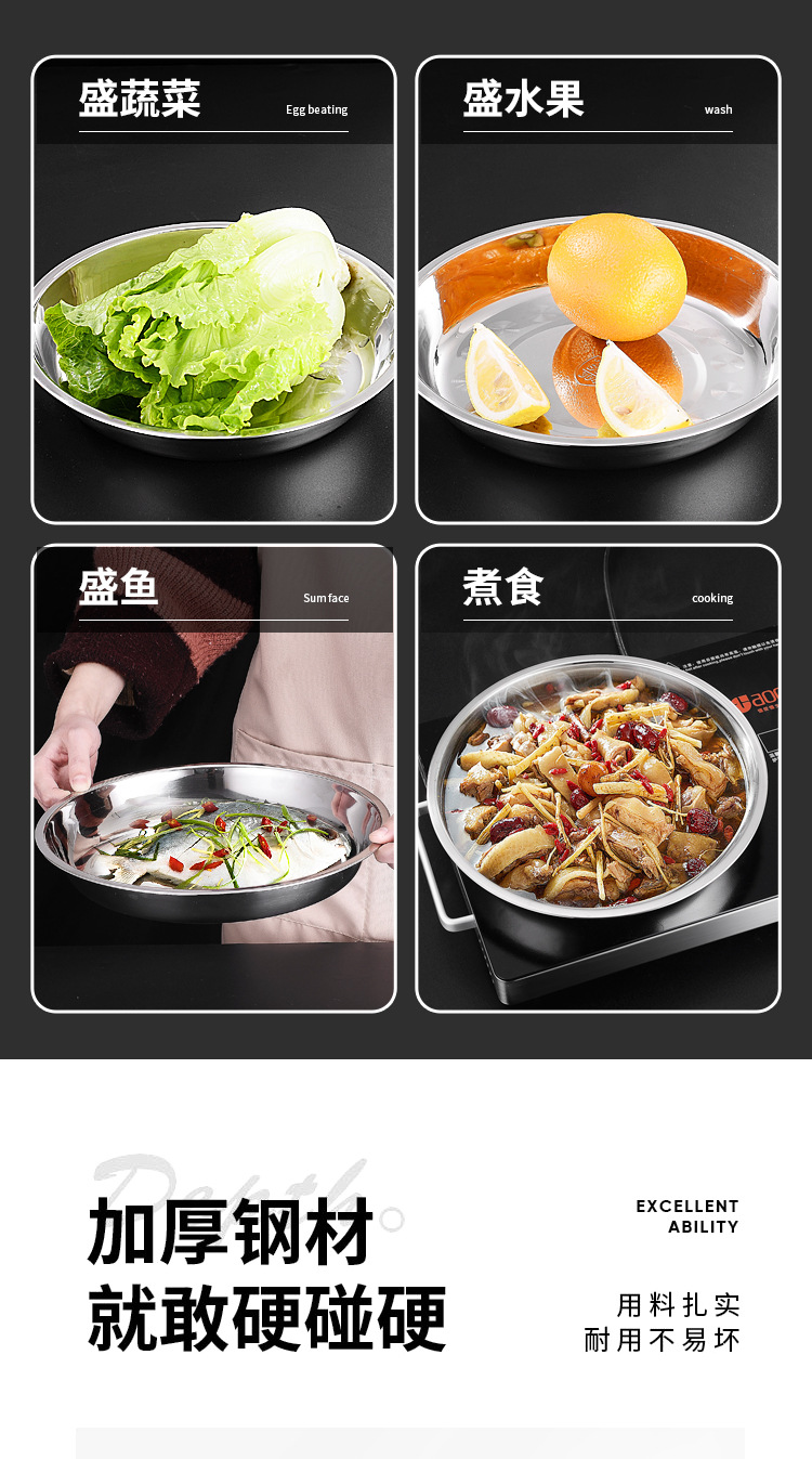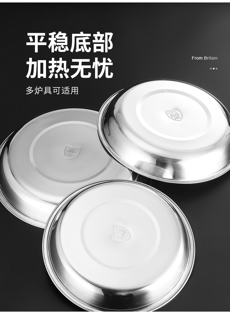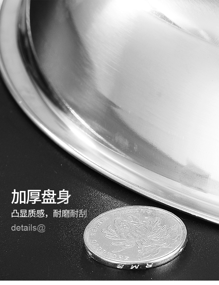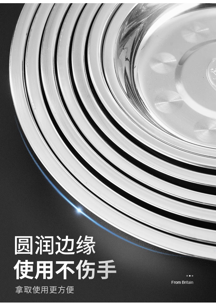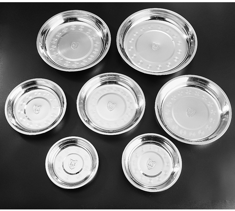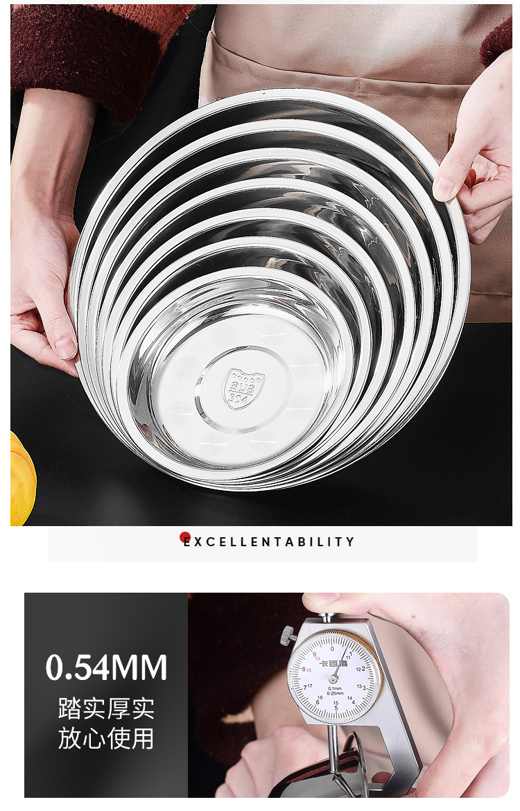 맞춤형 304 스테인레스 스틸 원형 과일 접시, 깊은 평면 접시, 바베큐 접시, 학생 저녁 식사 접시, 가정용 상업용 접시스토어 가기