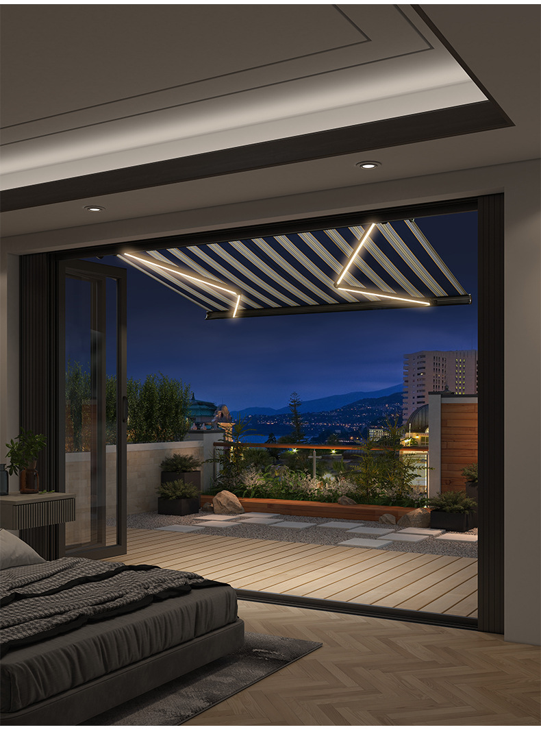 수출 국경 간 차양 원격 제어 자동 개폐식 차양 빛 휴대 전화 앱 전기 차양 야외