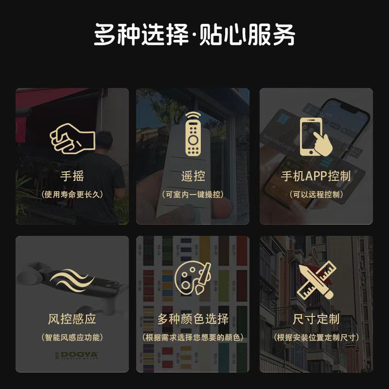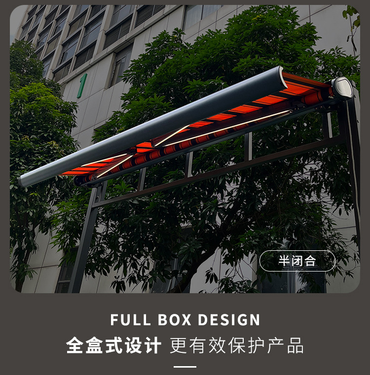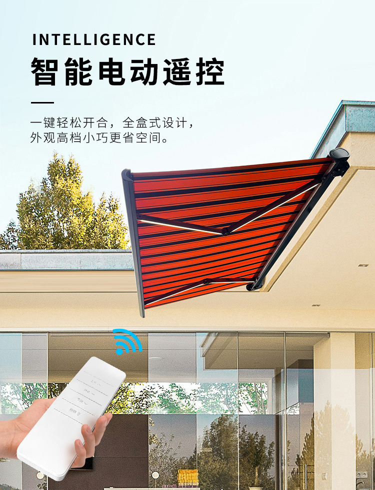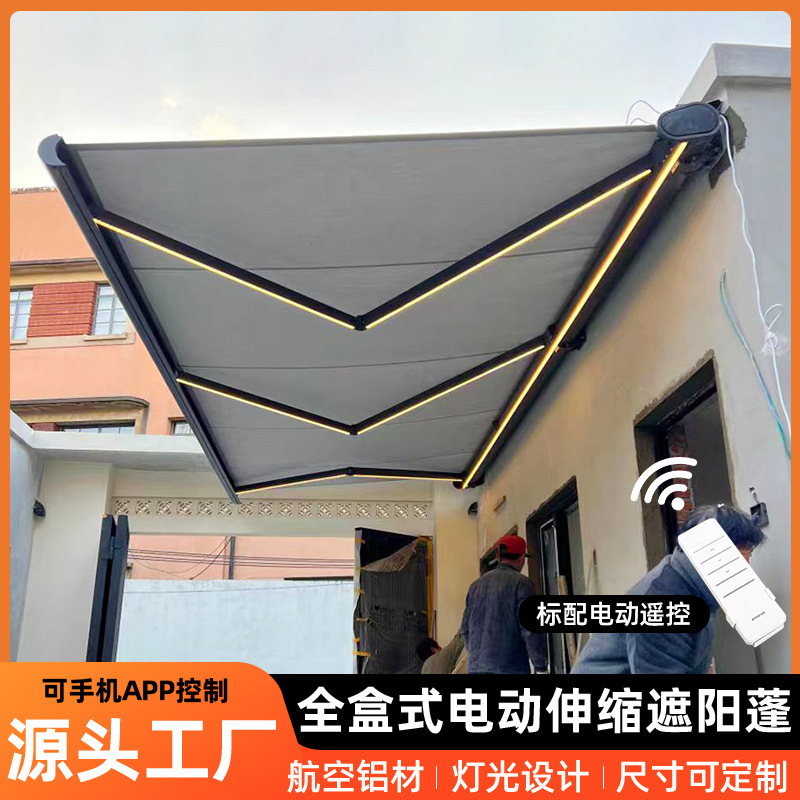 수출 국경 간 차양 원격 제어 자동 개폐식 차양 빛 휴대 전화 앱 전기 차양 야외스토어 가기