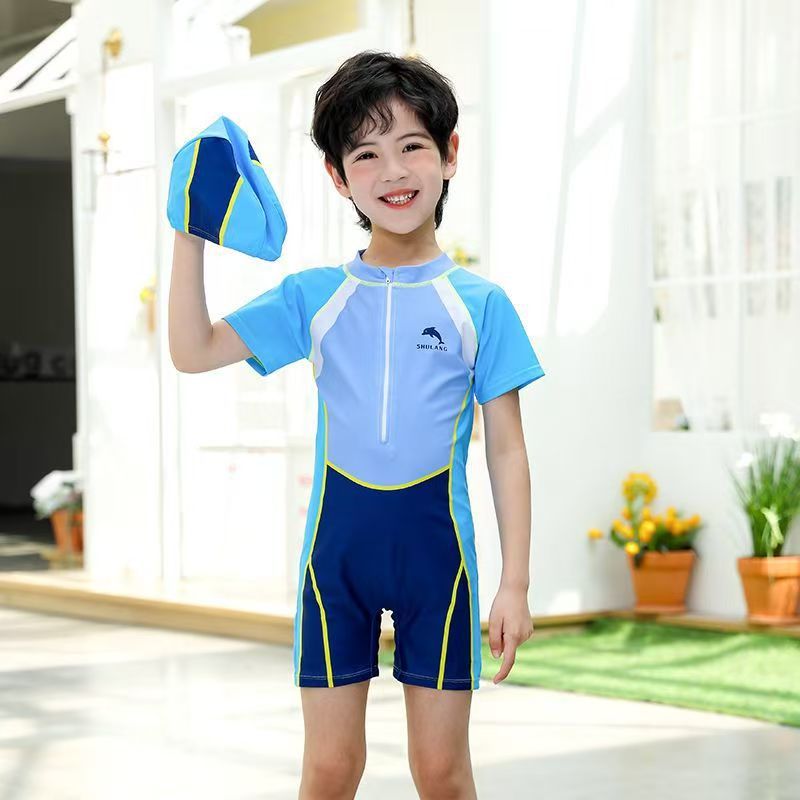 소년 원피스 수영복 2025 새로운 스타일 어린이 반팔 자외선 차단 수영복 어린 소년 수영복 국경 간 맞춤형스토어 가기