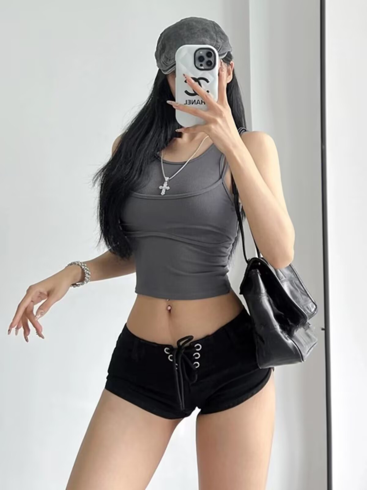 뜨거운 여자 블랙 낮은 허리 나이트 클럽 Y2K 슈퍼 반바지 여자 여름 새로운 순수한 욕망 꽉 끈 데님 핫 바지스토어 가기