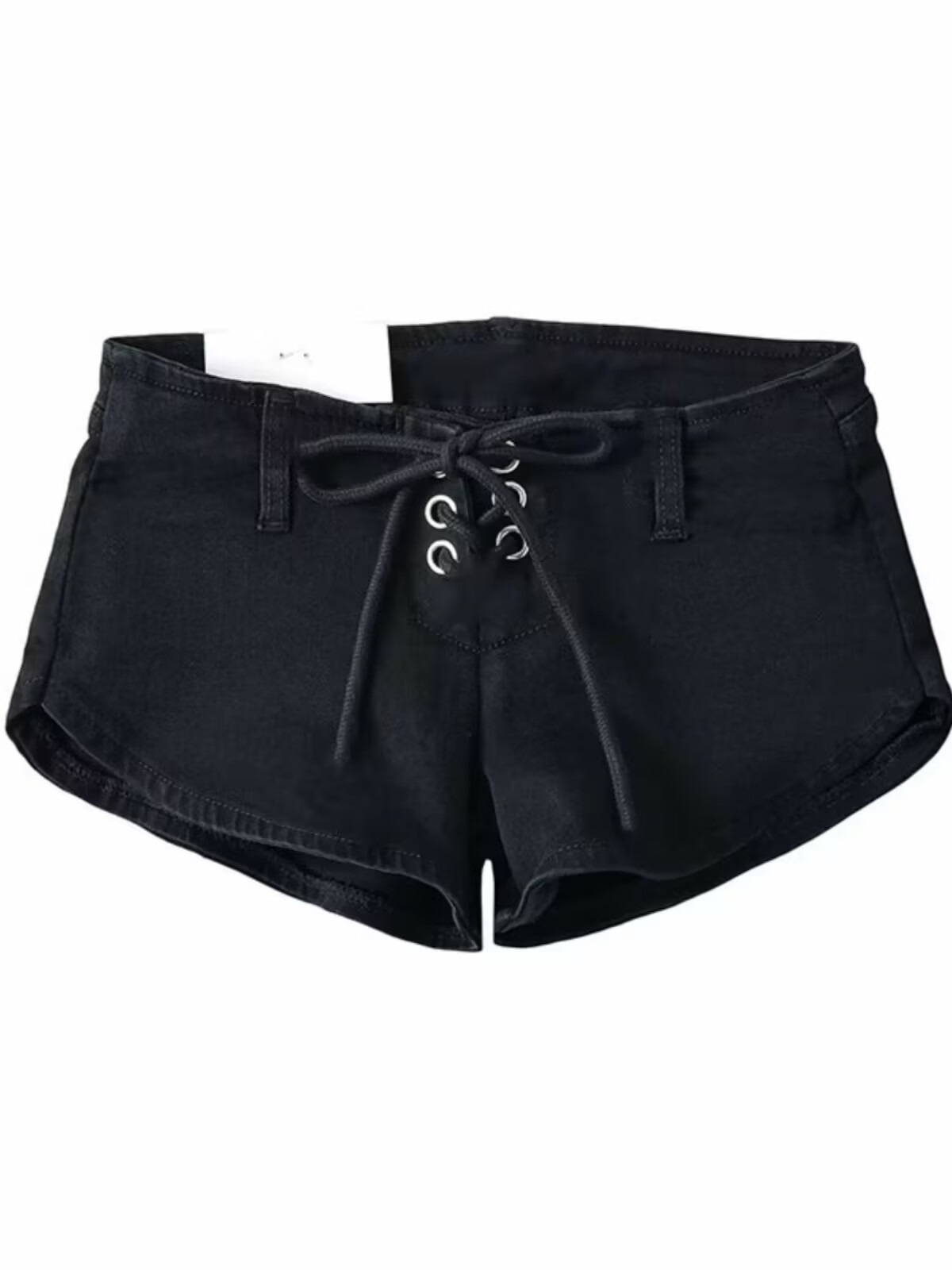 뜨거운 여자 블랙 낮은 허리 나이트 클럽 Y2K 슈퍼 반바지 여자 여름 새로운 순수한 욕망 꽉 끈 데님 핫 바지