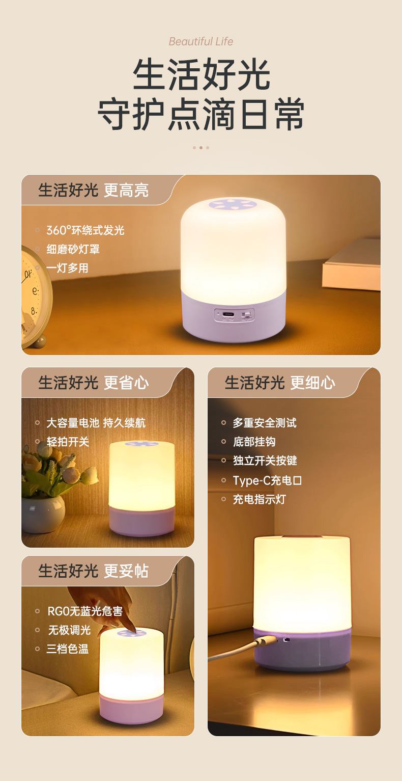 충전 터치 야간 조명 침실 따뜻한 빛 분위기 밝은 밤 수면 눈 보호 부드러운 조명 led 침대 옆 빛 수면 조명