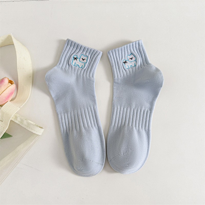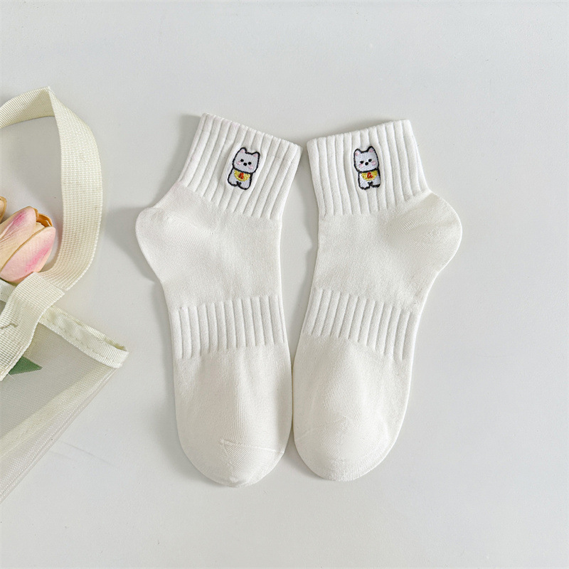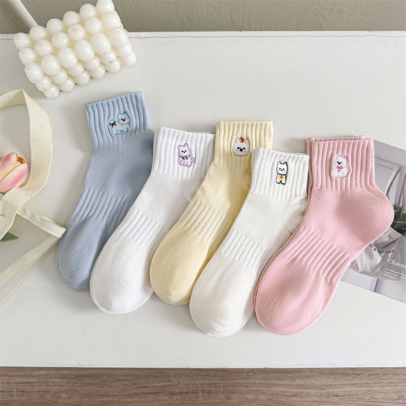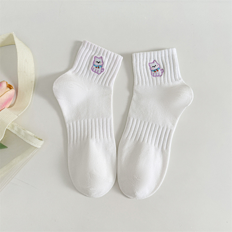 여성용 귀여운 수 놓은 강아지 양말 다채로운 종아리 양말 트렌디 한 여름 얇은 스포츠 일본 만화 양말면스토어 가기