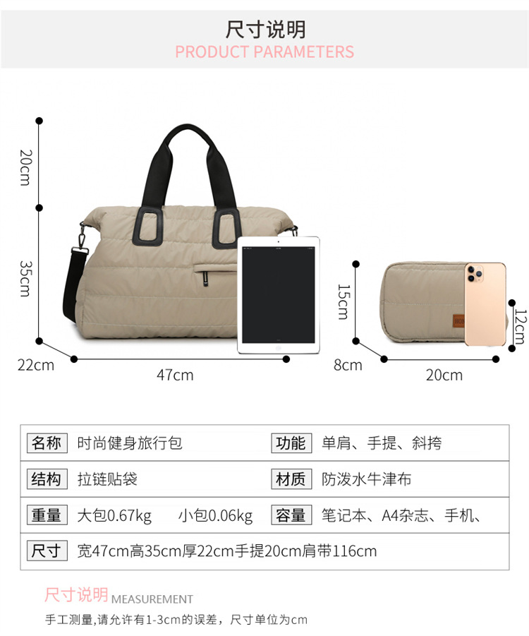 대용량 면 의류 가방, 2피스 습식 및 건식 분리 스포츠 피트니스 가방, 고급 싱글 숄더 휴대용 수하물 가방, 크로스보더스토어 가기