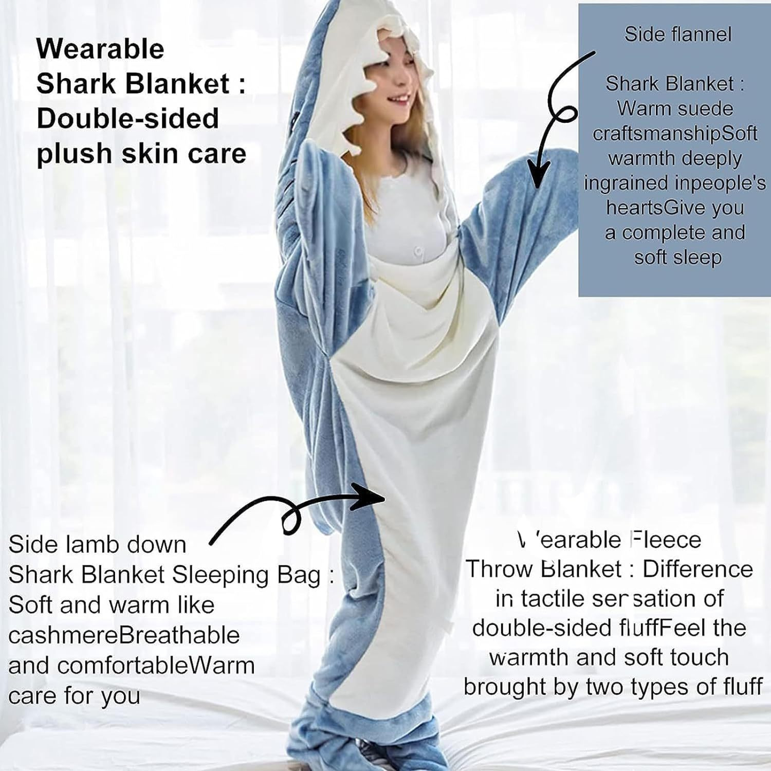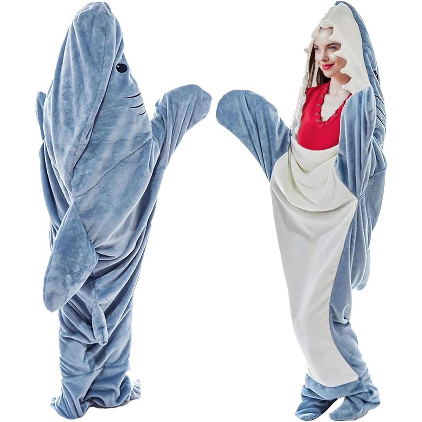 상어 담요 상어 잠옷 에어컨 담요 슈퍼 소프트 플란넬 후드 침낭 루즈한 바디 슈트 성인스토어 가기