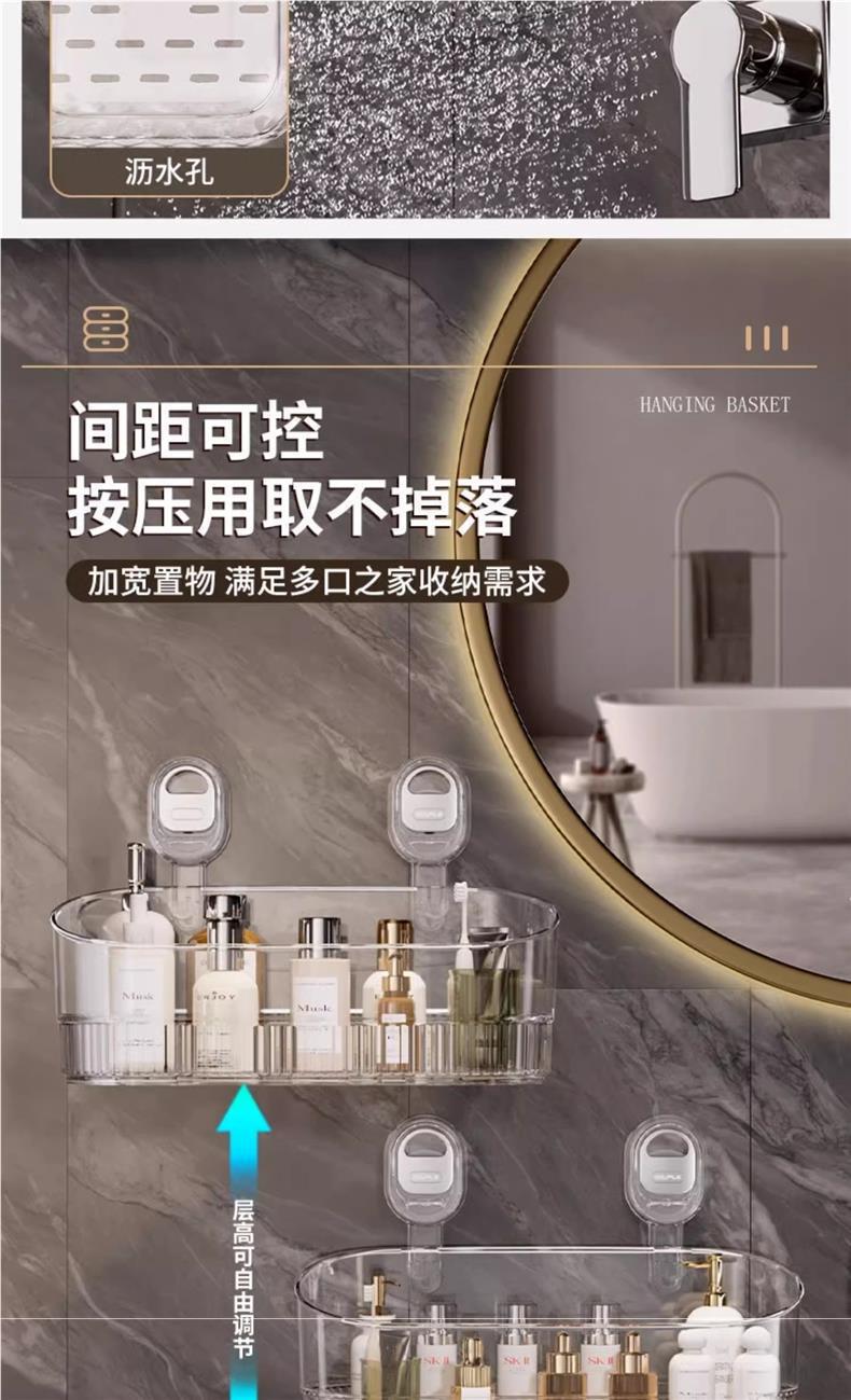 대형 흡입 컵 보관 랙 욕실 샤워 젤 교수형 바구니 욕실 화장품 보관 상자 벽 교수형 저장 랙
